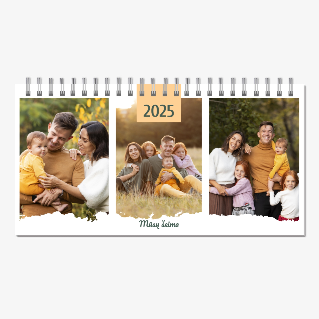 Kalendoriaus šablonas su šeimos nuotraukomis
