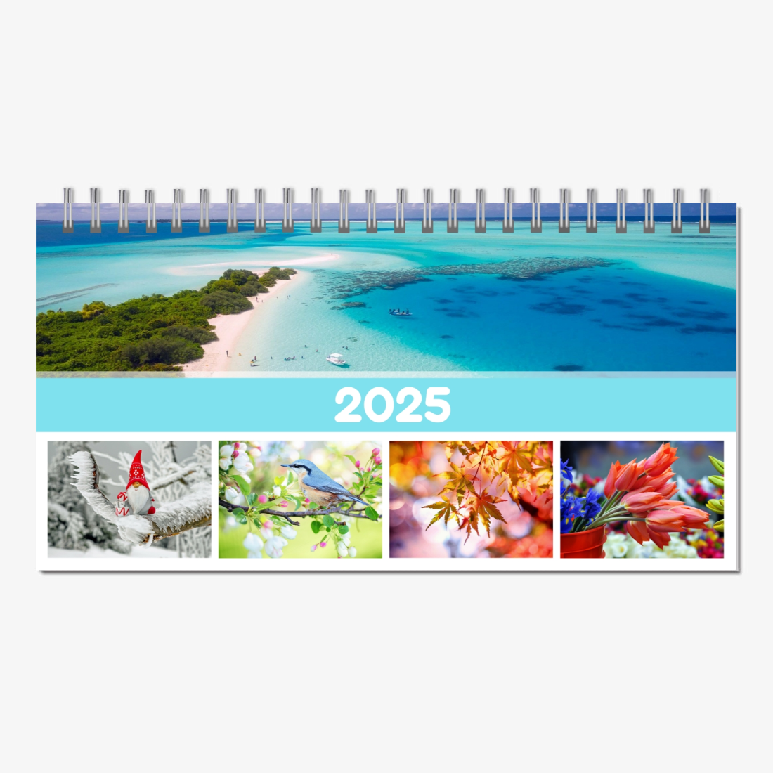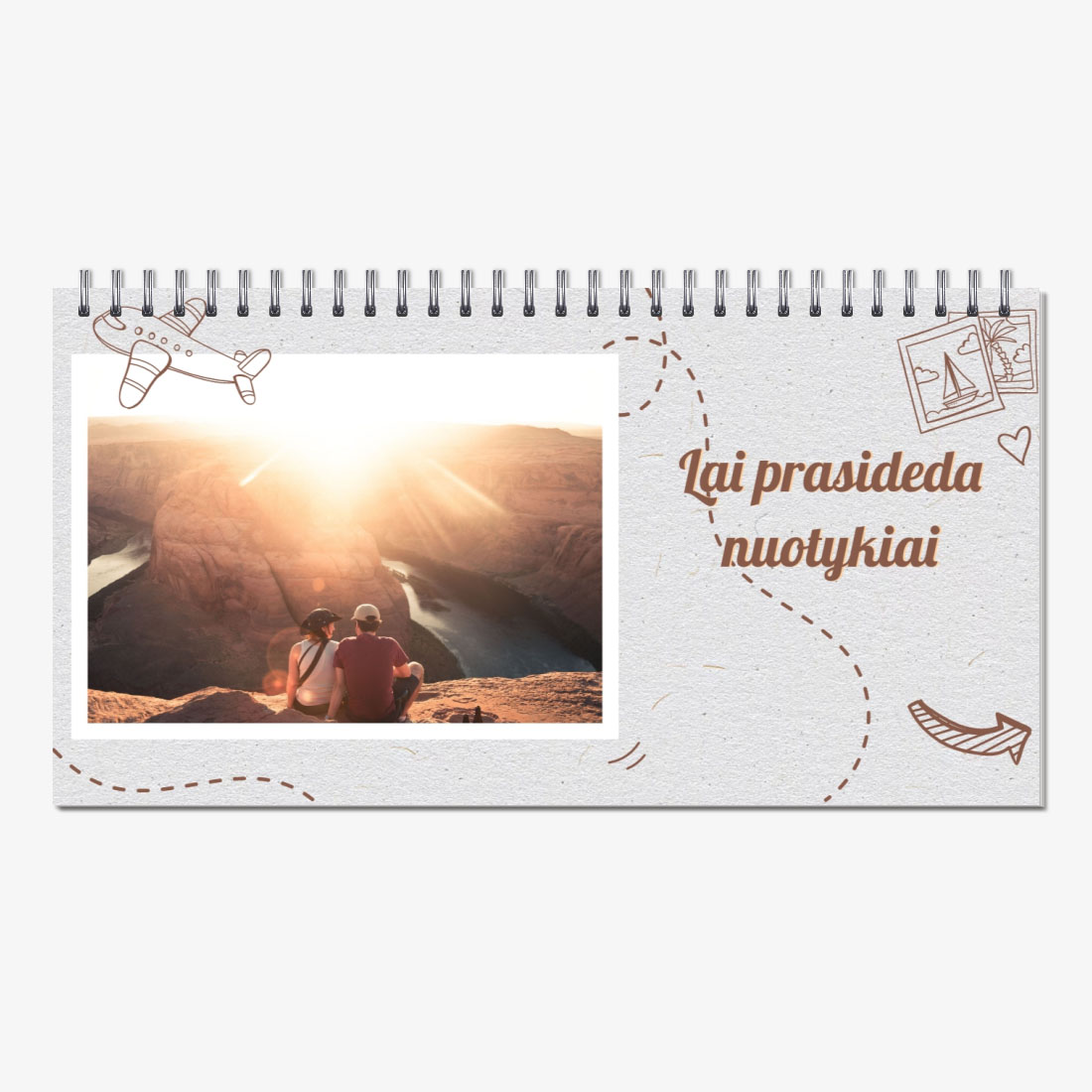 Kalendoriaus šablonas su kelionių nuotraukomis
