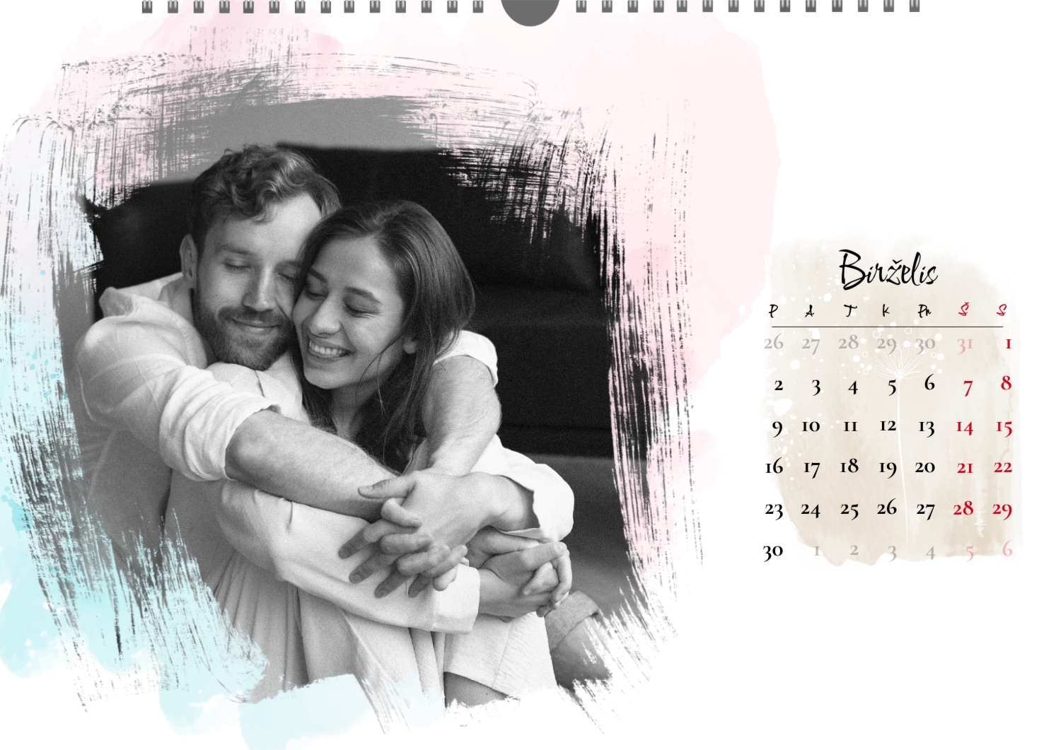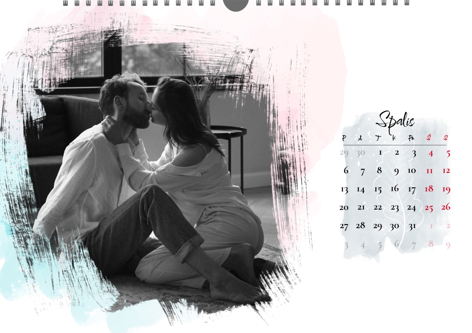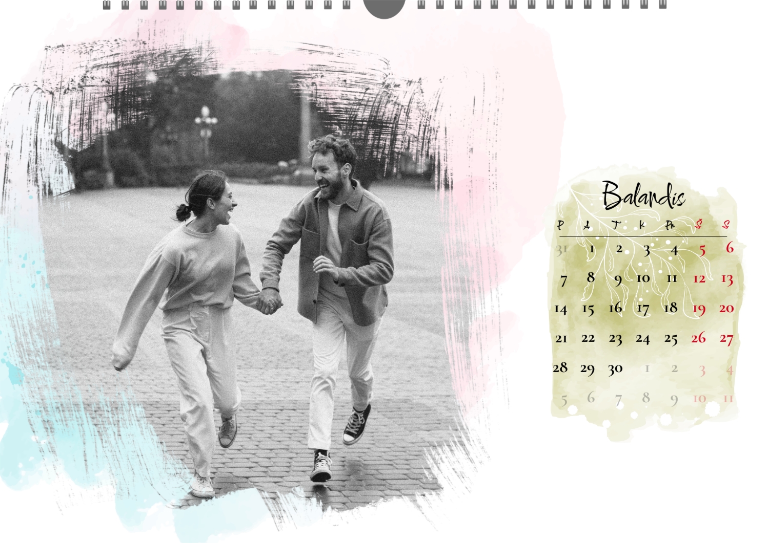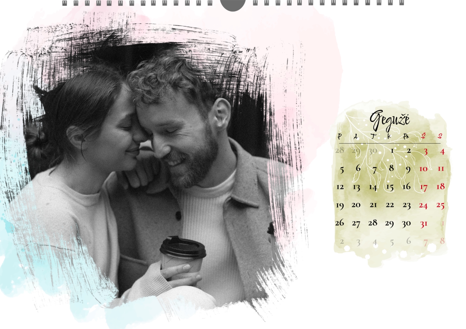 Pasirinkite metalinės spiralės, kuria susegami kalendoriaus lapai, spalvą, geriausiai tinkančią jūsų siužetui.