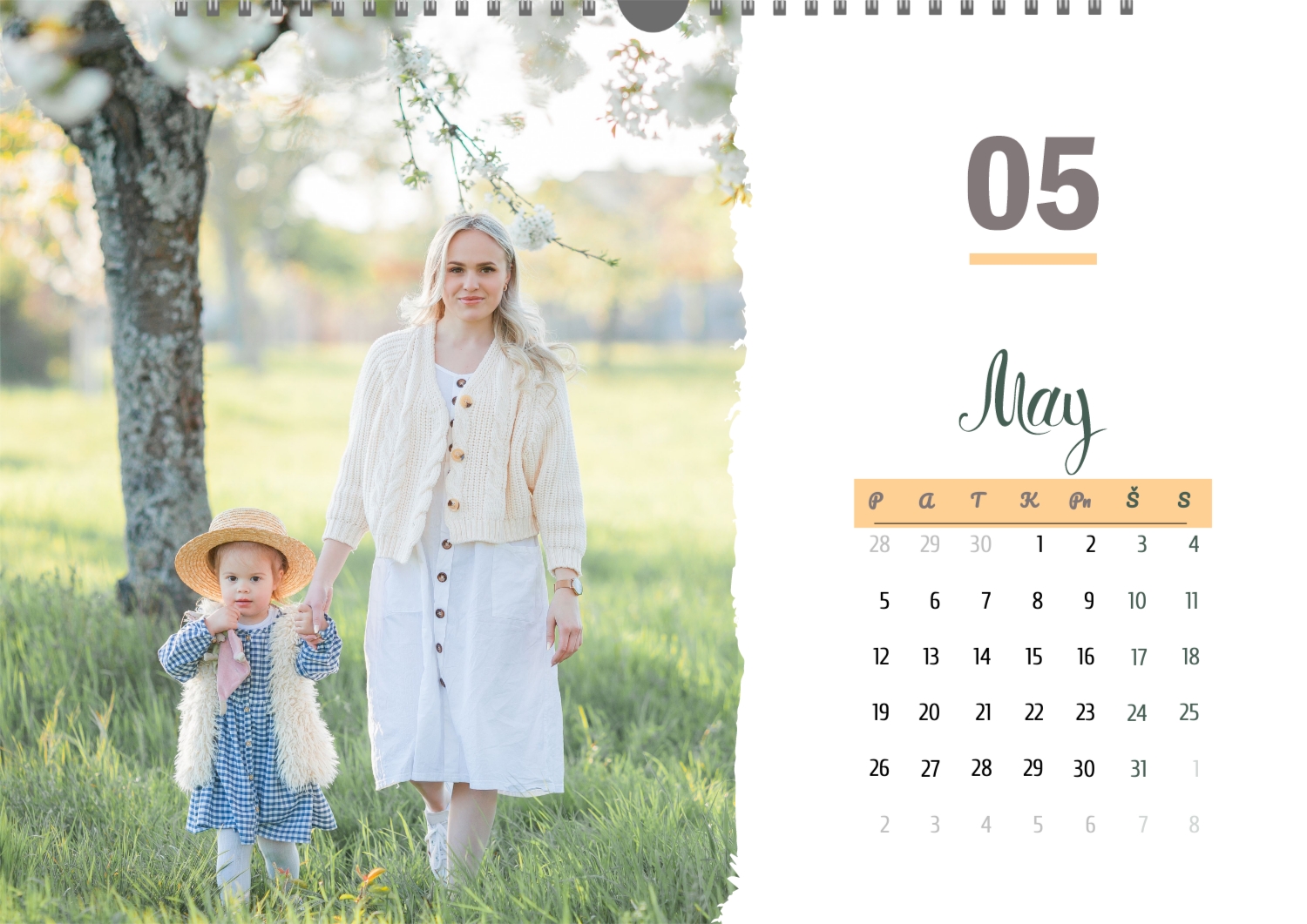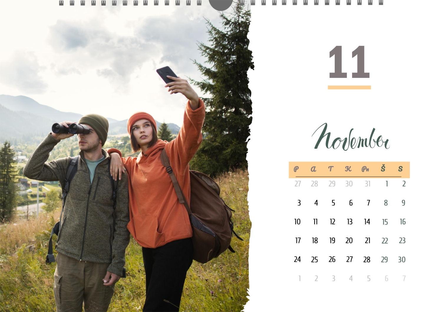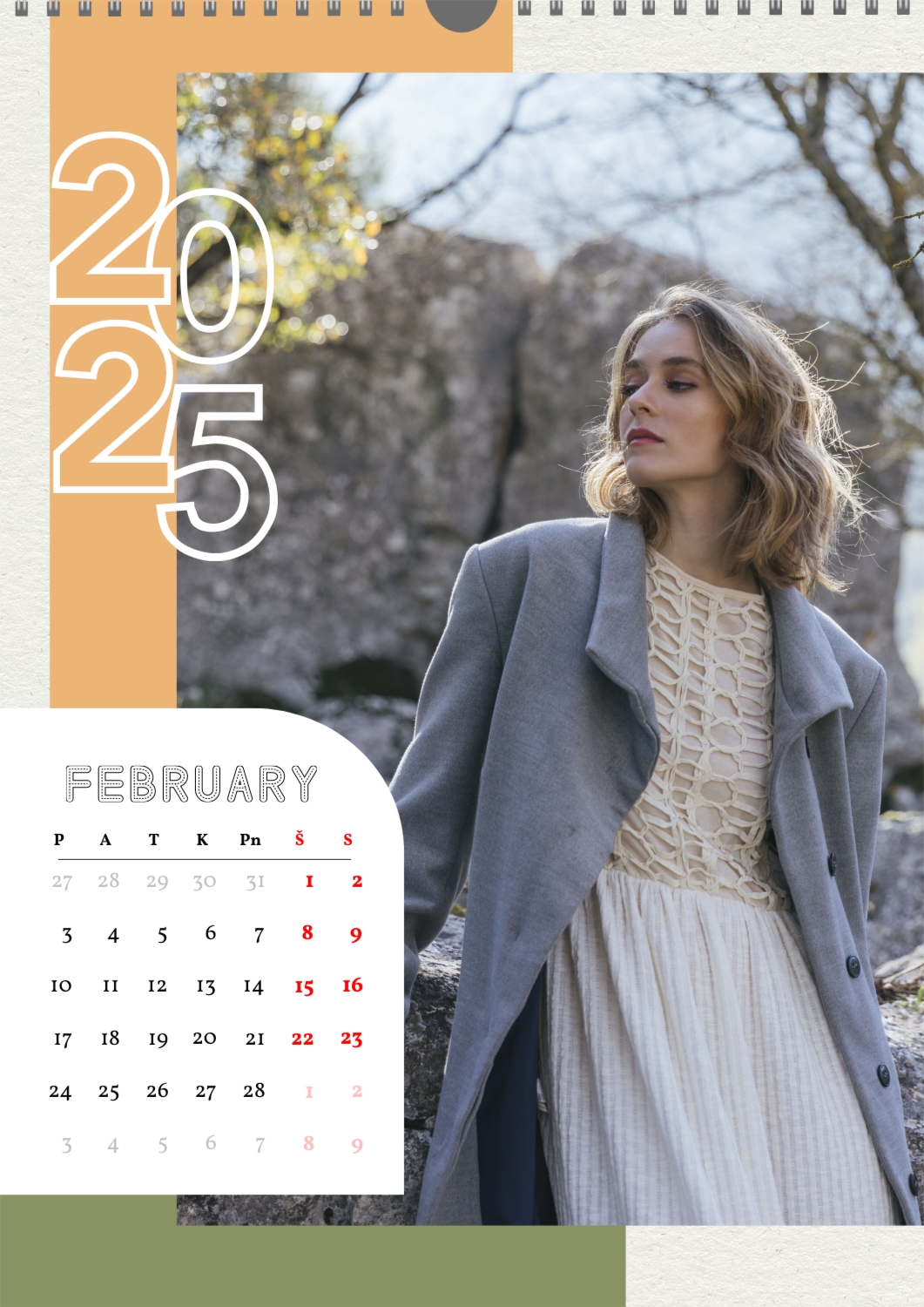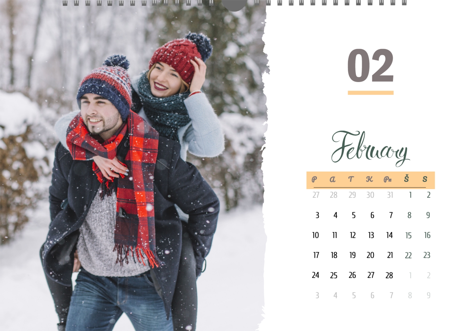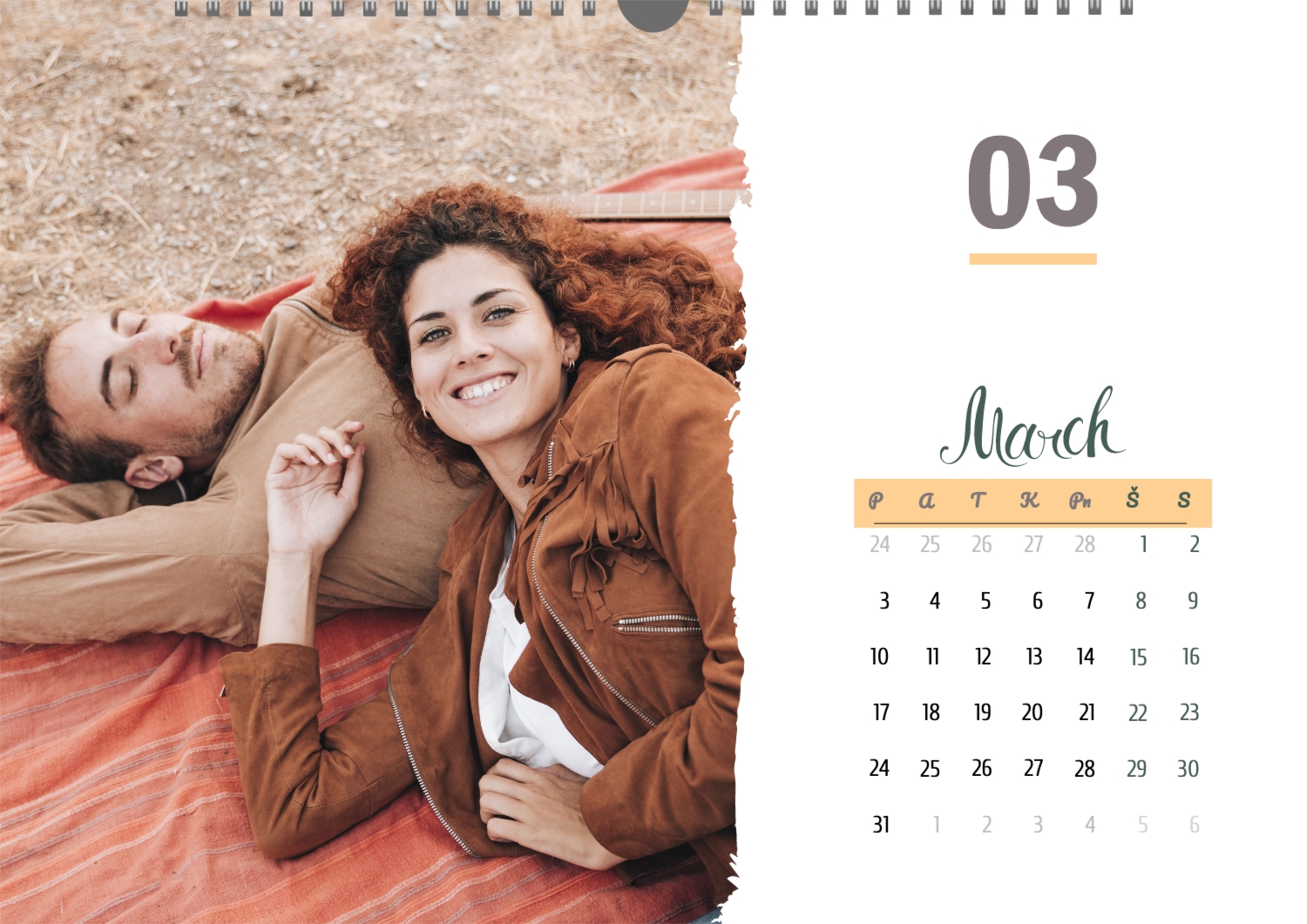 Pasirinkite metalinės spiralės, kuria susegami kalendoriaus lapai, spalvą, geriausiai tinkančią jūsų siužetui.