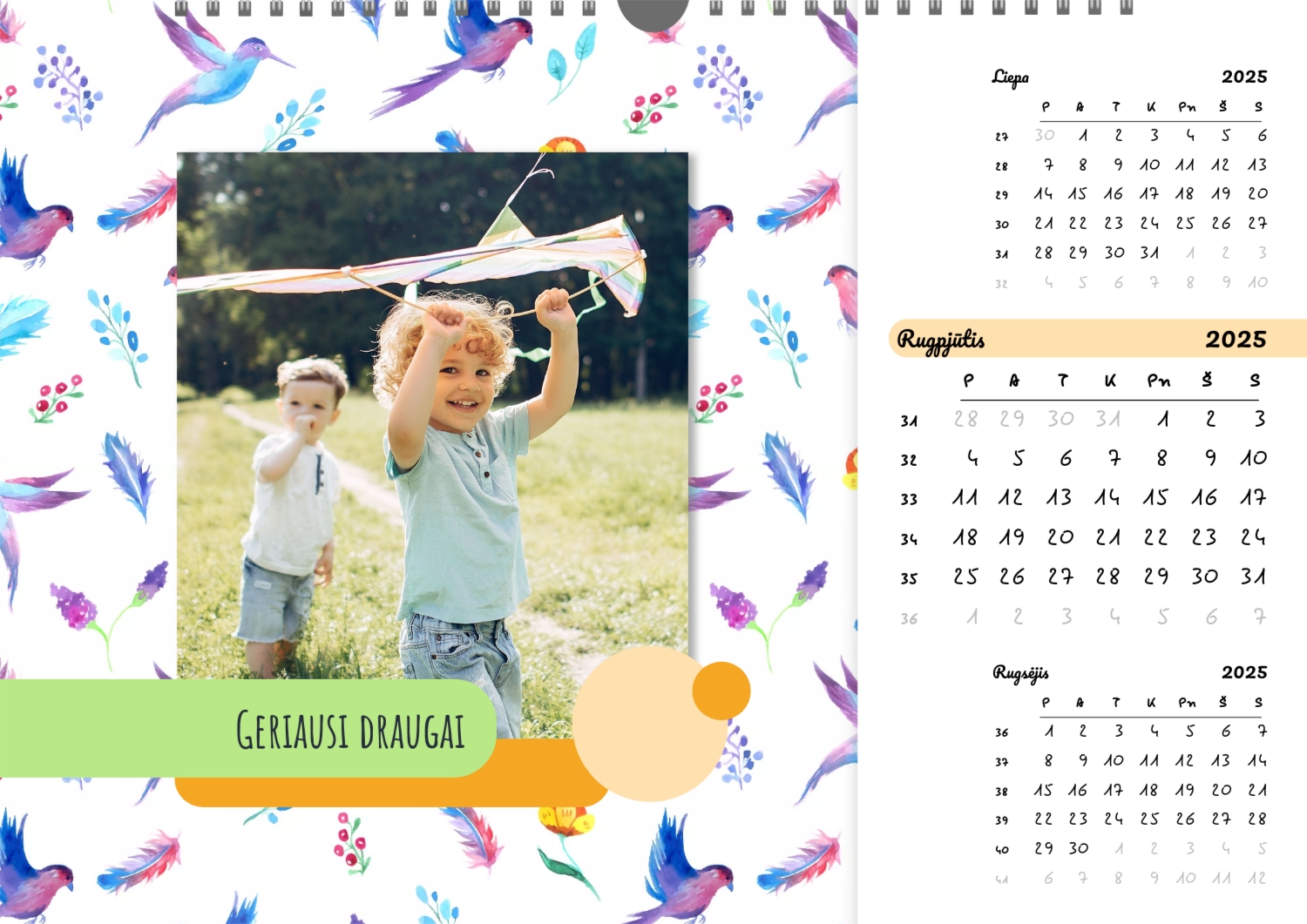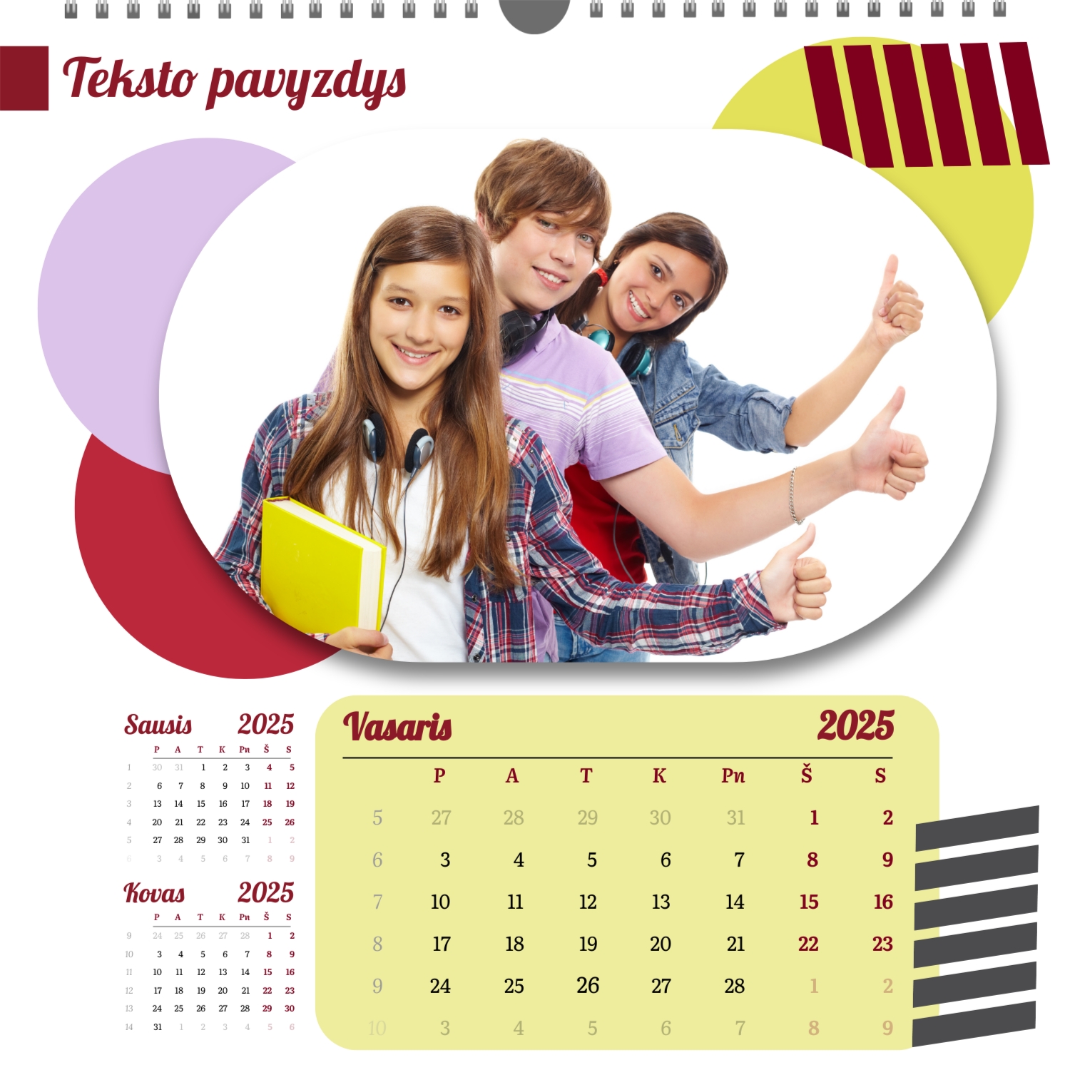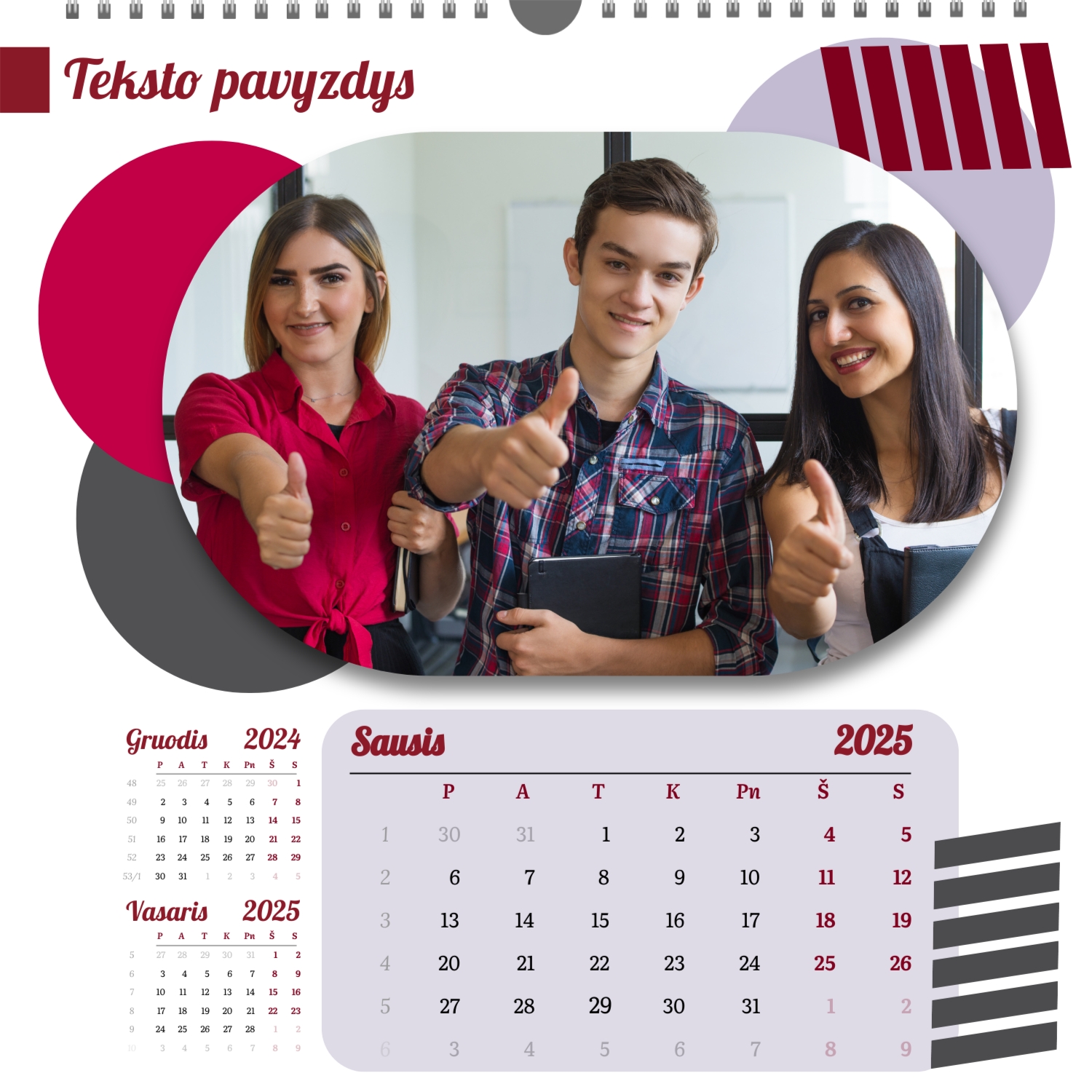 | Kalendorių formatai: | А3 (297х420) А4 (210х297) 300х300 210х210 |