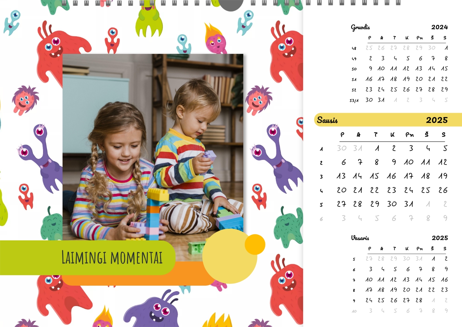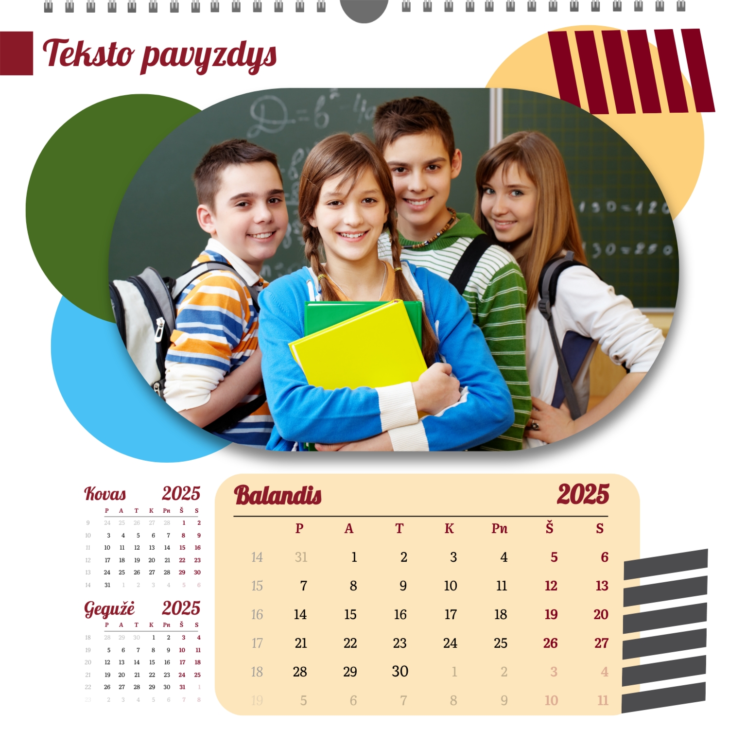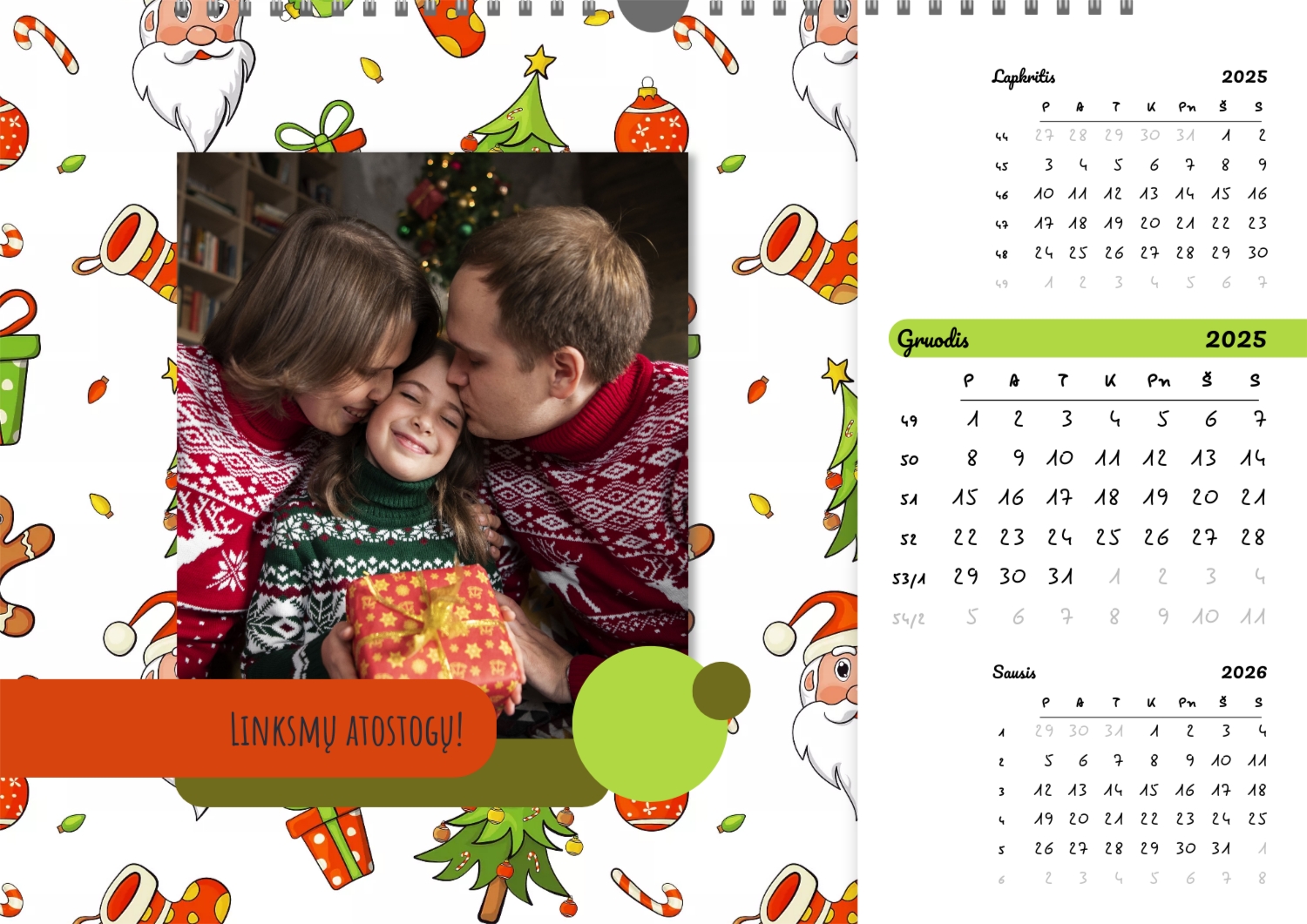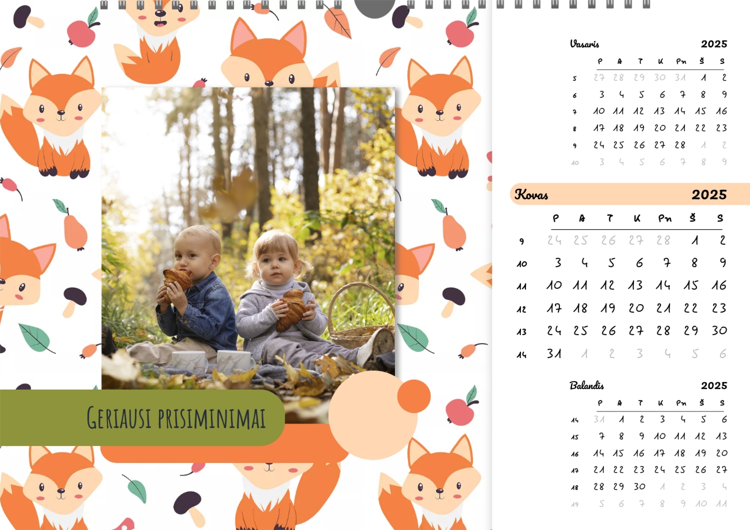 | Kalendorių formatai: | А3 (297х420) А4 (210х297) 300х300 210х210 |