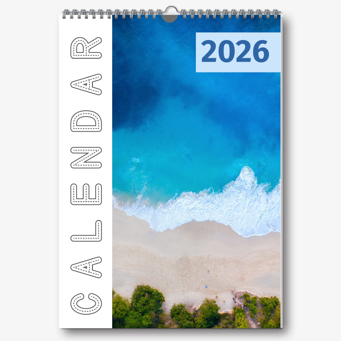 Kalendoriaus šablonas su kelionių nuotraukomis