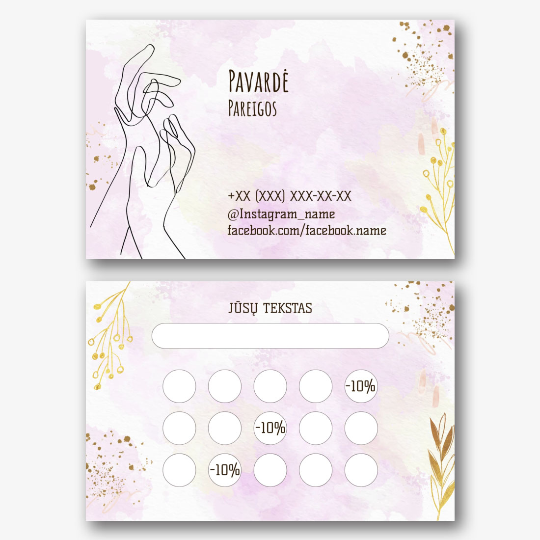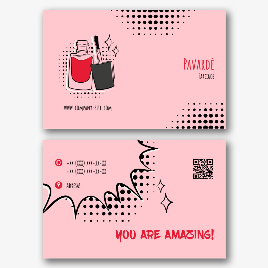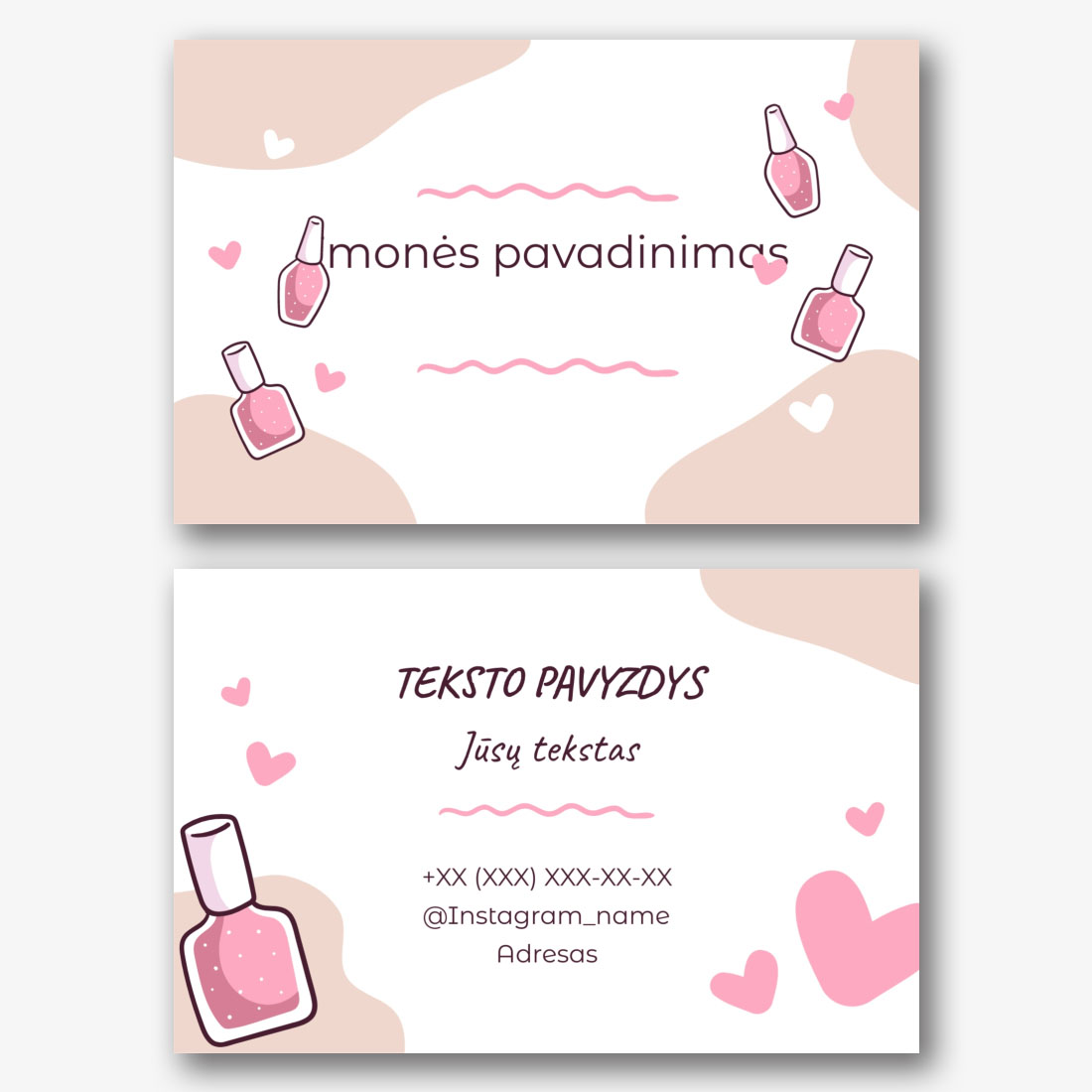 Nemokamas vizitinių kortelių šablonas grožio salonui, manikiūro meistrui. Sukurkite vizitinės kortelės išdėstymą su savo rankomis vizitinės kortelės dizaineriu.