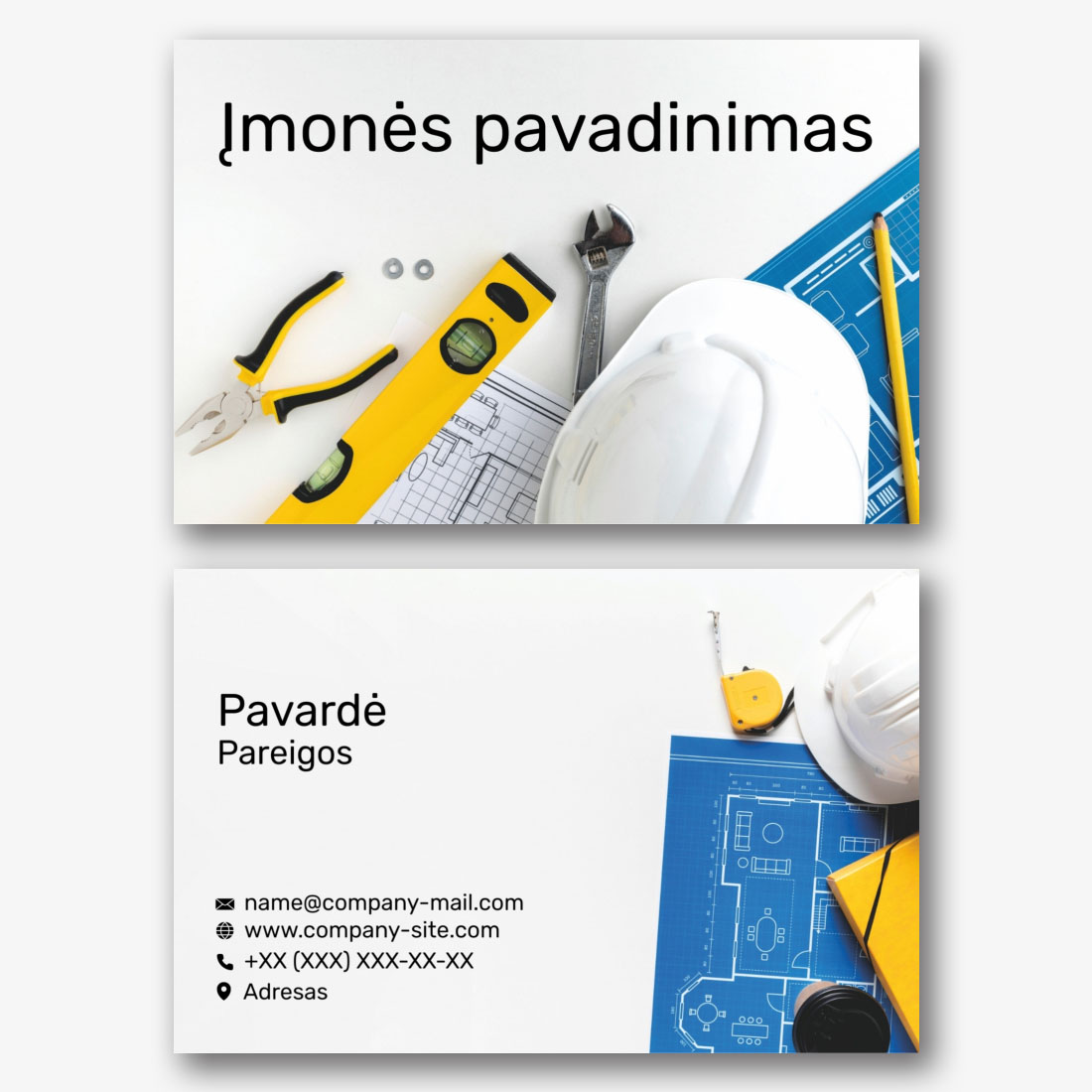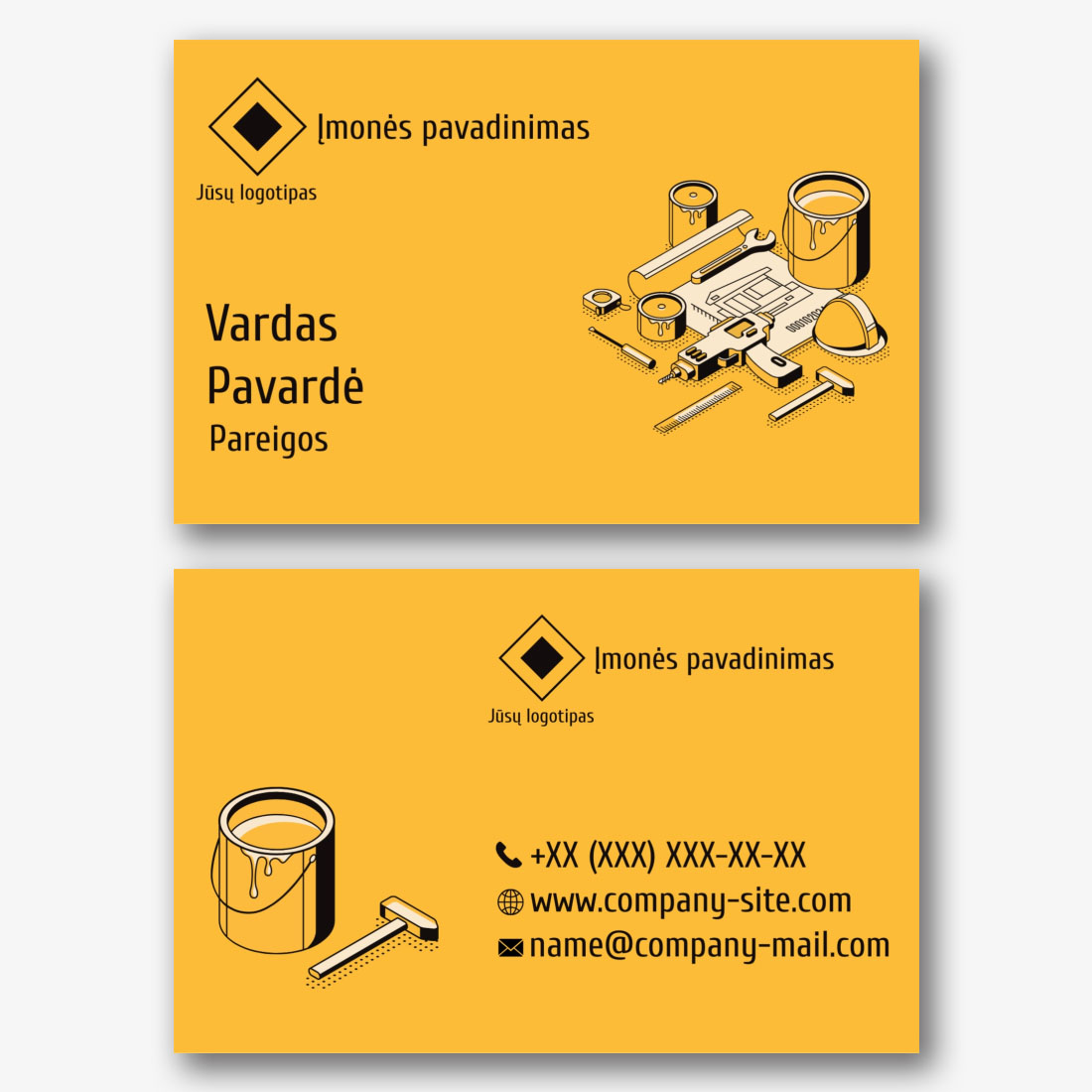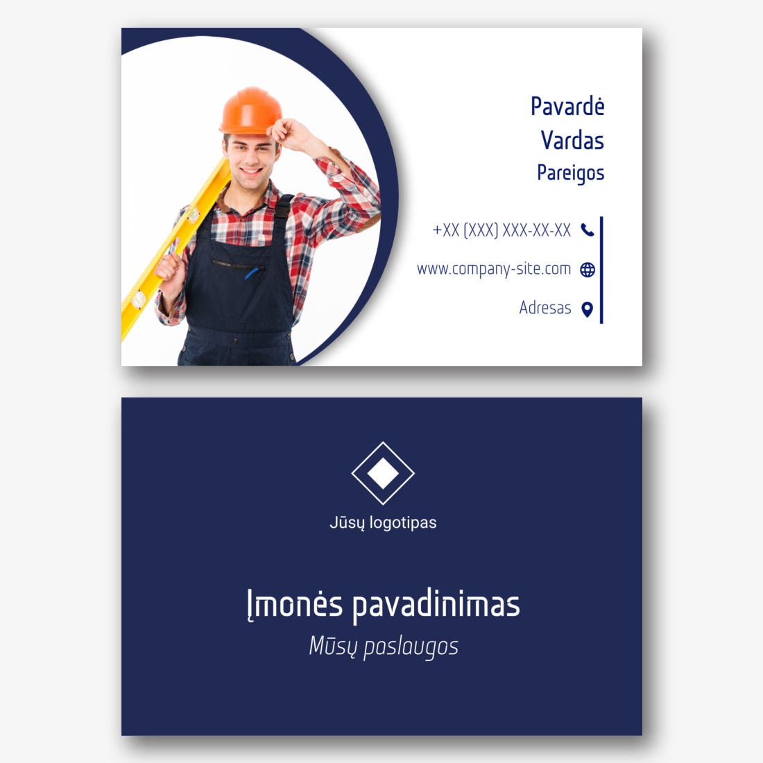 Nemokamas vizitinės kortelės Šablonas stogdengiui, statybininkui ar statybų įmonei. Sukurkite išdėstymą su savo rankomis vizitinės kortelės dizaineriu.