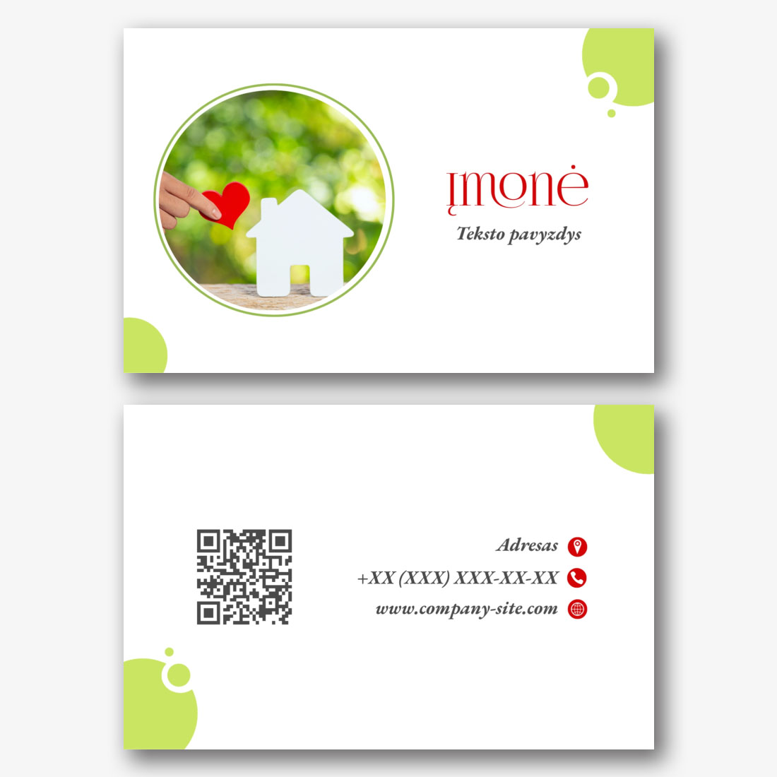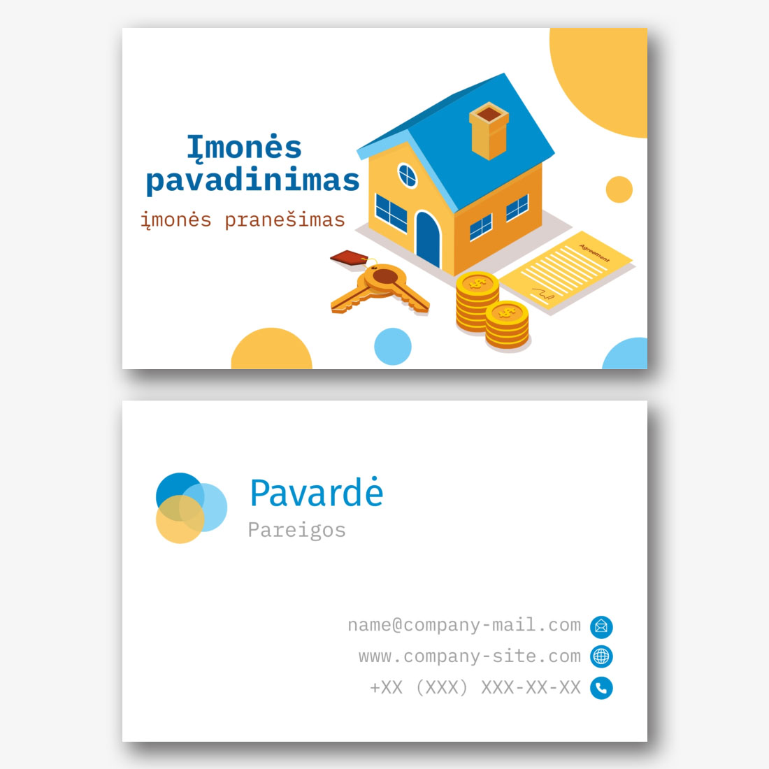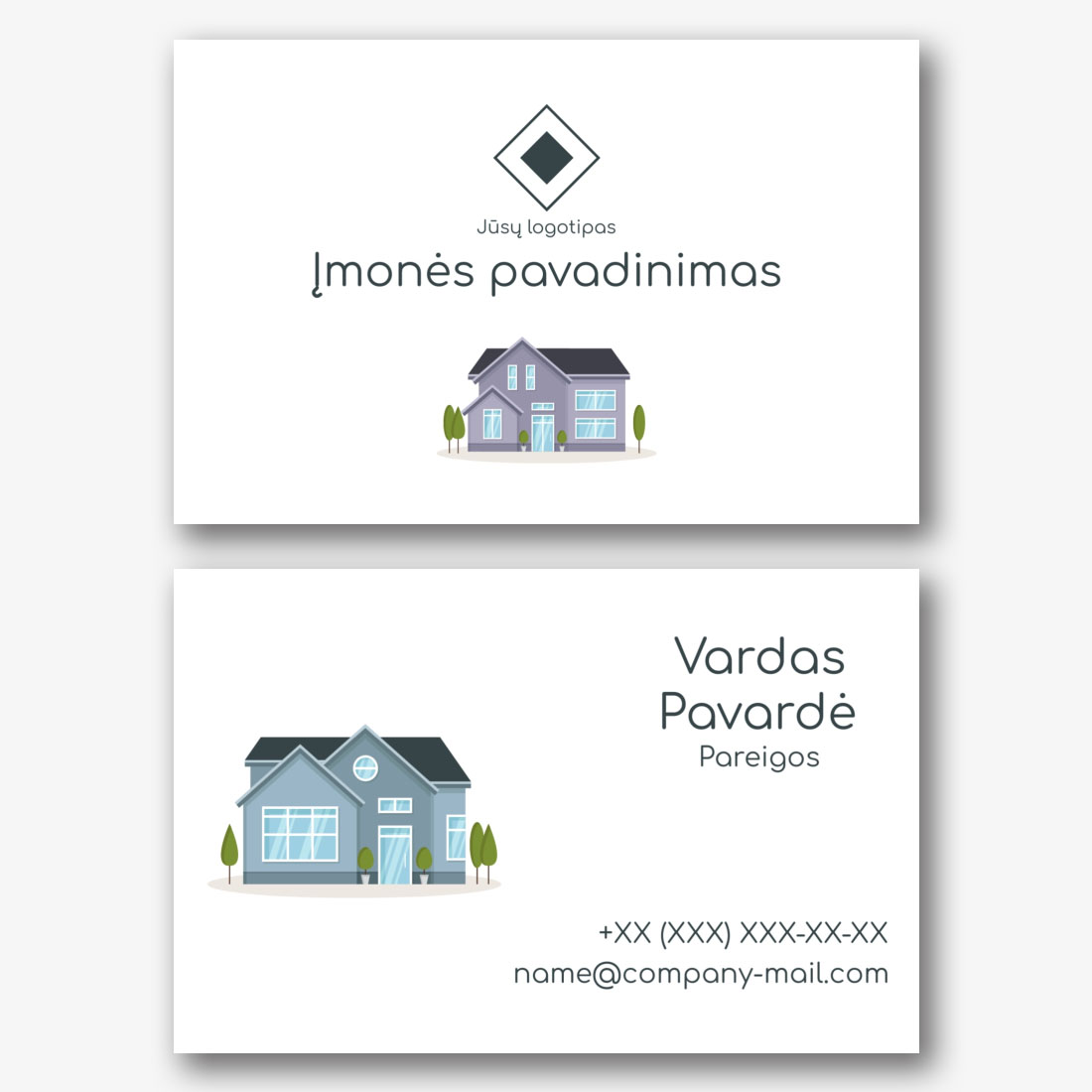 Nemokamas vizitinės kortelės Šablonas kūrėjui, statybų įmonei, architektui, nekilnojamojo turto agentui. Sukurkite išdėstymą su savo rankomis vizitinės kortelės dizaineriu.