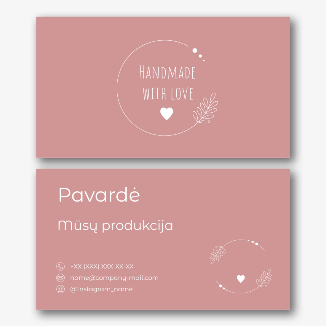 Nemokamas vizitinių kortelių šablonas rankdarbių parduotuvei, amatininkui,rankdarbiams, rankdarbiams. Sukurkite išdėstymą su savo rankomis vizitinės kortelės dizaineriu.