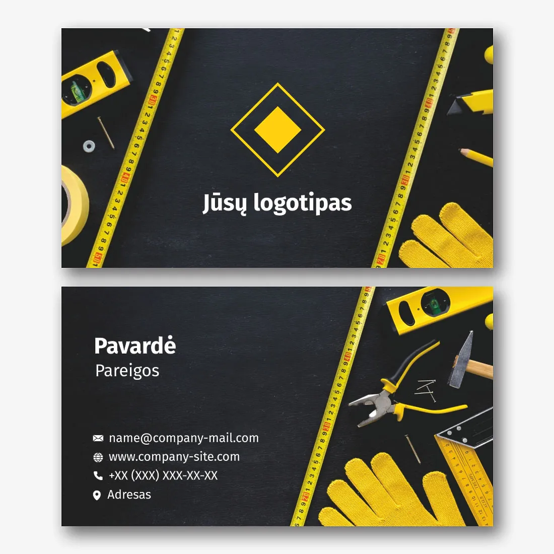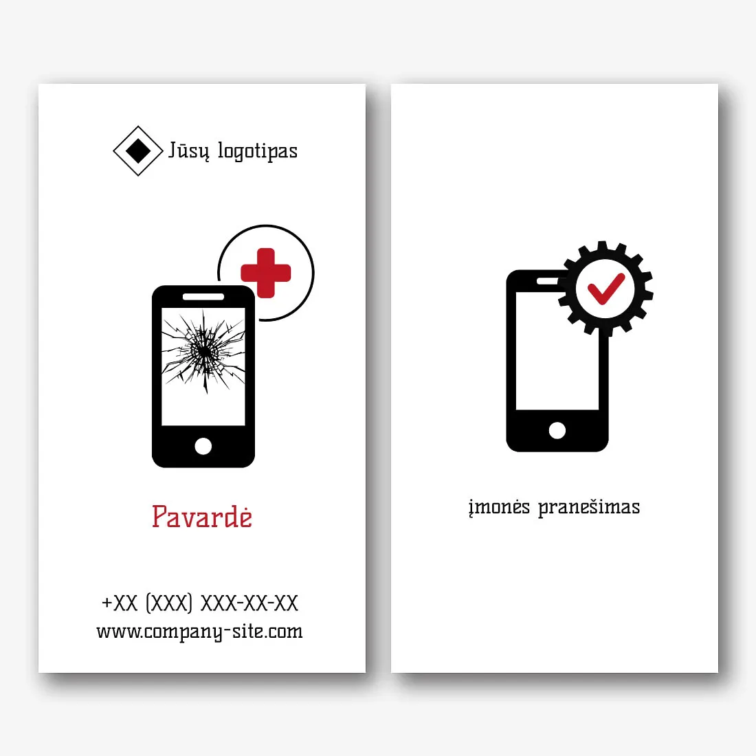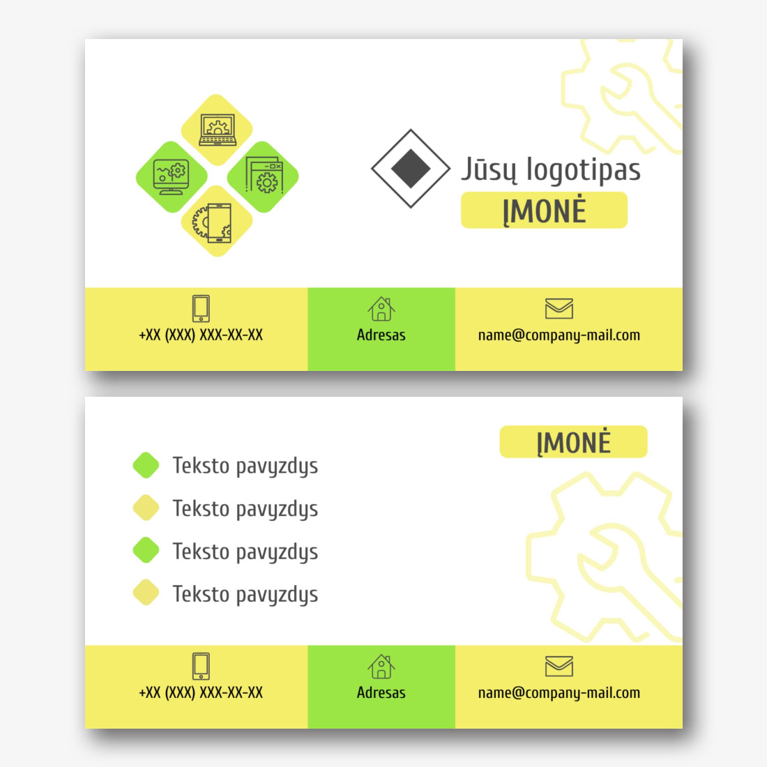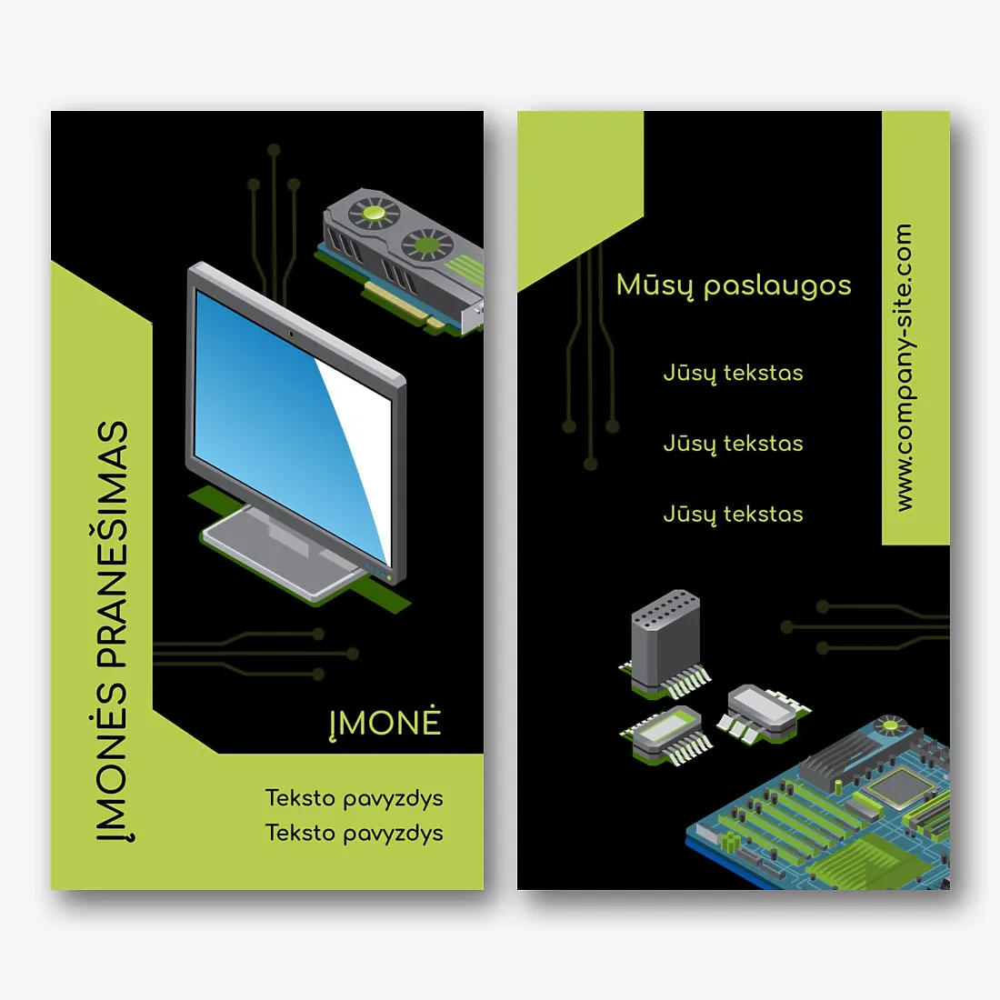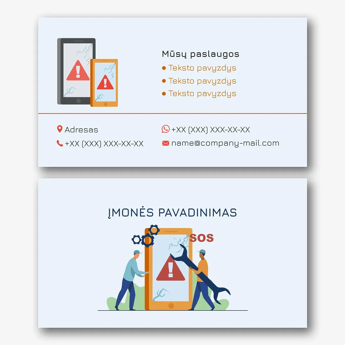 Nemokamas vizitinės kortelės Šablonas aptarnavimo centrui, kompiuterių vedliui, elektronikos remontininkui. Sukurkite išdėstymą su savo rankomis vizitinės kortelės dizaineriu.