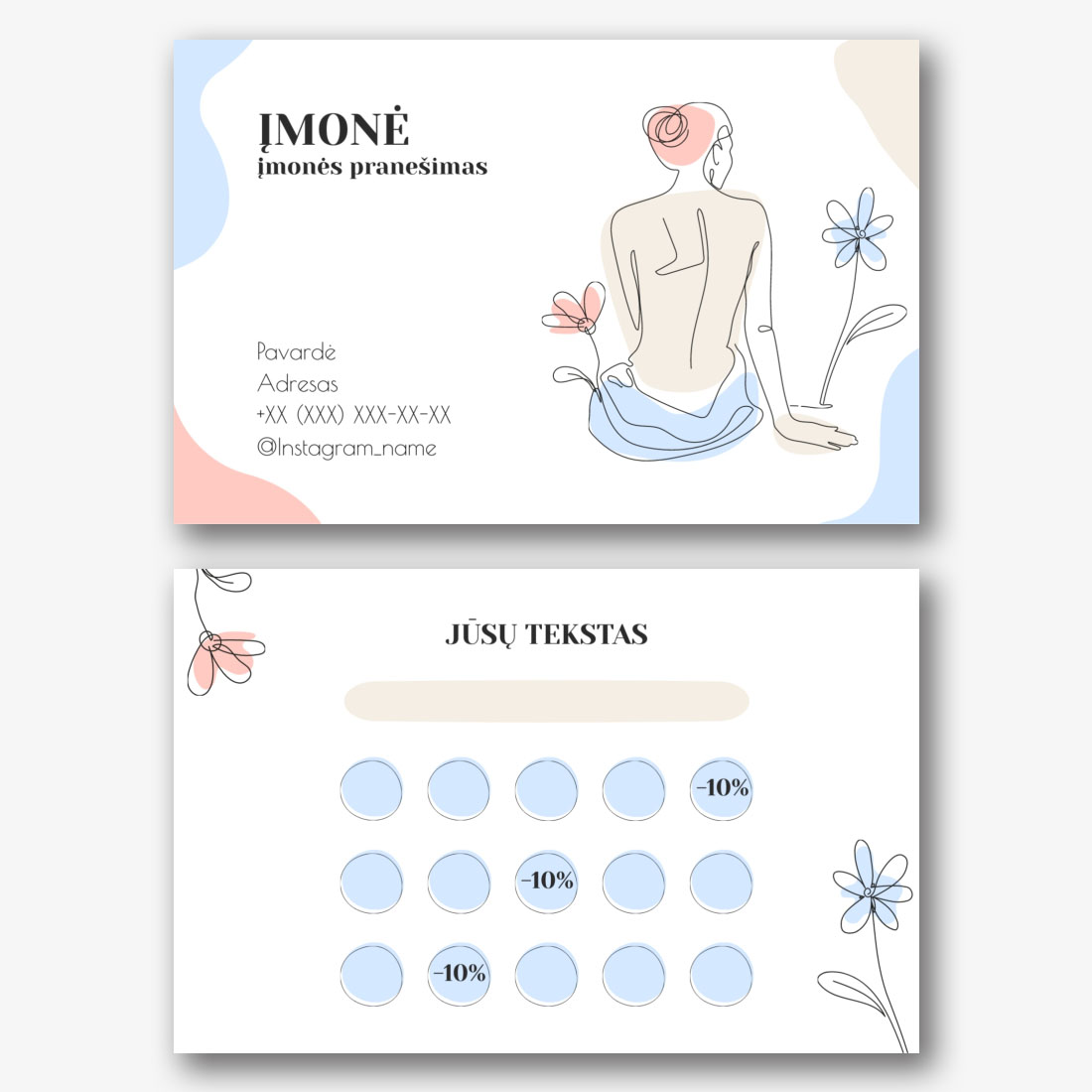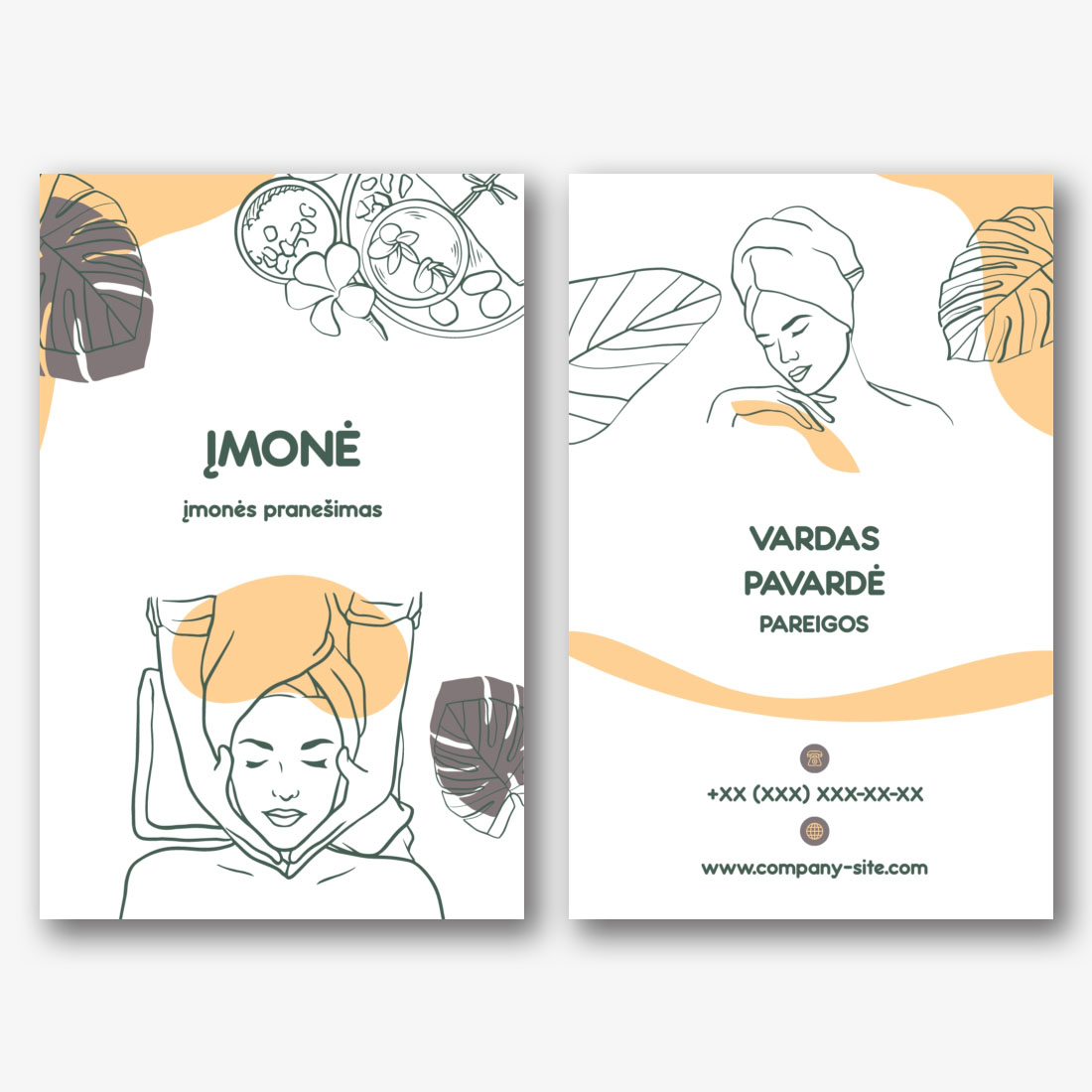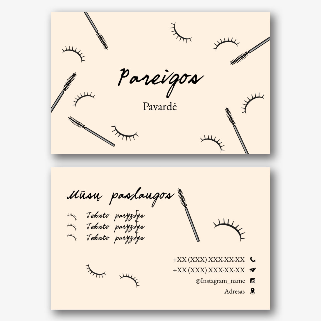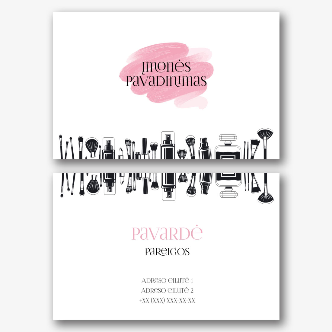 Nemokamas vizitinių kortelių šablonas vizažistei, kosmetologei, grožio salonui. Sukurkite išdėstymą su savo rankomis vizitinės kortelės dizaineriu.
