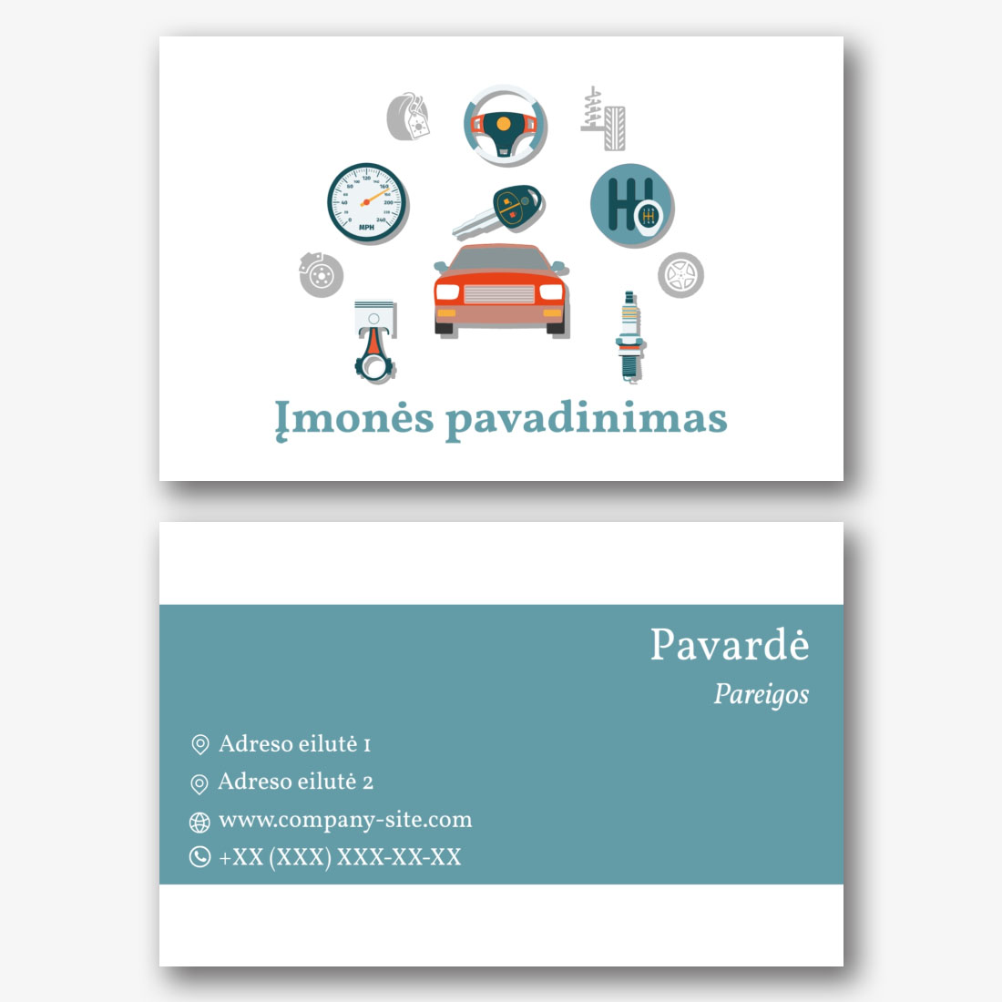 Nemokamas vizitinės kortelės Šablonas autoservisui, automobilių mechanikui, degalinei. Sukurkite išdėstymą su savo rankomis vizitinės kortelės dizaineriu.