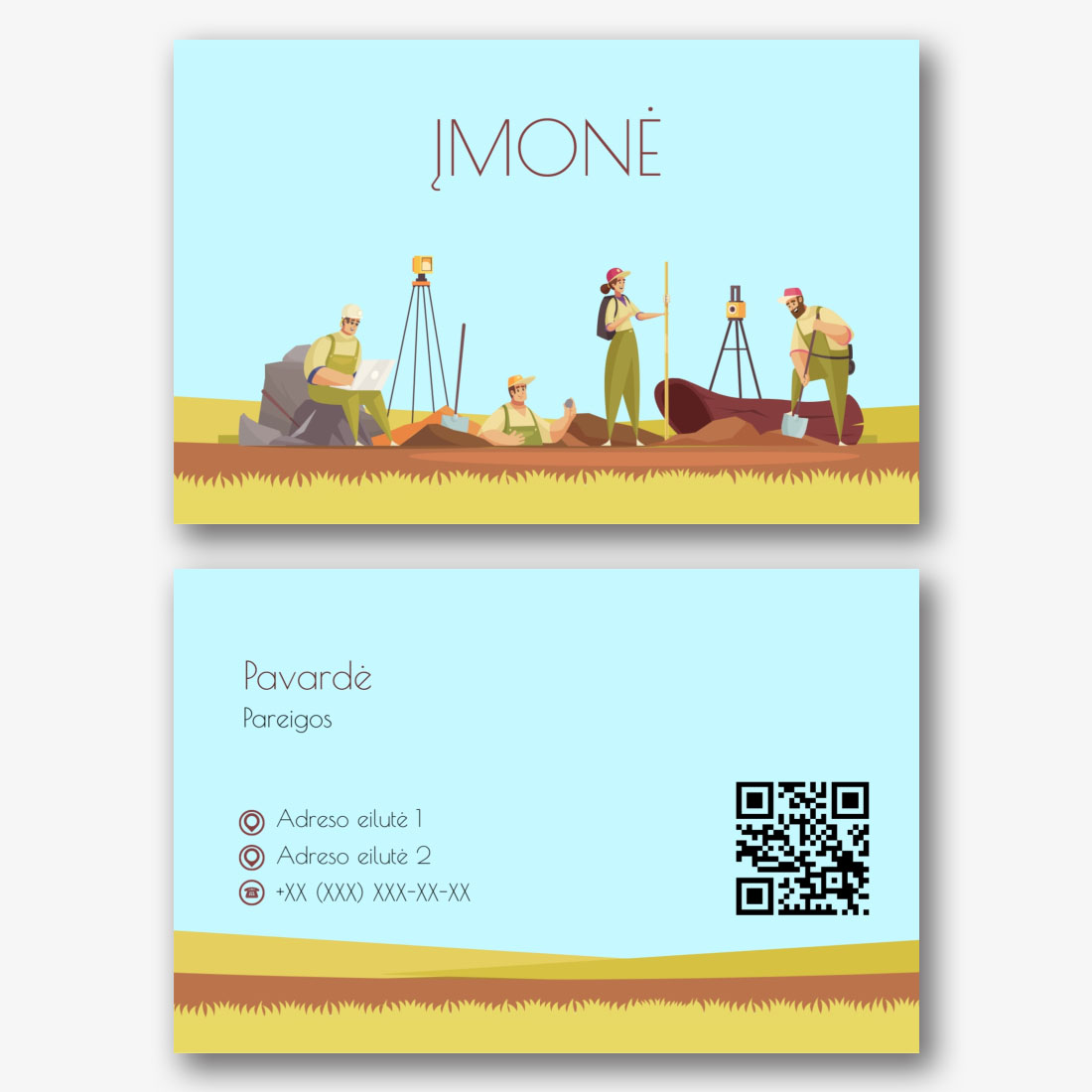 Nemokamas vizitinės kortelės Šablonas statybų įmonei, dizaineriui, statybininkui. Sukurkite išdėstymą su savo rankomis vizitinės kortelės dizaineriu.