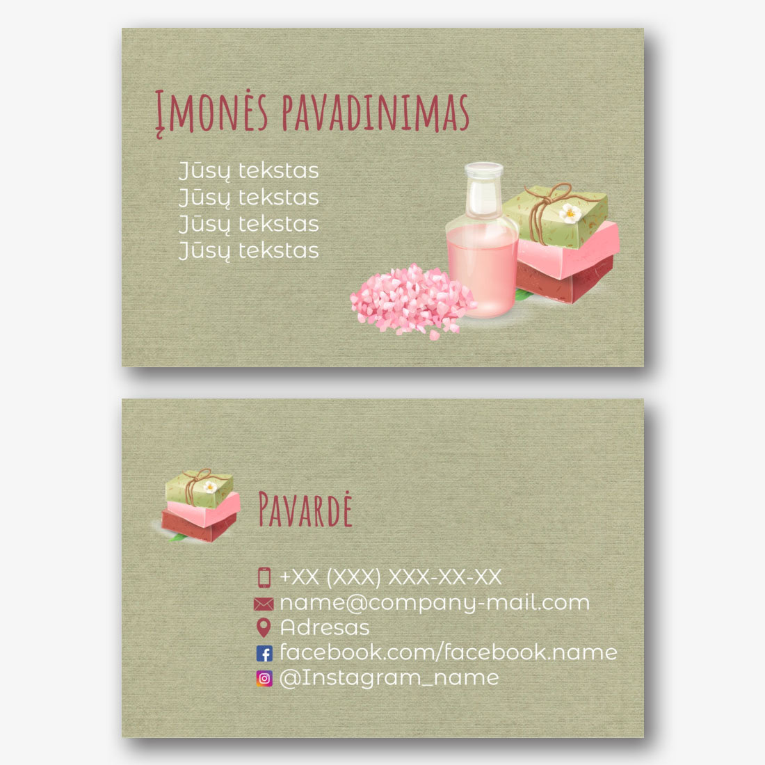 Nemokamas vizitinės kortelės Šablonas spa salonui, spa centrui, kineziterapeutui ir aromaterapeutui. Sukurkite vizitinės kortelės išdėstymą su savo rankomis vizitinės kortelės dizaineriu.
