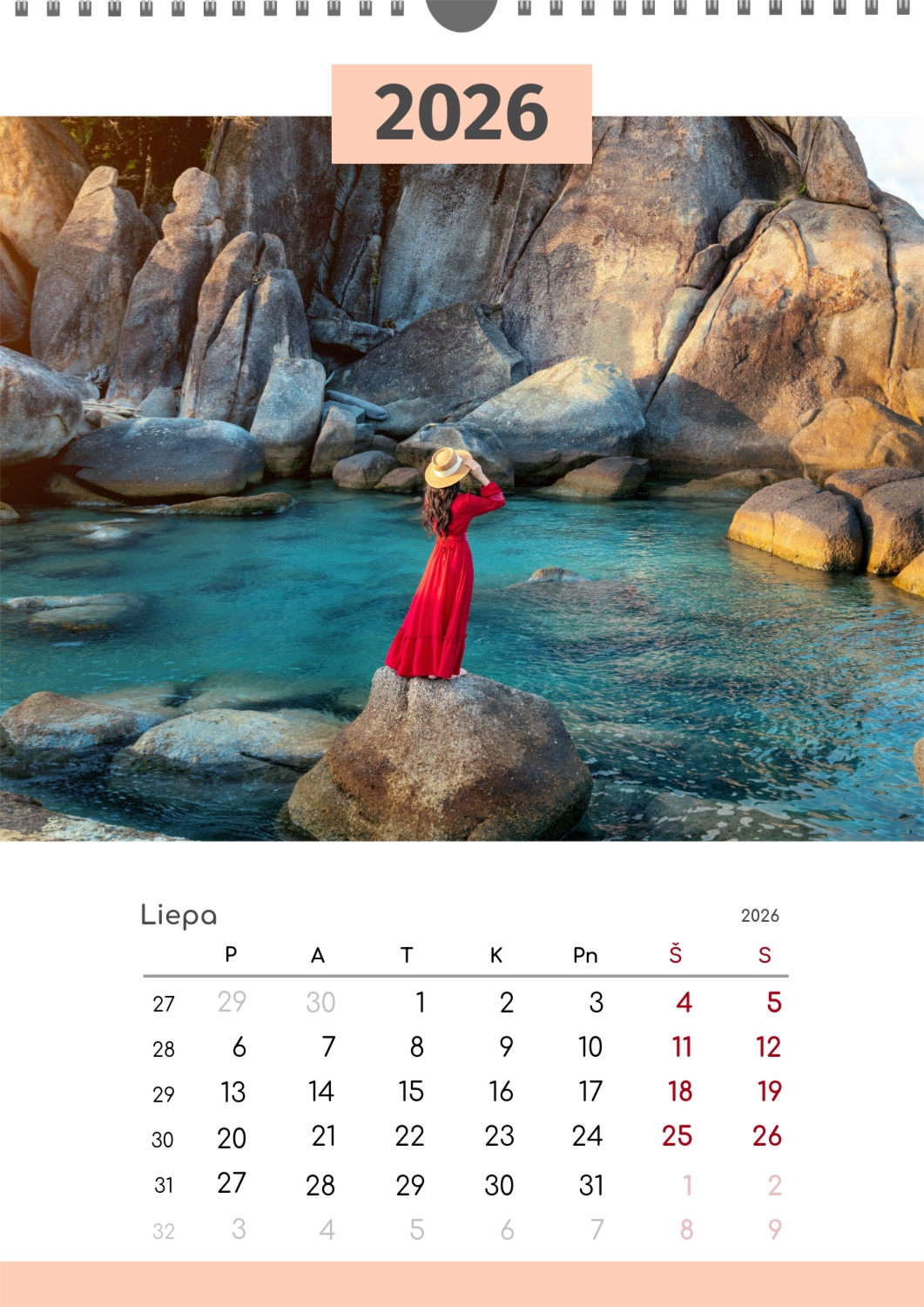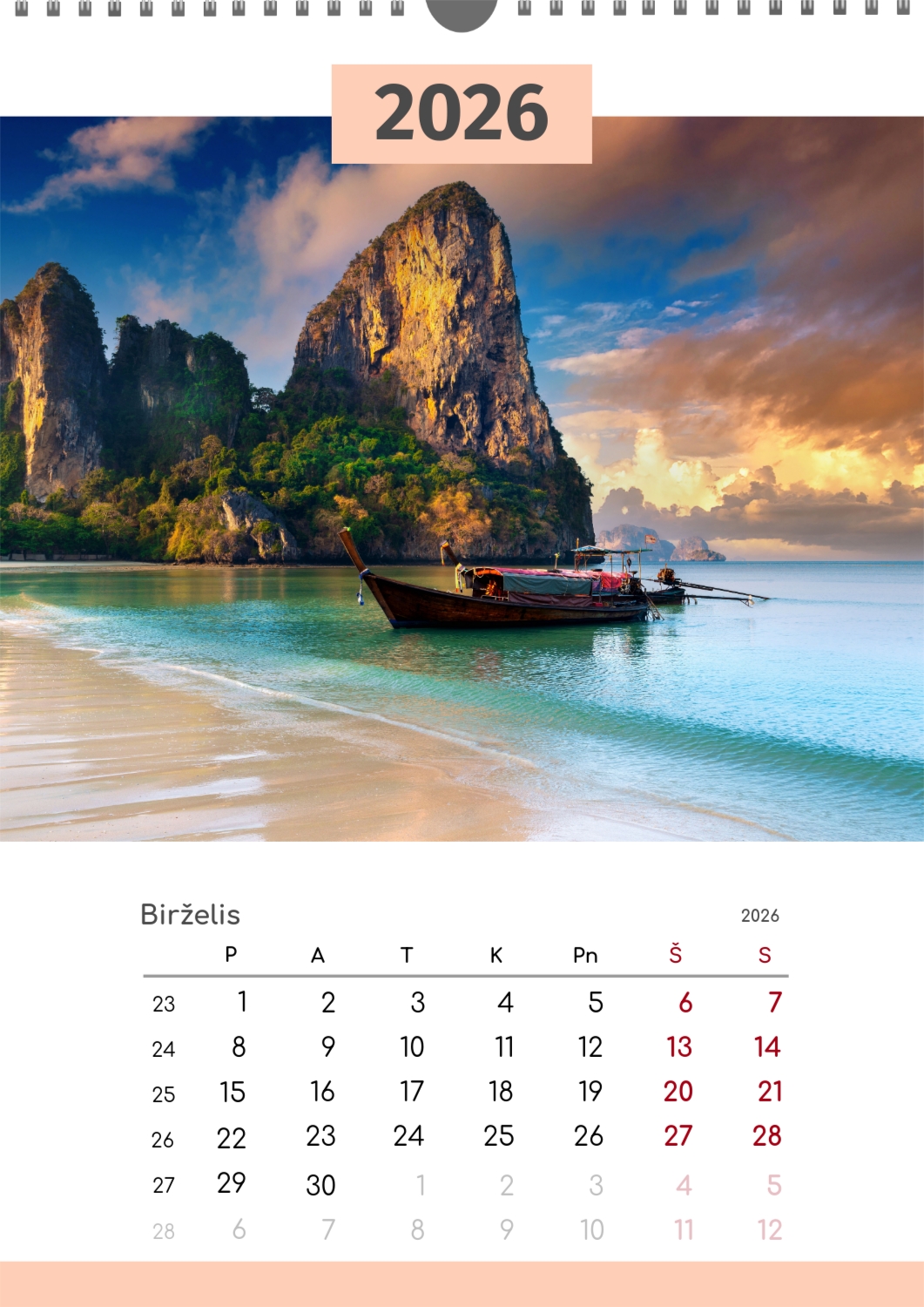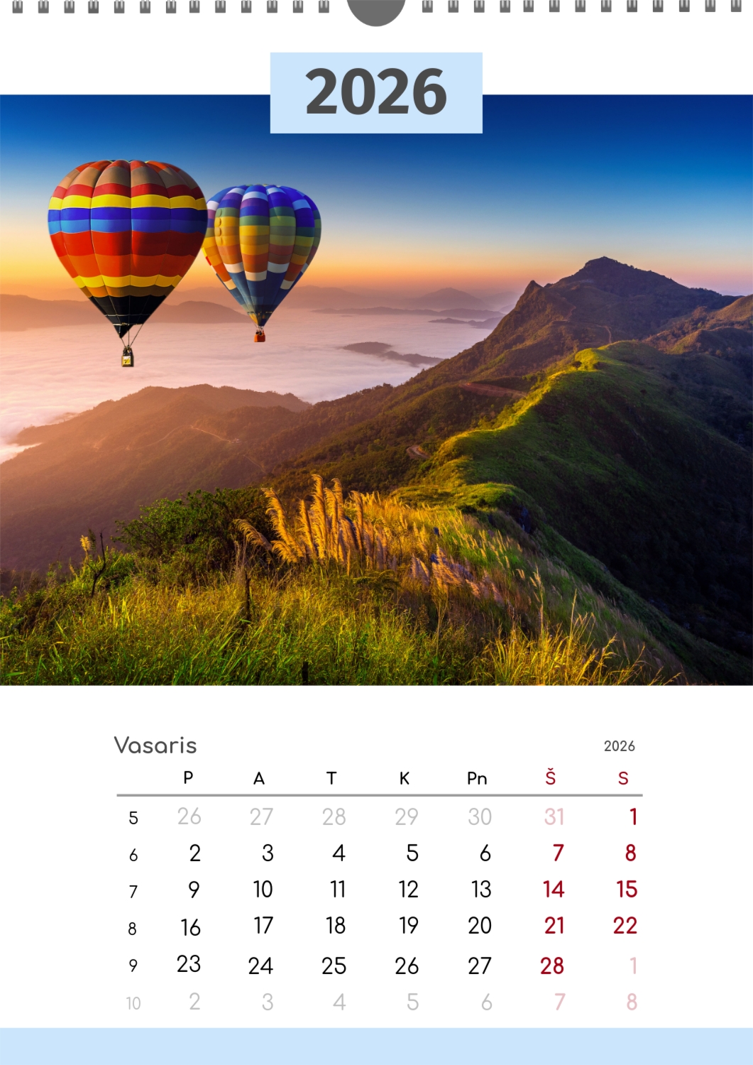 Nemokamas sieninio kalendoriaus šablonas su peizažais ir nuostabiais gamtos vaizdais. Sukurkite išdėstymą su savo rankomis internetiniame kalendoriaus dizaineryje.