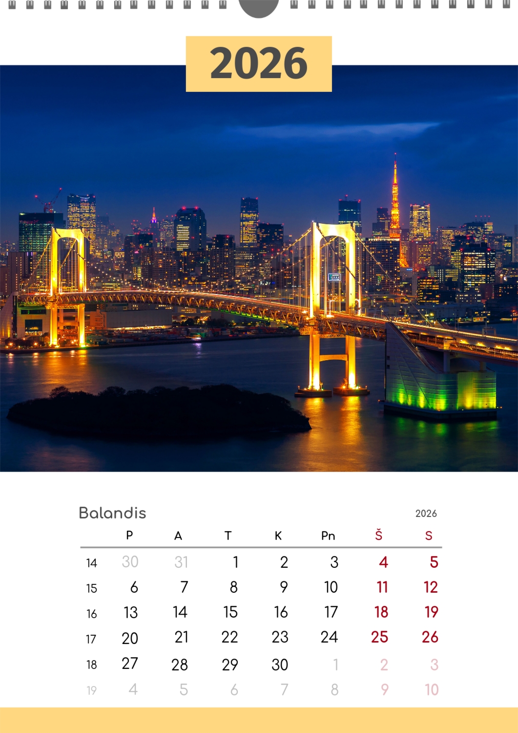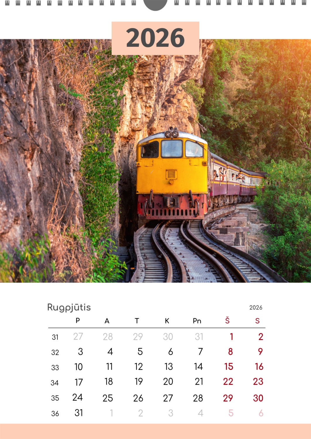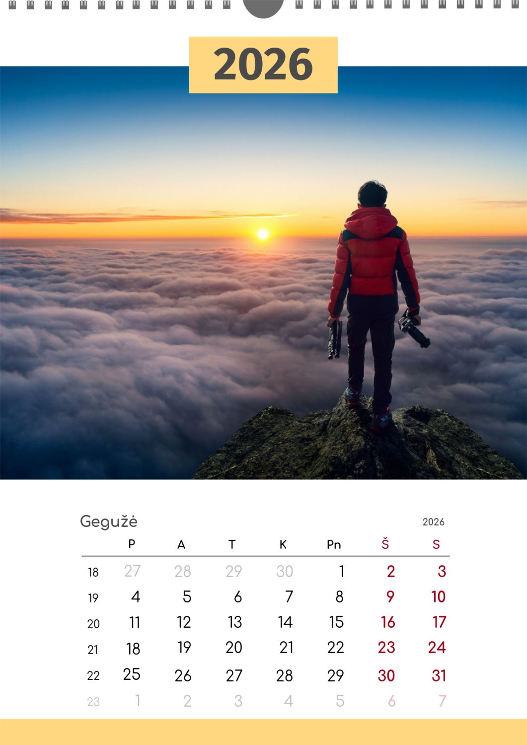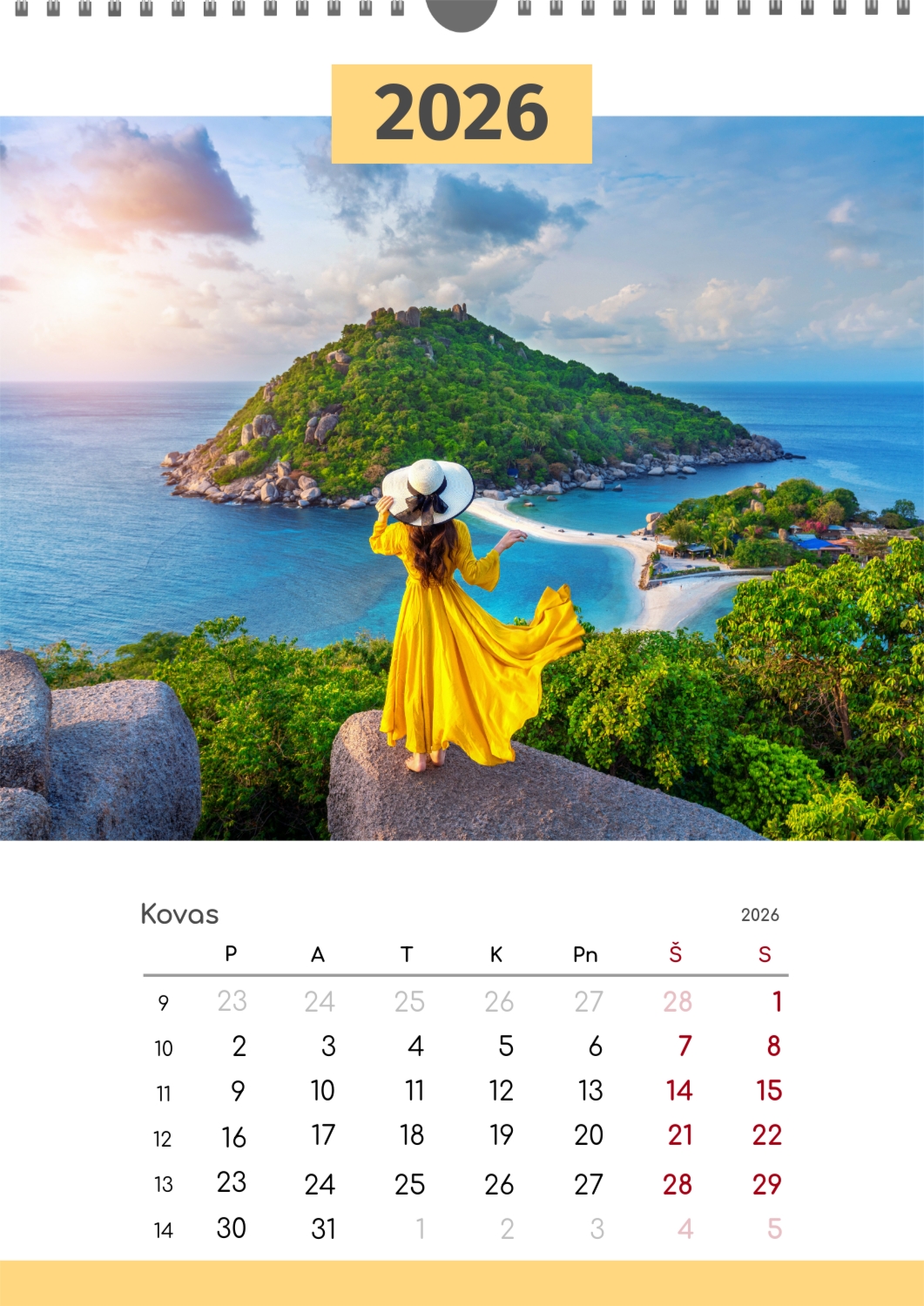 Nemokamas sieninio kalendoriaus šablonas su peizažais ir nuostabiais gamtos vaizdais. Sukurkite išdėstymą su savo rankomis internetiniame kalendoriaus dizaineryje.