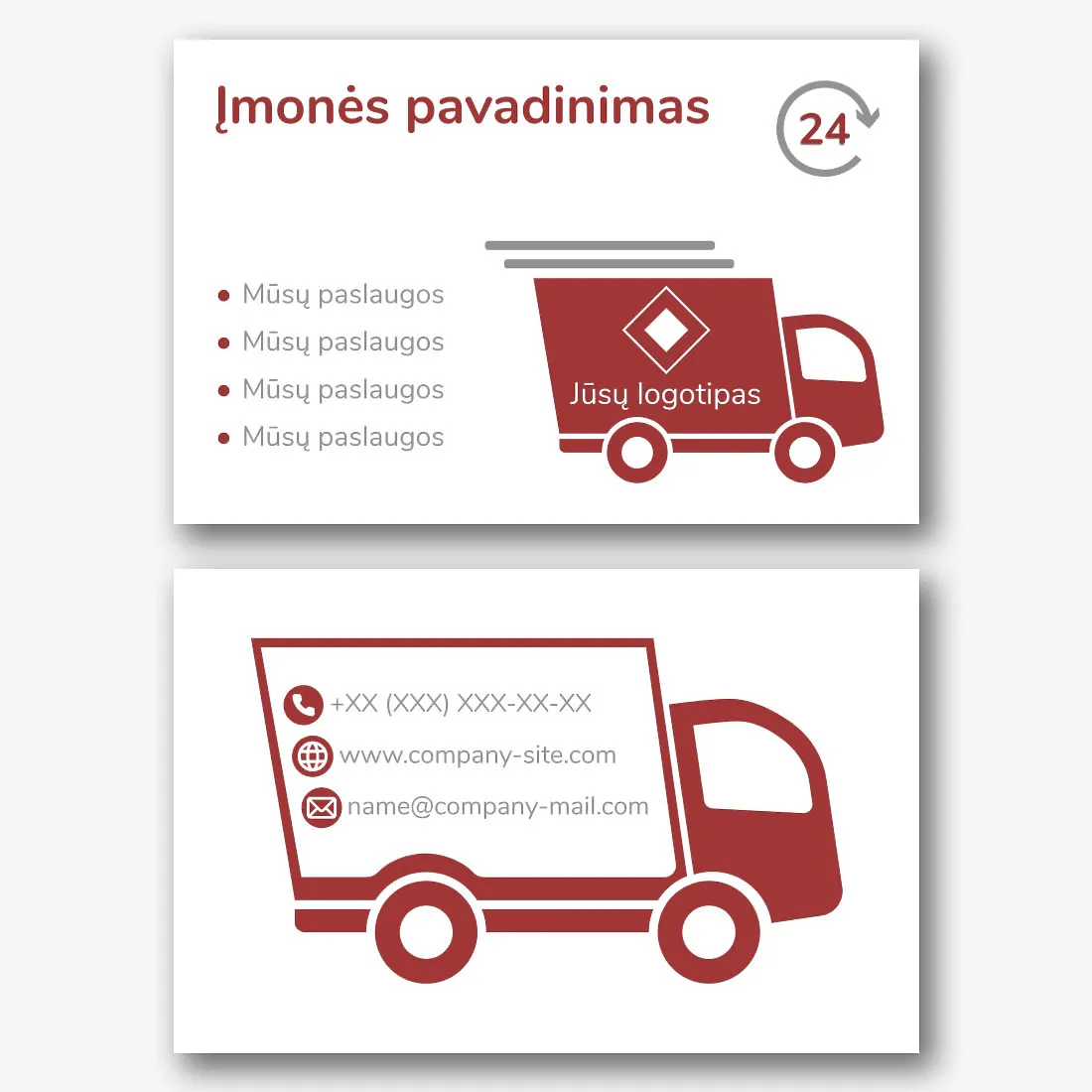 Nemokamas vizitinės kortelės Šablonas krovinių pervežimui, vežėjams, pristatymui, transporto įmonėms. Sukurkite vizitinės kortelės išdėstymą su savo rankomis vizitinės kortelės dizaineriu.