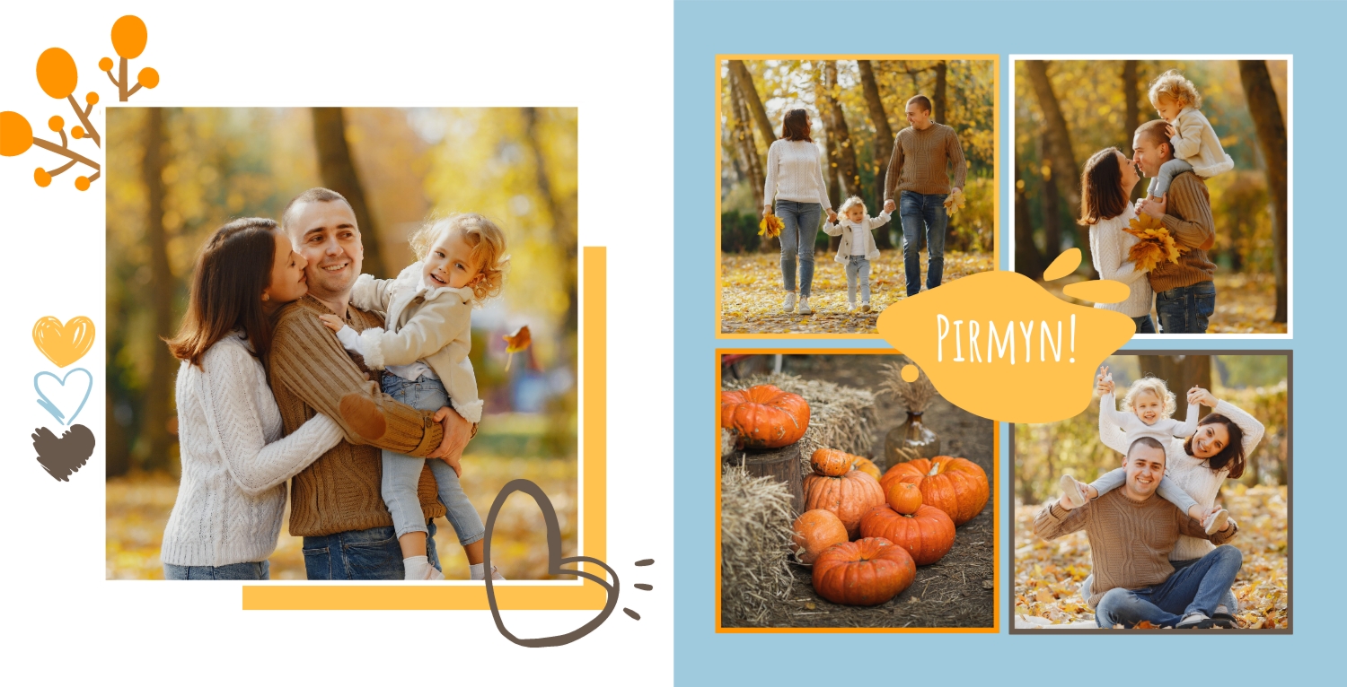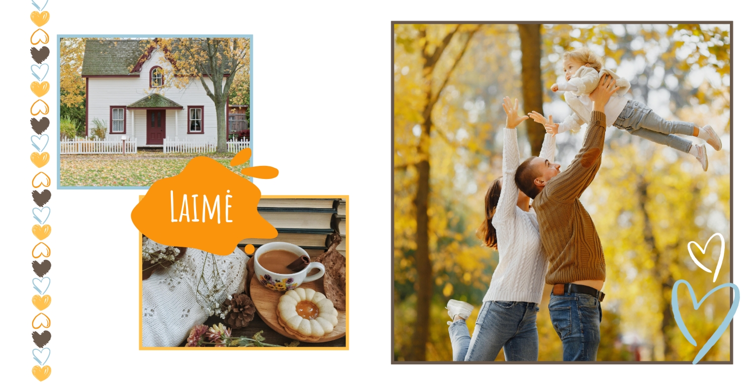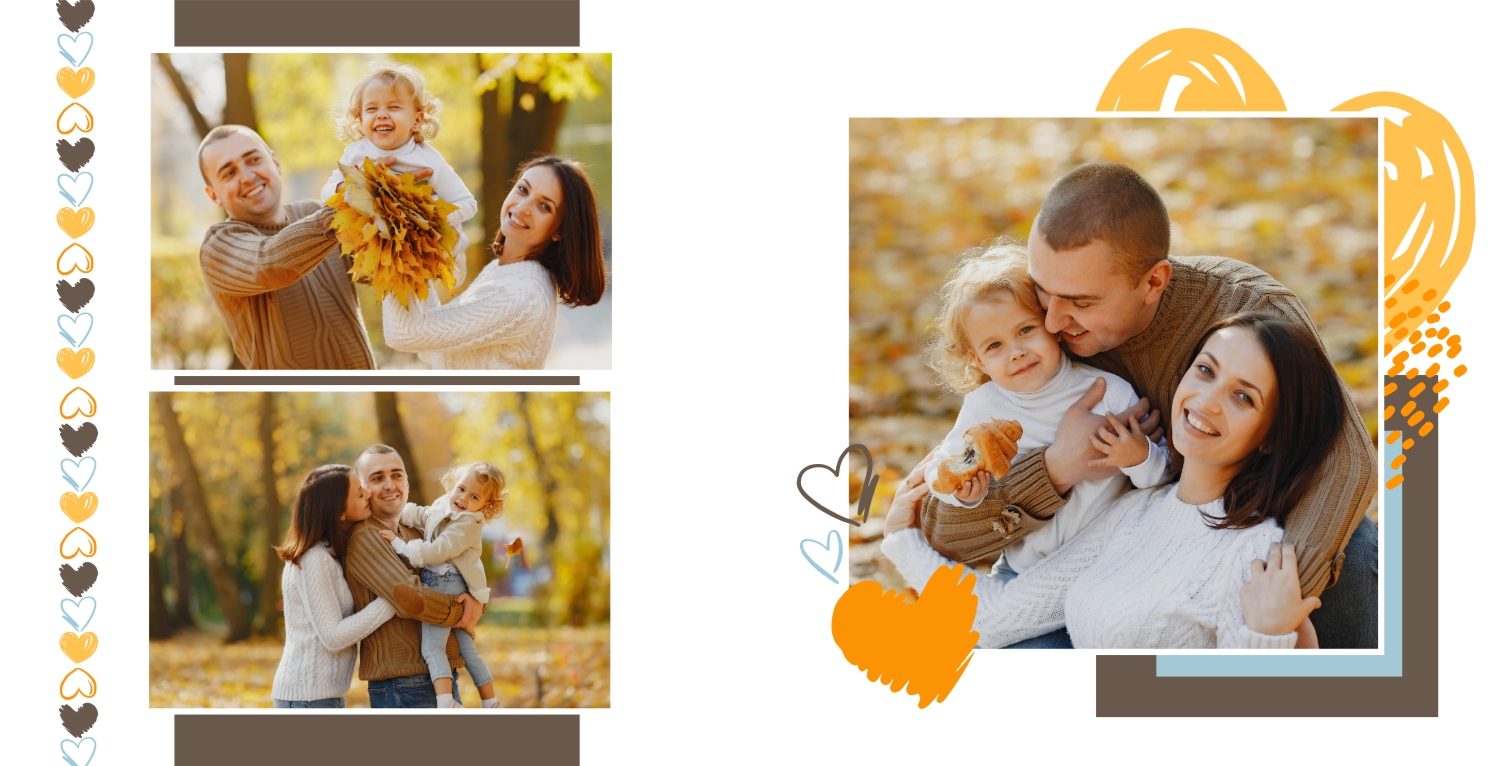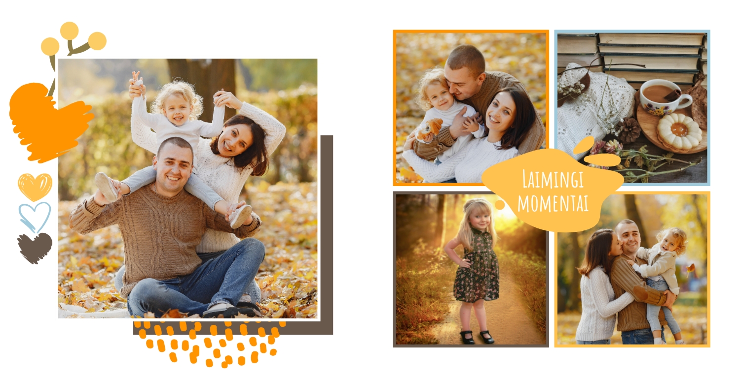 Nemokama šeimos nuotraukų knygos šablonas retro stiliaus. Sukurkite išdėstymą su savo rankomis internetinėje nuotraukų knygų dizaineriu.