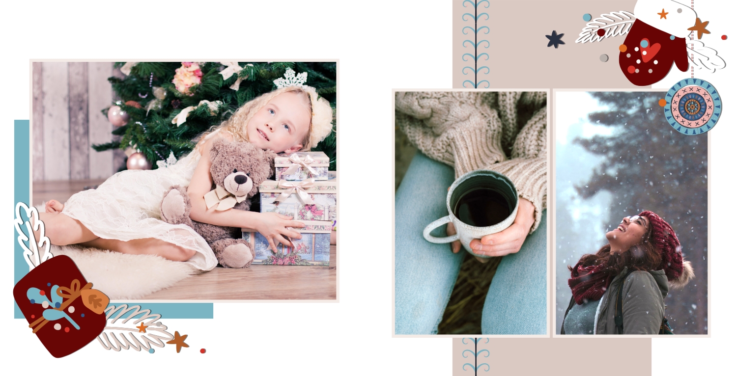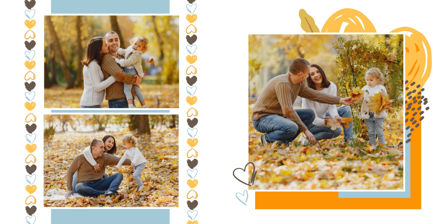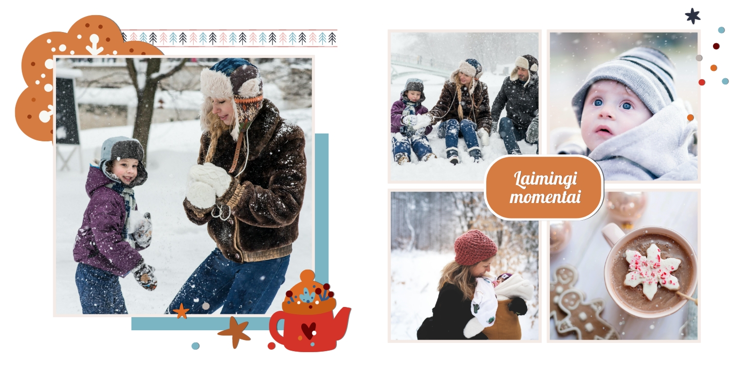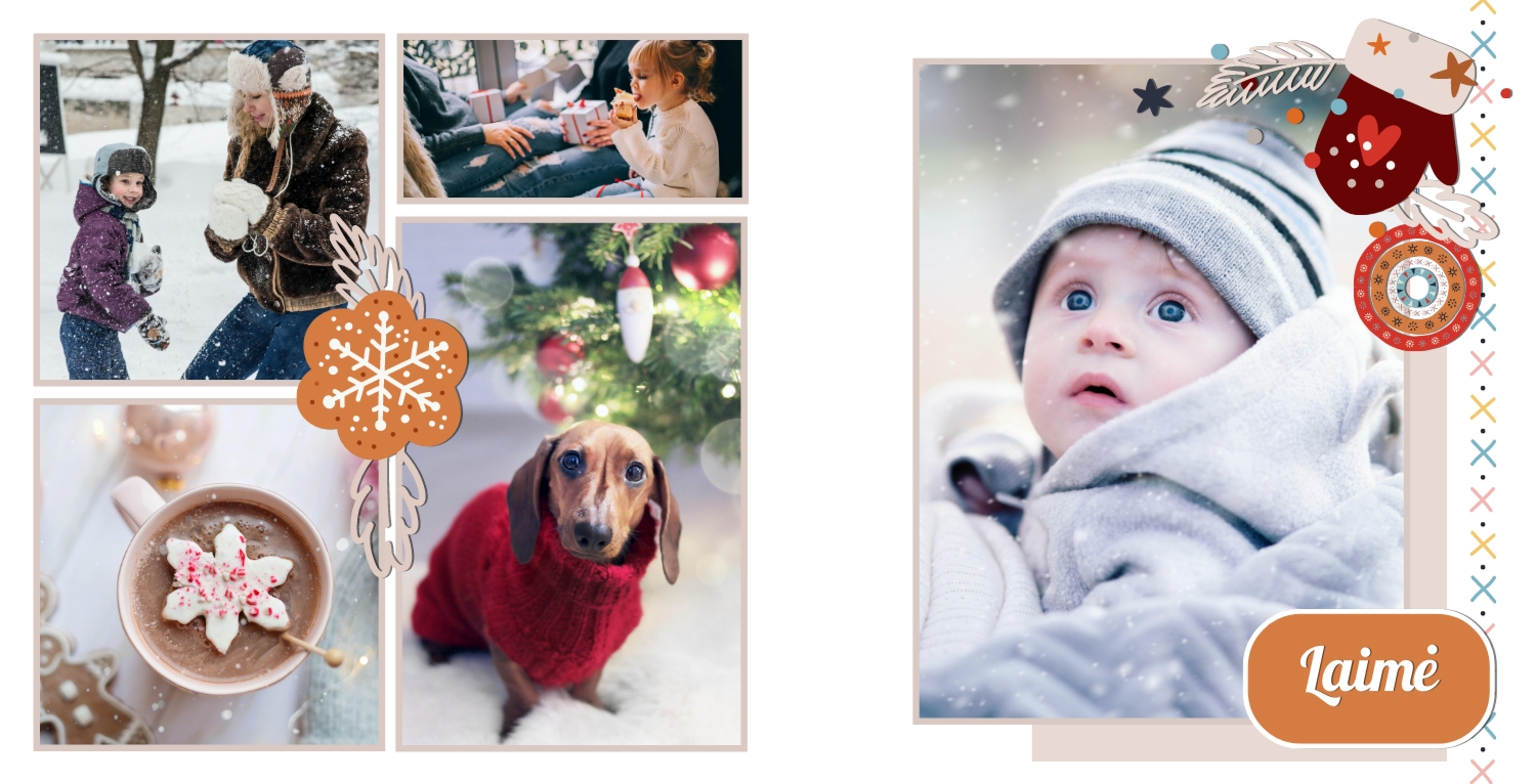 Nemokama šeimos nuotraukų knygos šablonas retro stiliaus. Sukurkite išdėstymą su savo rankomis internetinėje nuotraukų knygų dizaineriu.