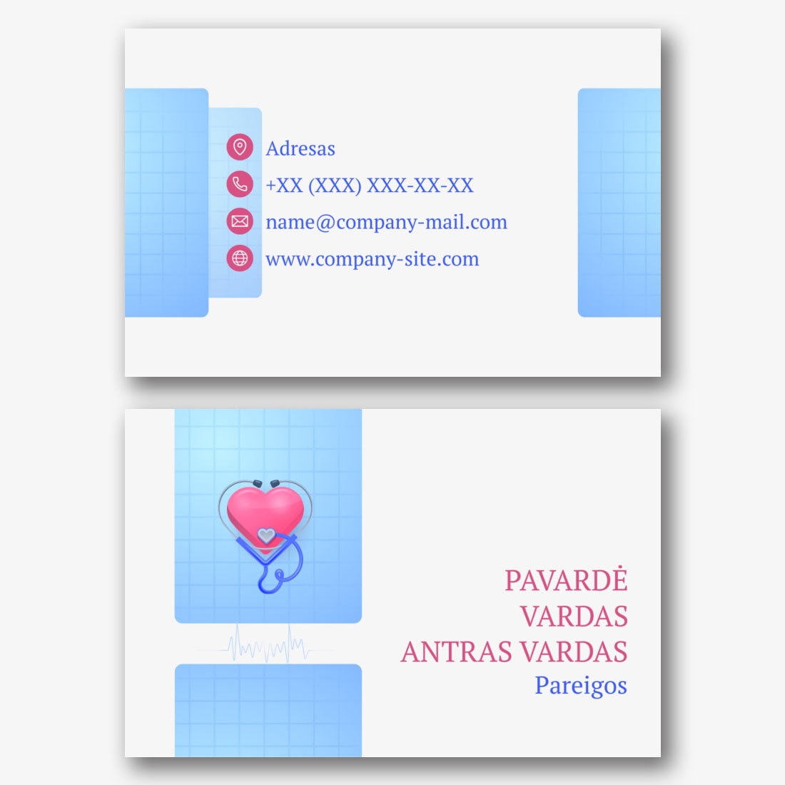 Nemokamas vizitinės kortelės Šablonas ginekologui, reproduktologui, nėščių moterų klinikai. Sukurkite išdėstymą su savo rankomis vizitinės kortelės dizaineriu.