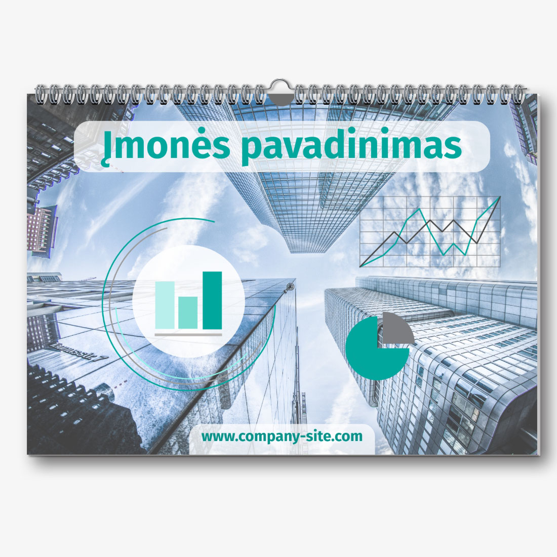 Nemokamas verslo kalendoriaus sienos šablonas jūsų įmonei, prekėms ar paslaugoms su galimybe jį redaguoti kalendoriaus dizaineryje.