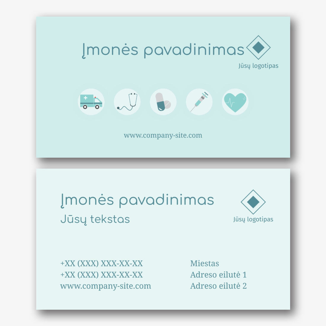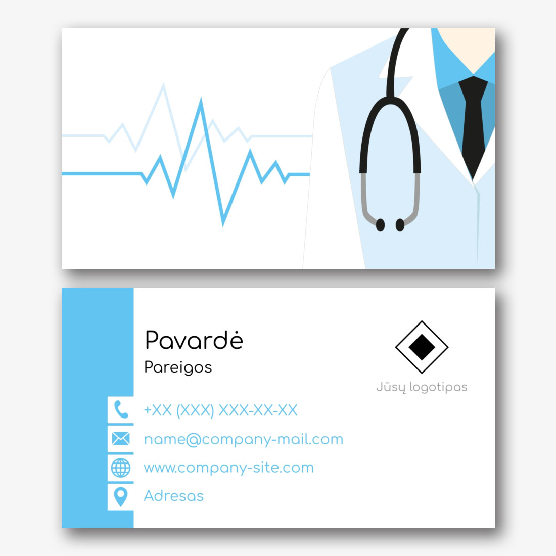 Nemokamas vizitinės kortelės Šablonas Kardiologijos centrui, medicinos personalui, kardiologams, klinikoms. Sukurkite išdėstymą su savo rankomis vizitinės kortelės dizaineriu.