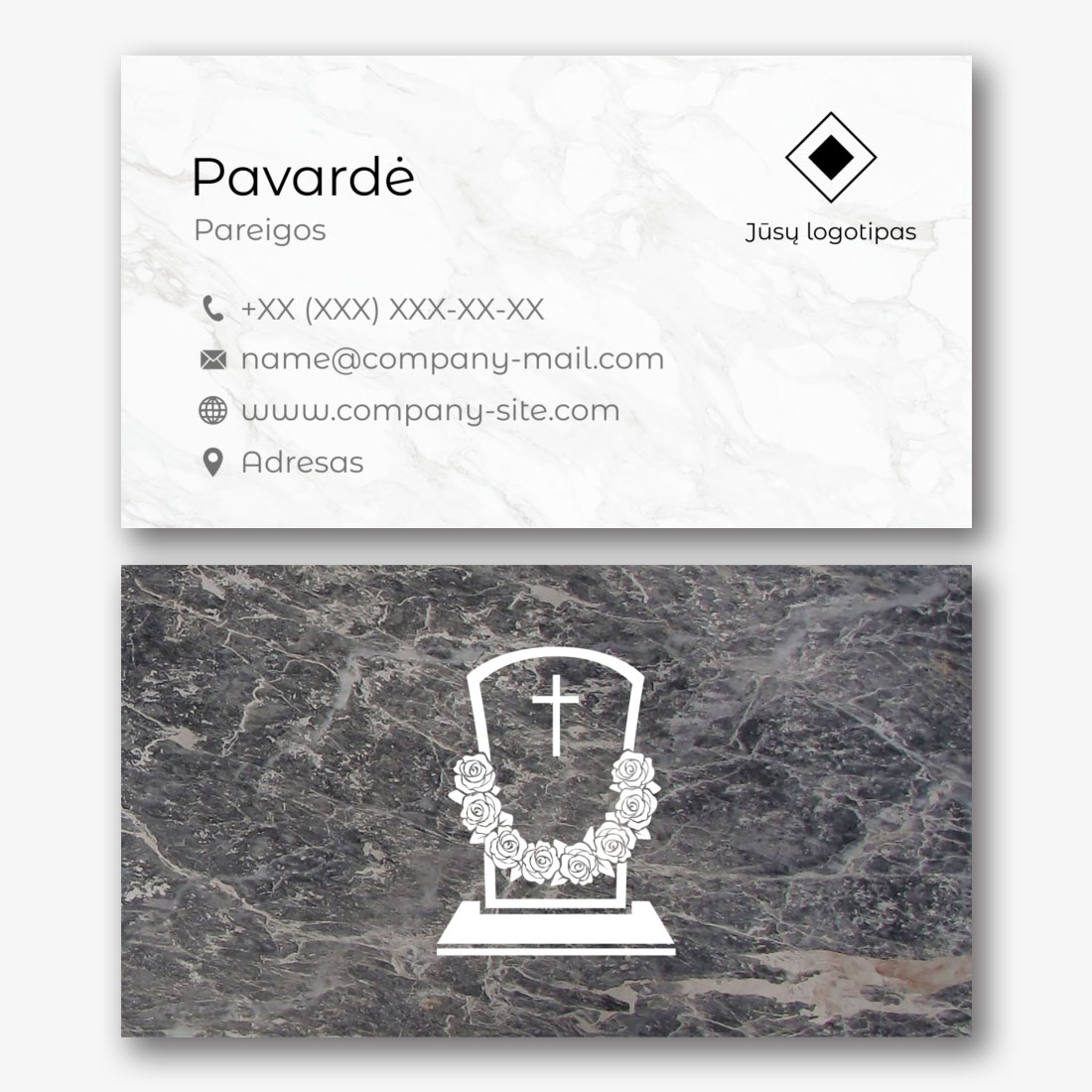 Nemokamas vizitinės kortelės Šablonas antkapių, laidojimo namų gamintojui. Sukurkite išdėstymą su savo rankomis vizitinės kortelės dizaineriu.