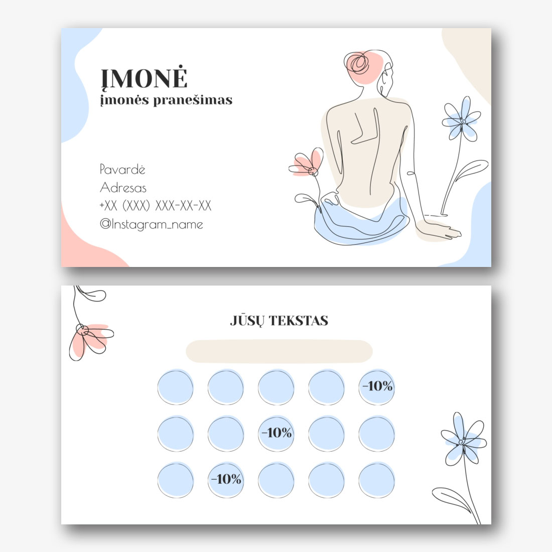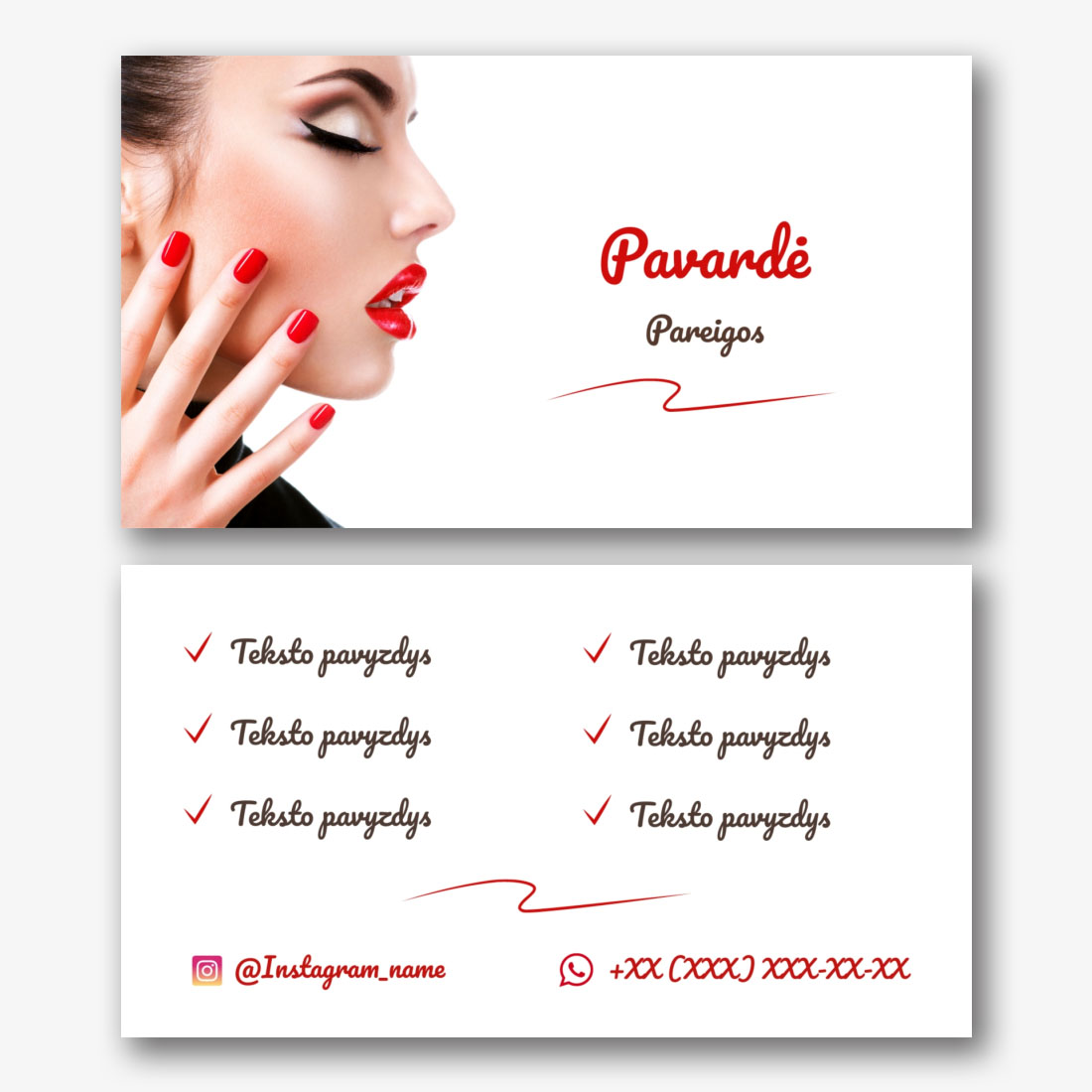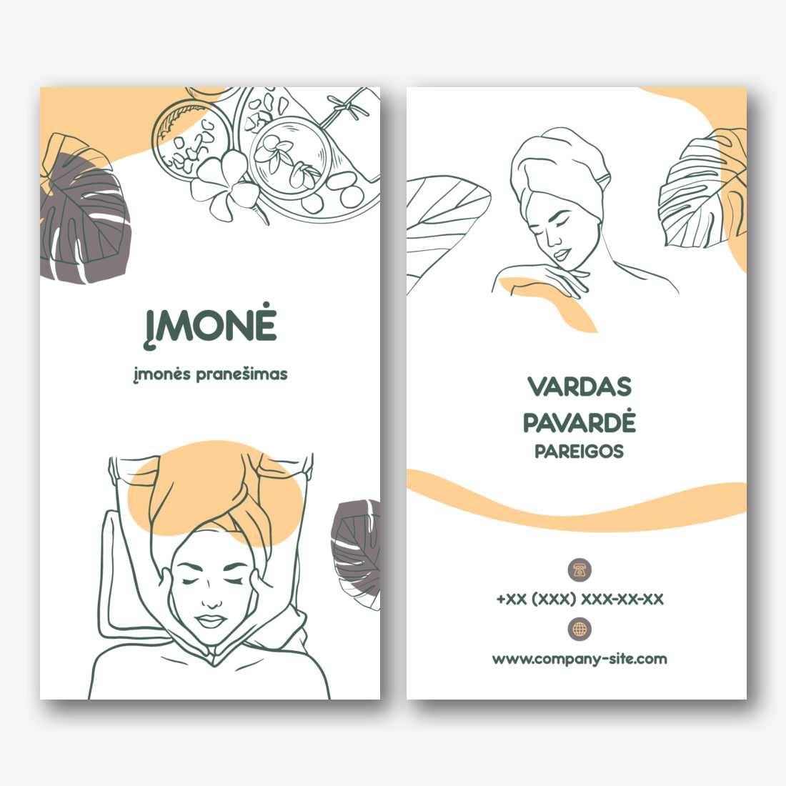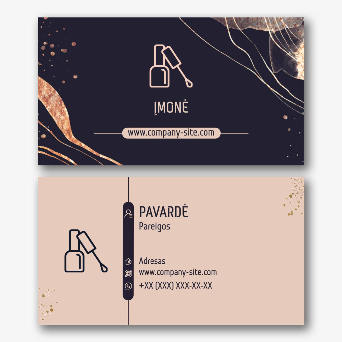 Nemokamas vizitinių kortelių šablonas kosmetologui, viliojimo kosmetikos parduotuvei, spa salonui. Sukurkite išdėstymą su savo rankomis vizitinės kortelės dizaineriu.
