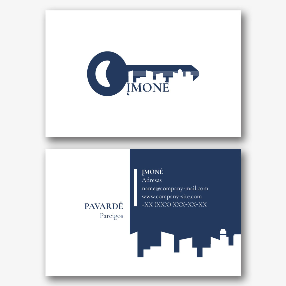 Nemokamas vizitinės kortelės Šablonas nekilnojamojo turto agentūrai, vystytojui, makleriui, brokeriui. Sukurkite išdėstymą su savo rankomis vizitinės kortelės dizaineriu.
