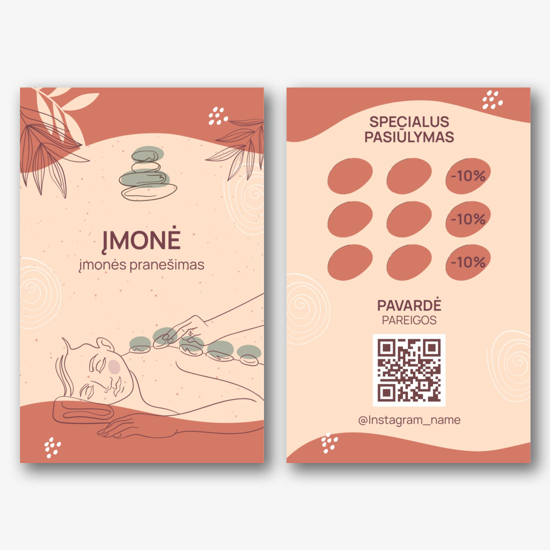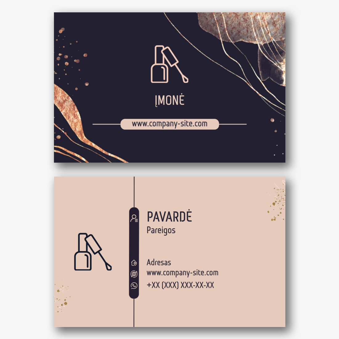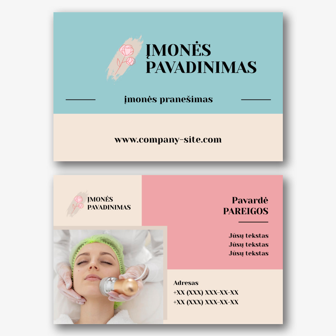 Nemokamas vizitinių kortelių šablonas kosmetologui, viliojimo kosmetikos parduotuvei, spa salonui. Sukurkite išdėstymą su savo rankomis vizitinės kortelės dizaineriu.