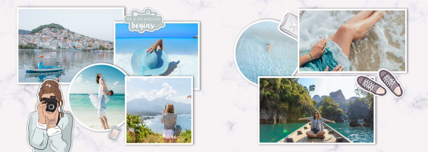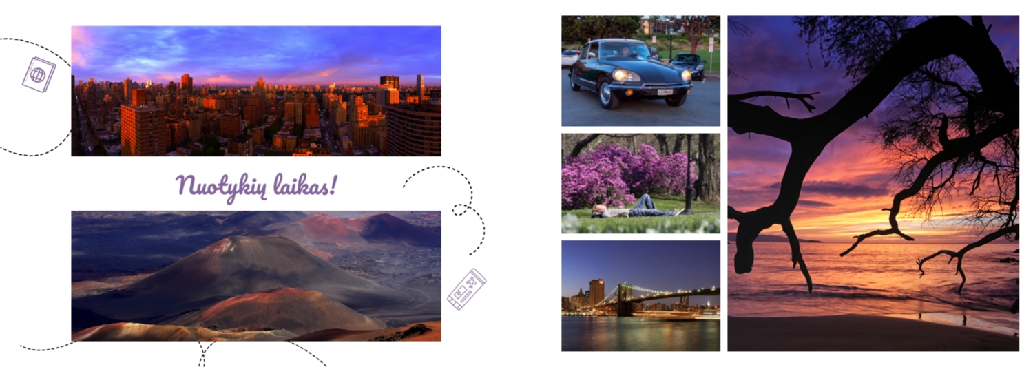 Nemokamas nuotraukų knygos šablonas kelionėms, šeimos atostogoms, atostogoms. Sukurkite išdėstymą su savo rankomis internetinėje nuotraukų knygų dizaineriu.