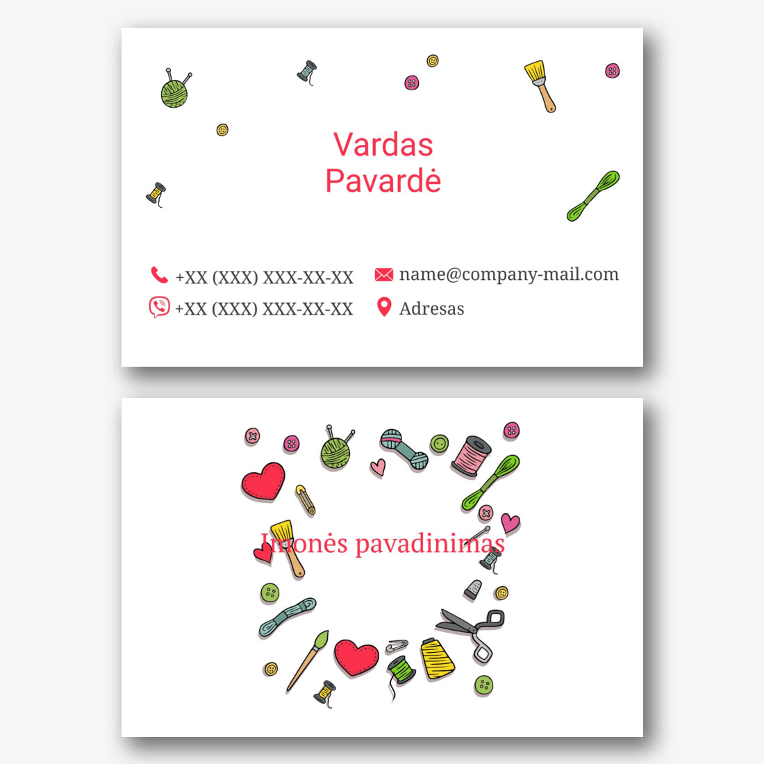 Nemokamas rankdarbių meistro vizitinės kortelės Šablonas, rankdarbių būreliai. Sukurkite išdėstymą su savo rankomis vizitinės kortelės dizaineriu.