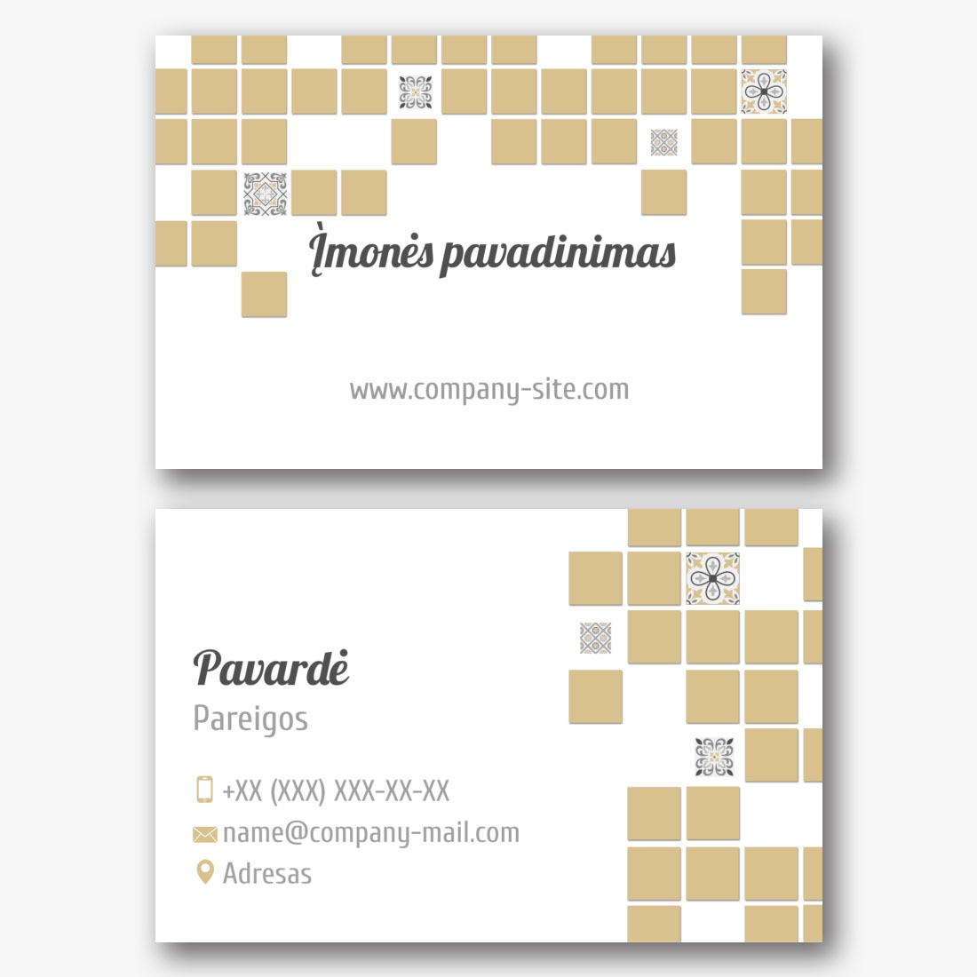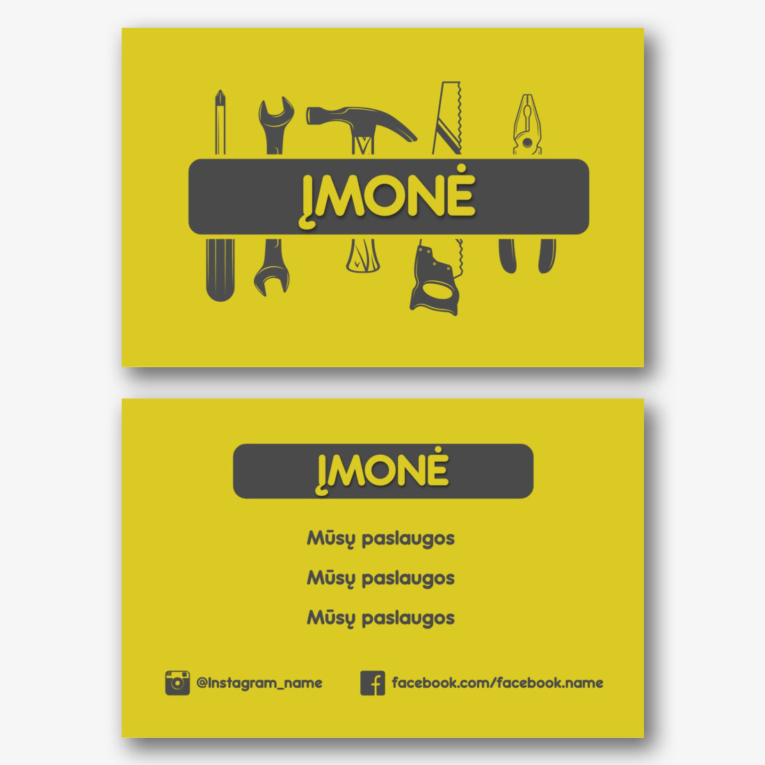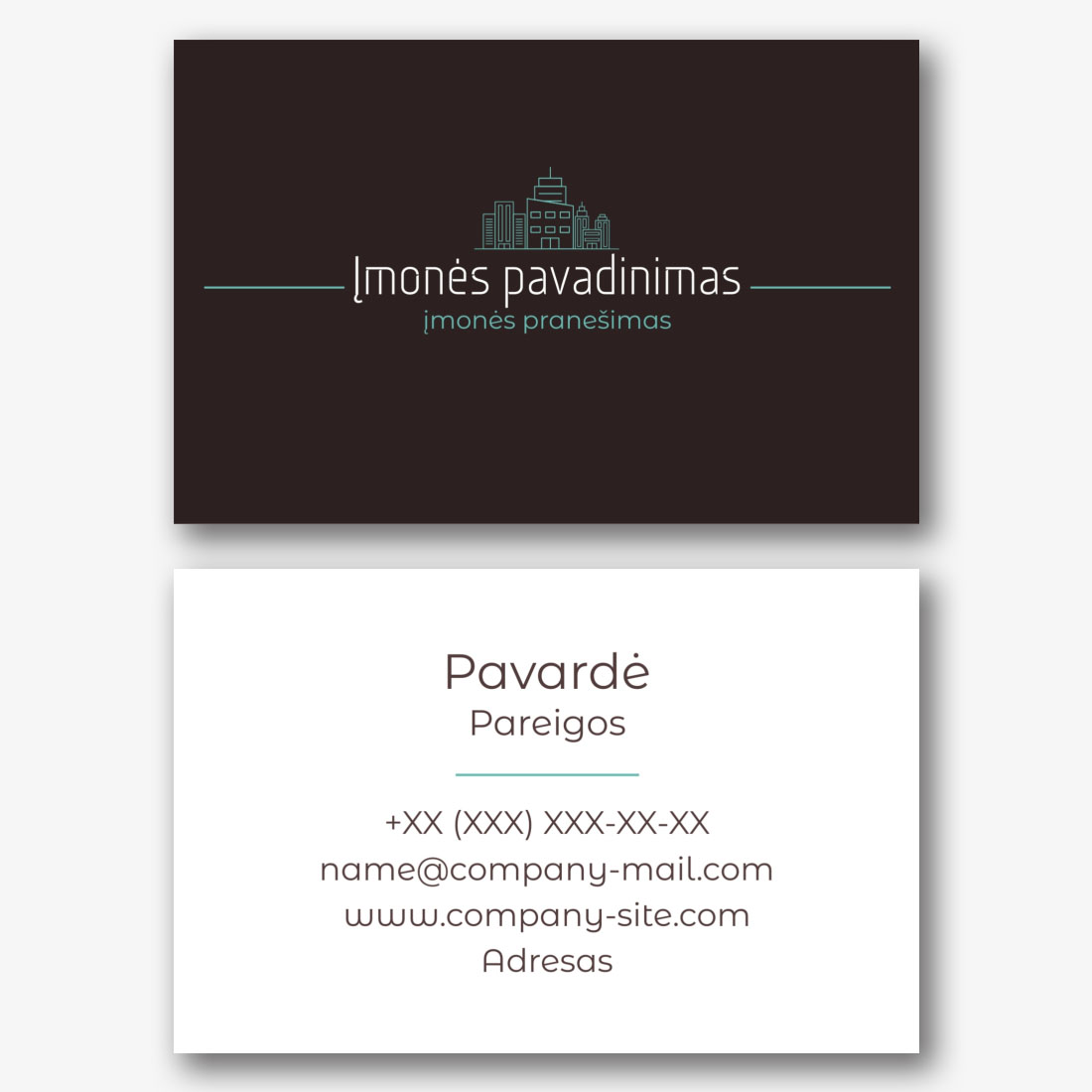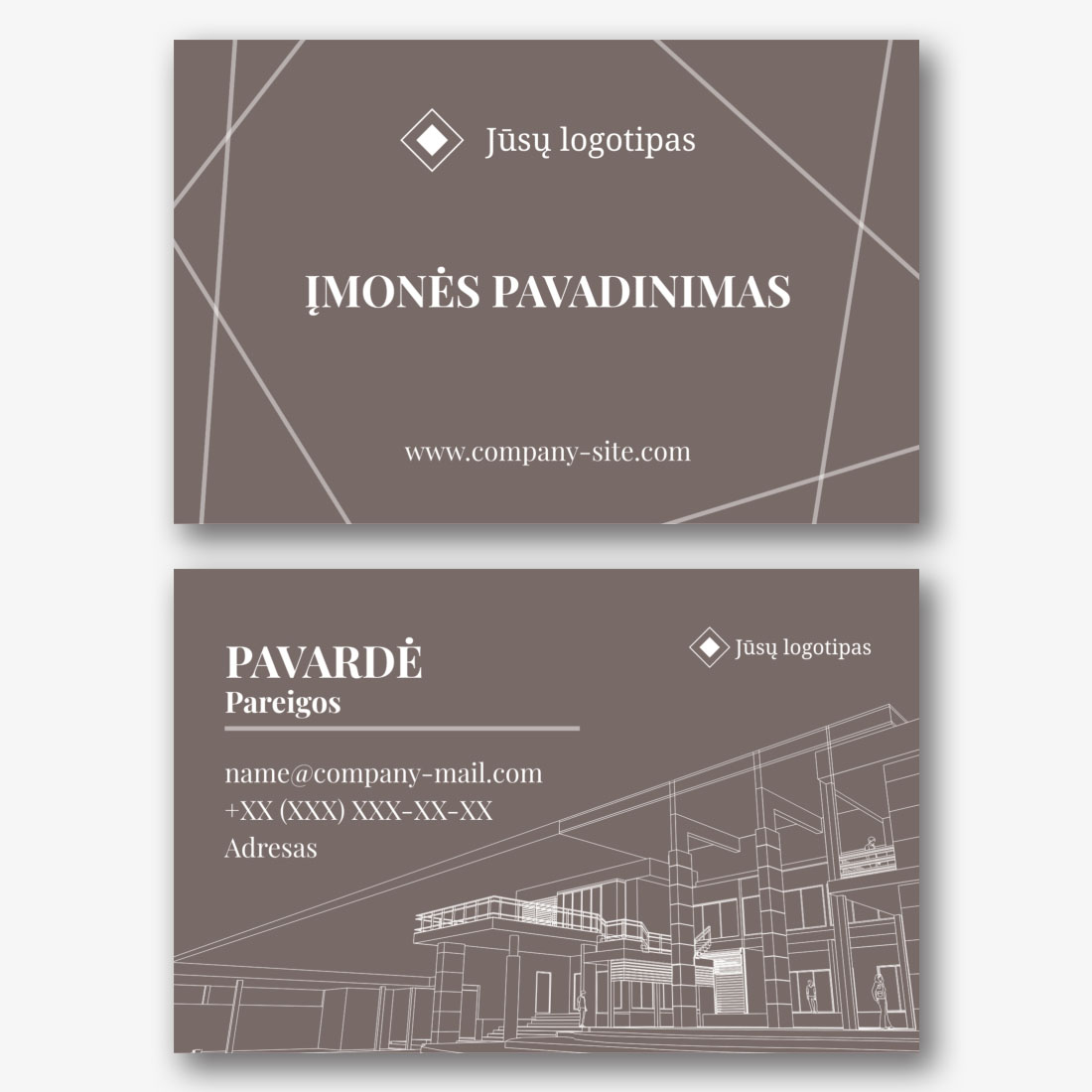 Nemokamas vizitinės kortelės Šablonas statybų įmonei, vystytojui, makleriui, nekilnojamojo turto agentūrai. Sukurkite išdėstymą su savo rankomis vizitinės kortelės dizaineriu.