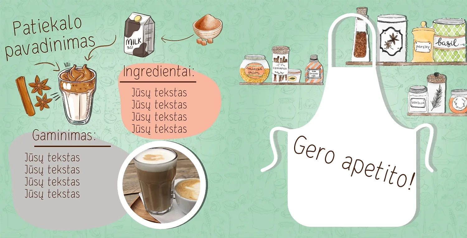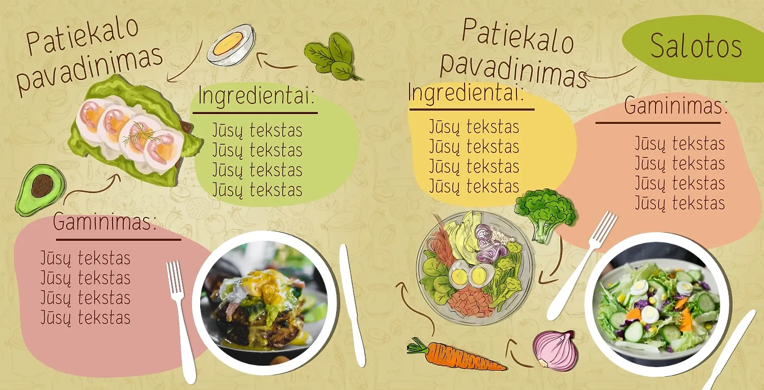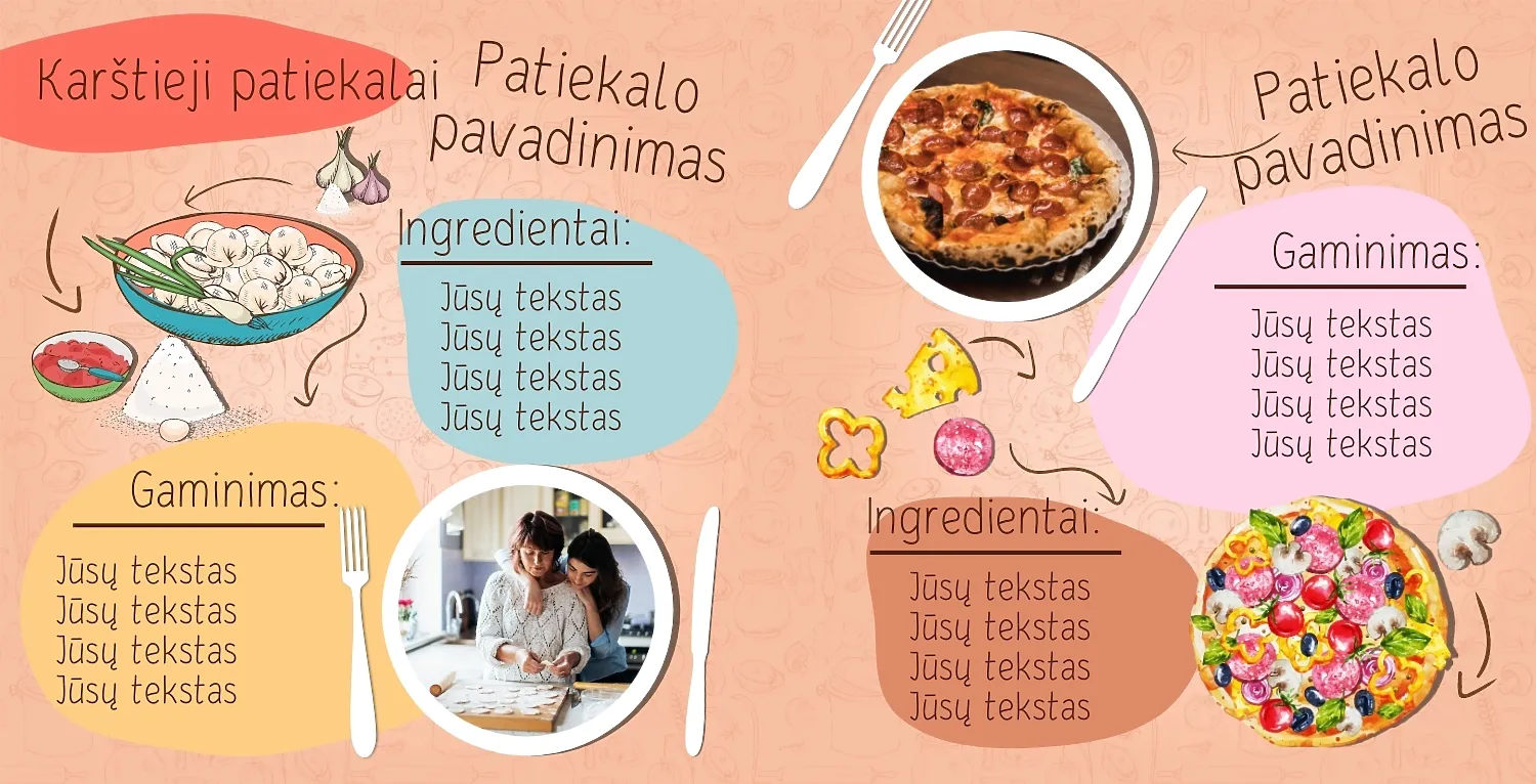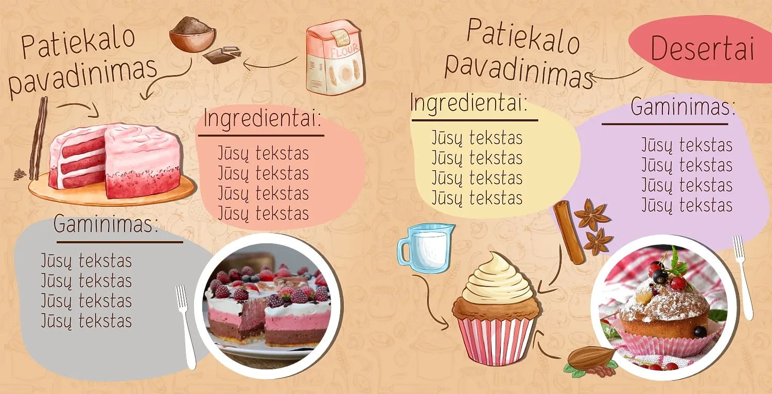 Nemokamas receptų nuotraukų knygos šablono kvadratas. Sukurkite išdėstymą su savo rankomis internetinėje nuotraukų knygų dizaineriu.