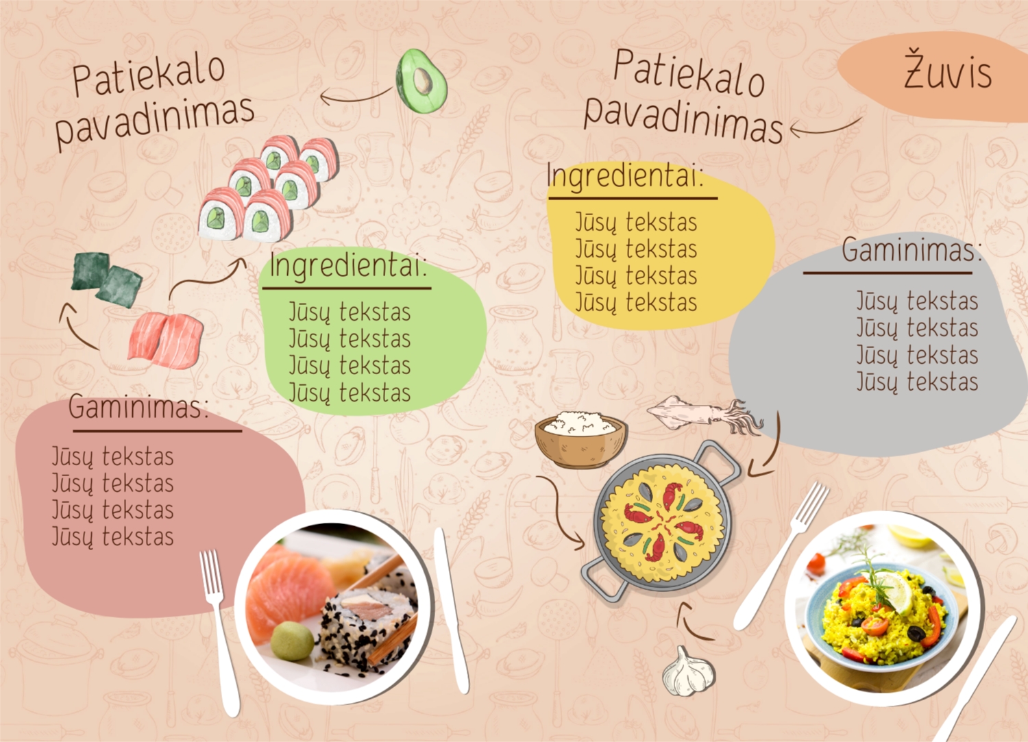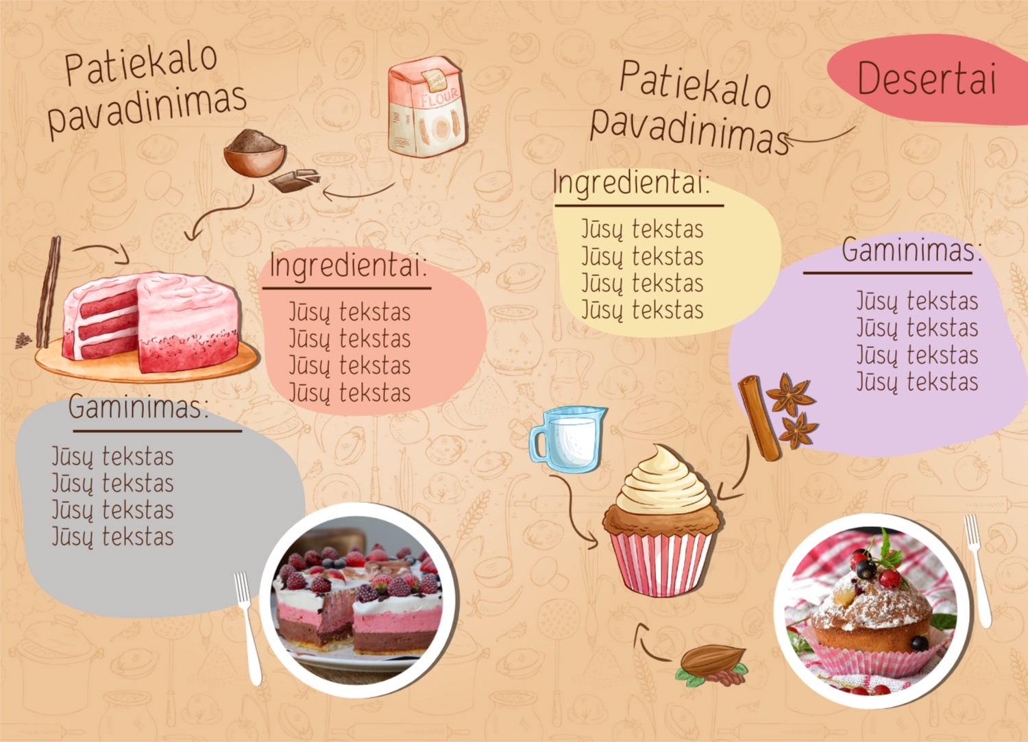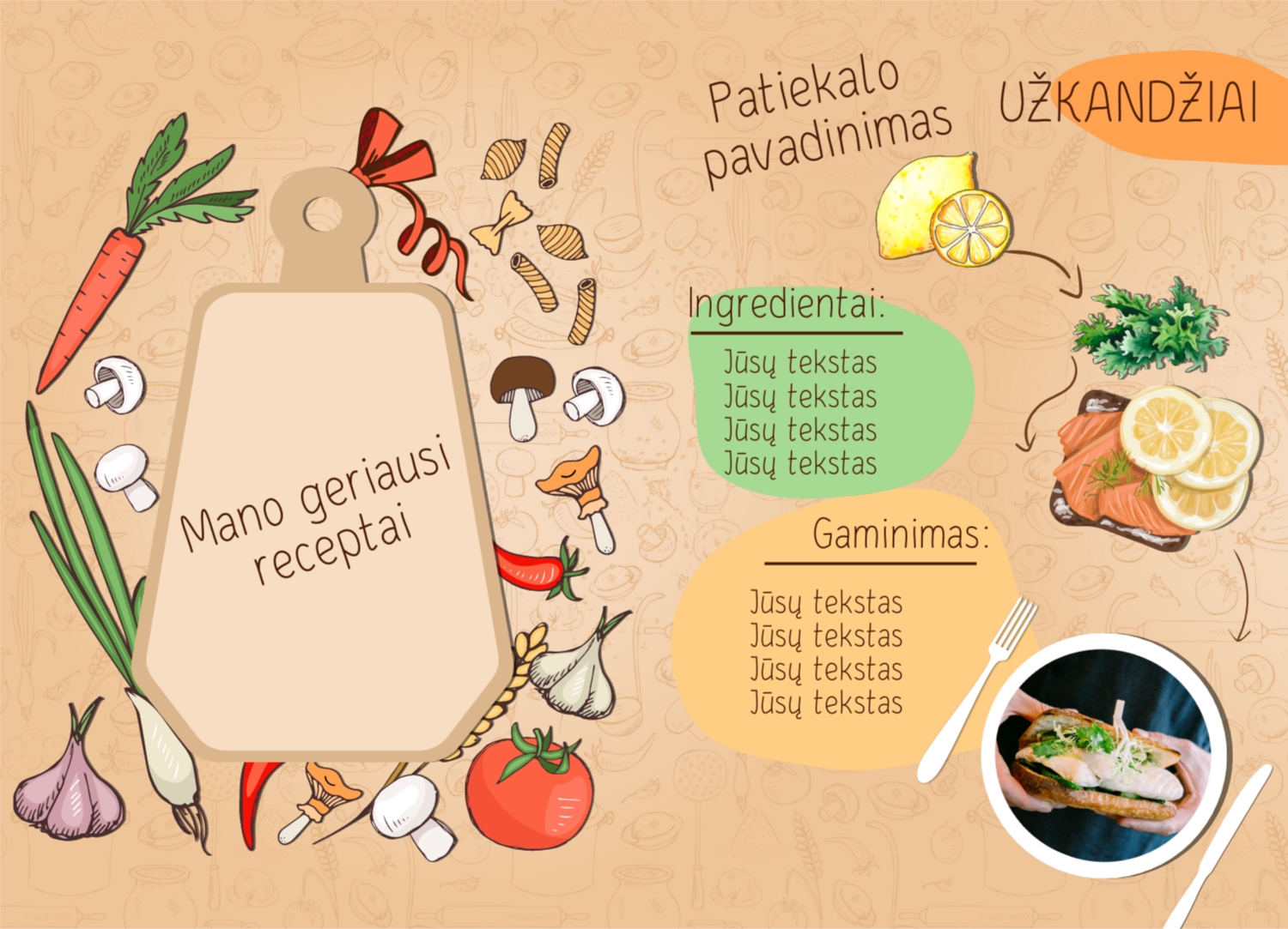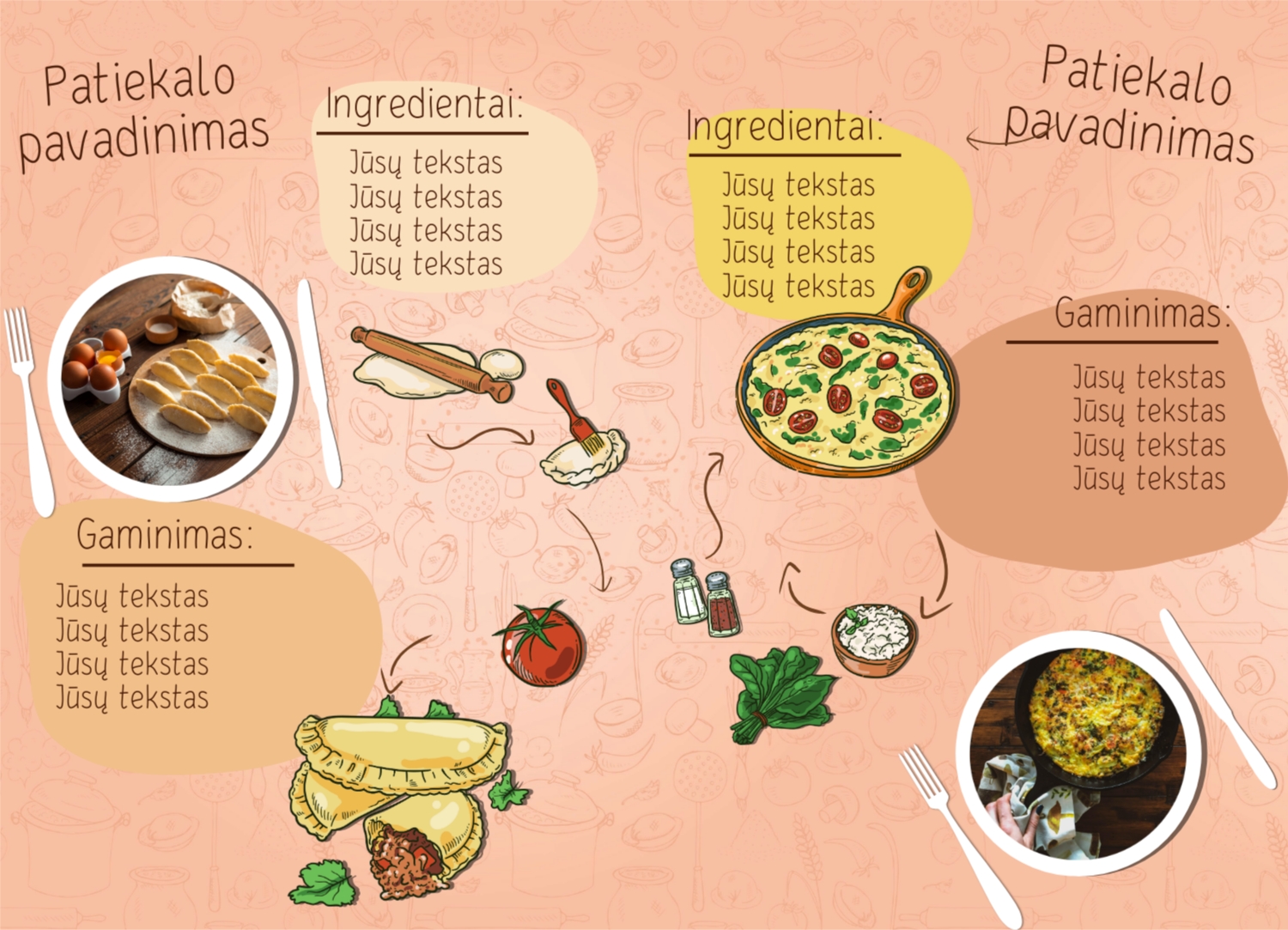 Nemokama receptų nuotraukų knygos šablonas vertikalus. Sukurkite išdėstymą su savo rankomis internetinėje nuotraukų knygų dizaineriu.