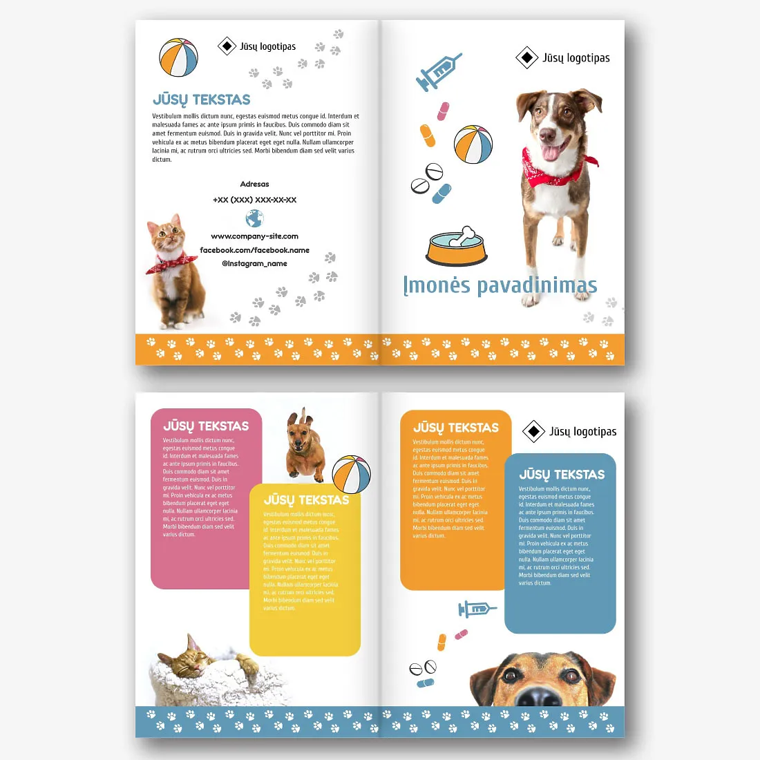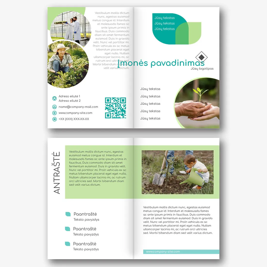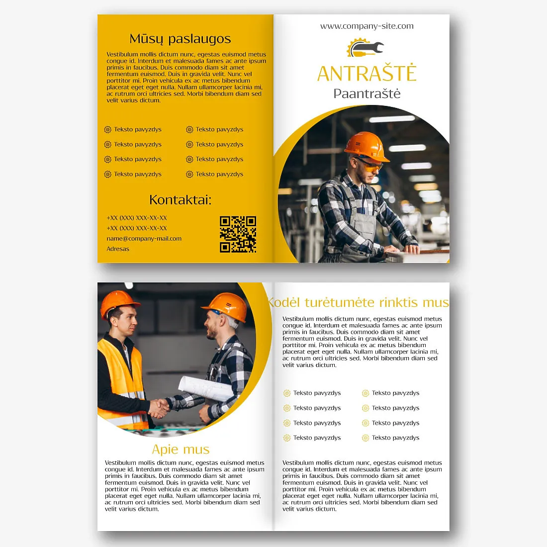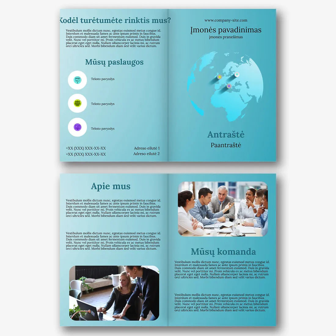 Nemokamas informacinės brošiūros šablonas internetinei nekilnojamojo turto įmonei, vystytojui, vystytojui. Sukurkite brošiūros išdėstymą su savo rankomis internetiniame dizaineryje.