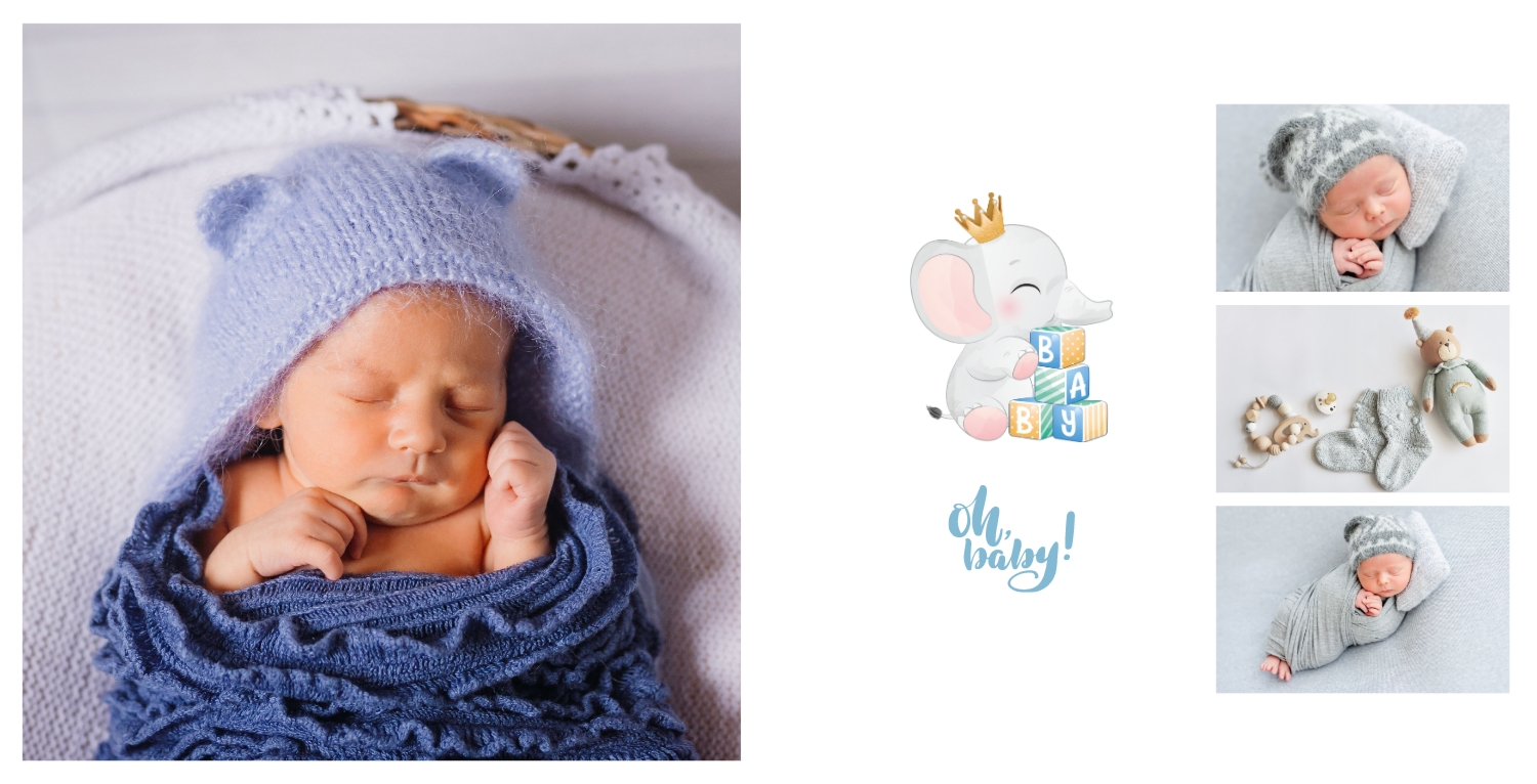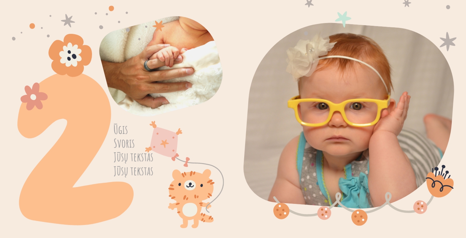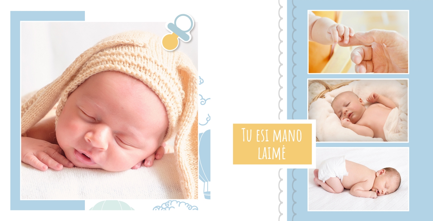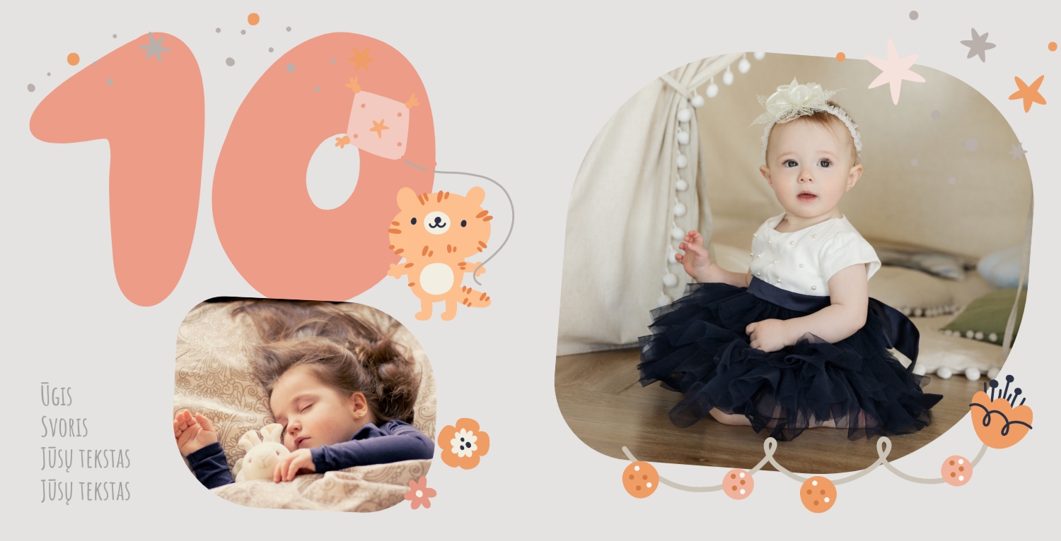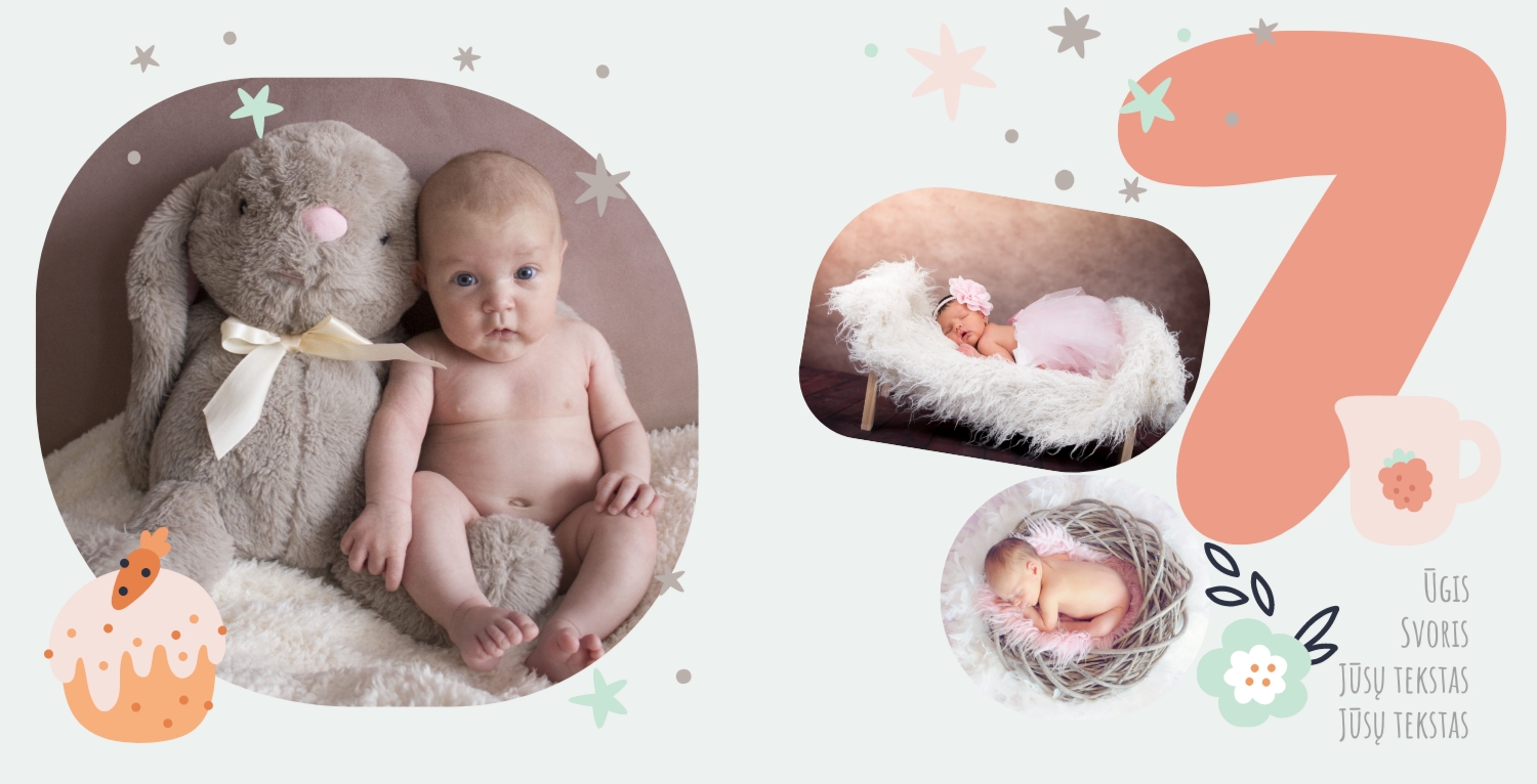 Nemokamas vaikų nuotraukų knygos šablonas nuo gimimo iki metų. Sukurkite išdėstymą su savo rankomis internetinėje nuotraukų knygų dizaineriu.
