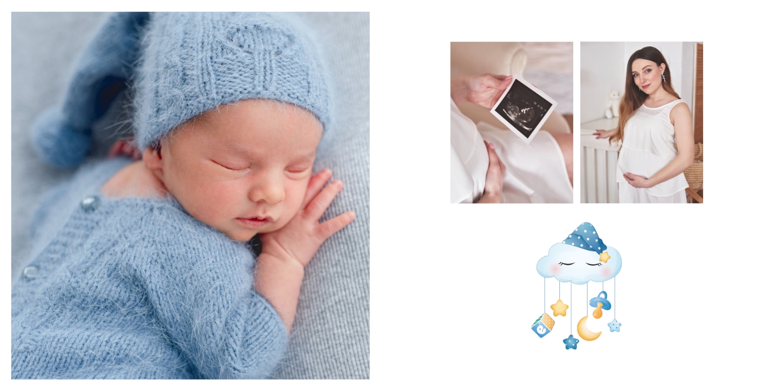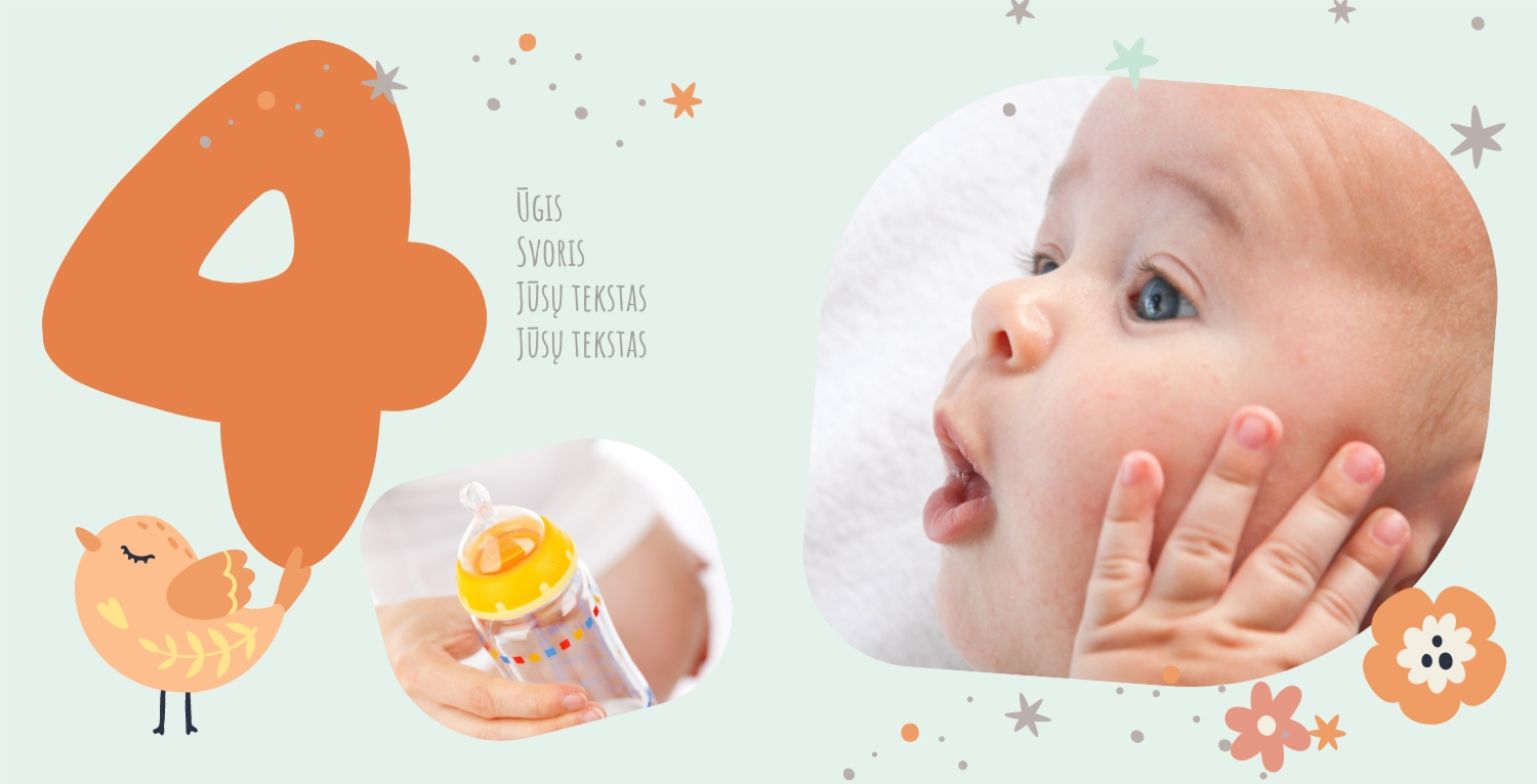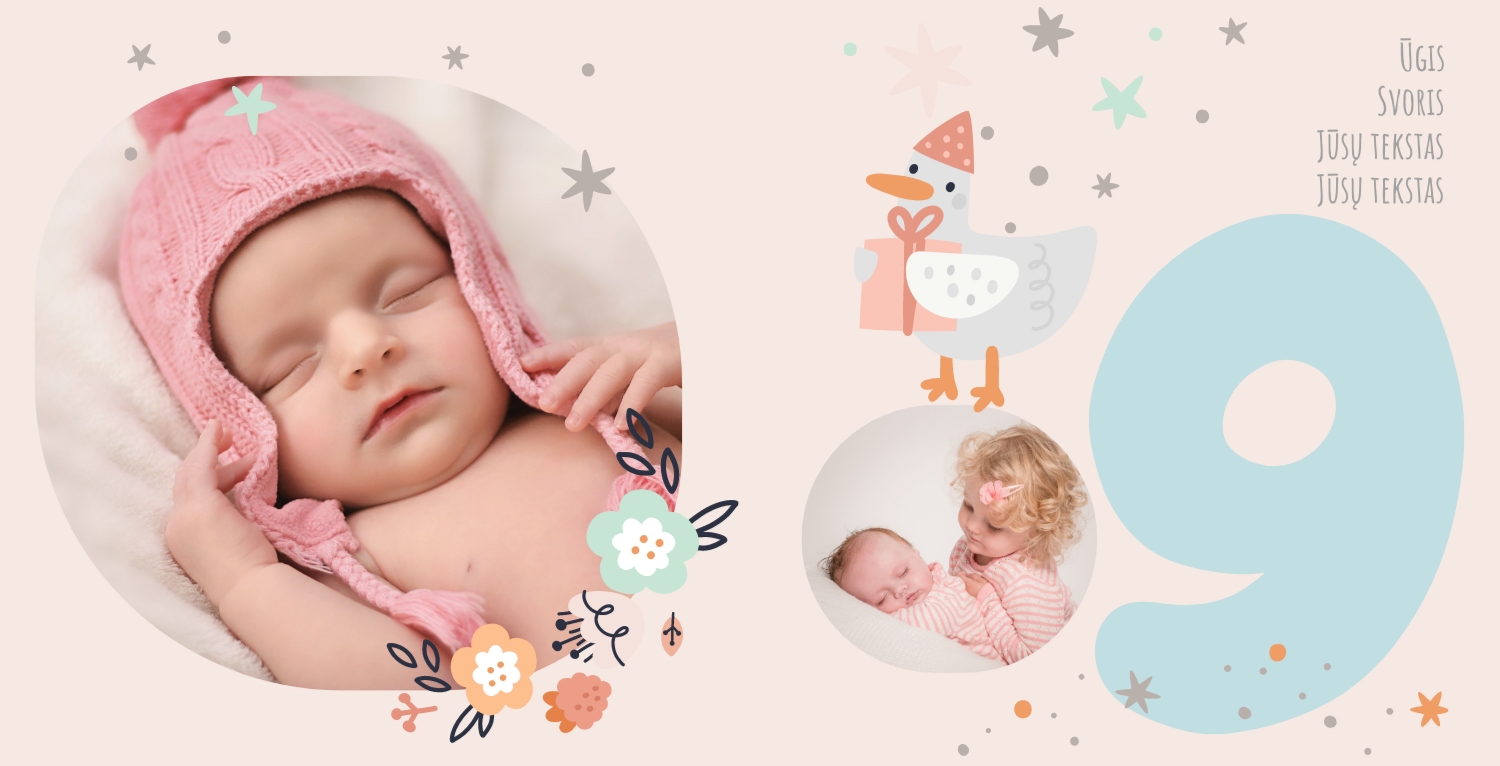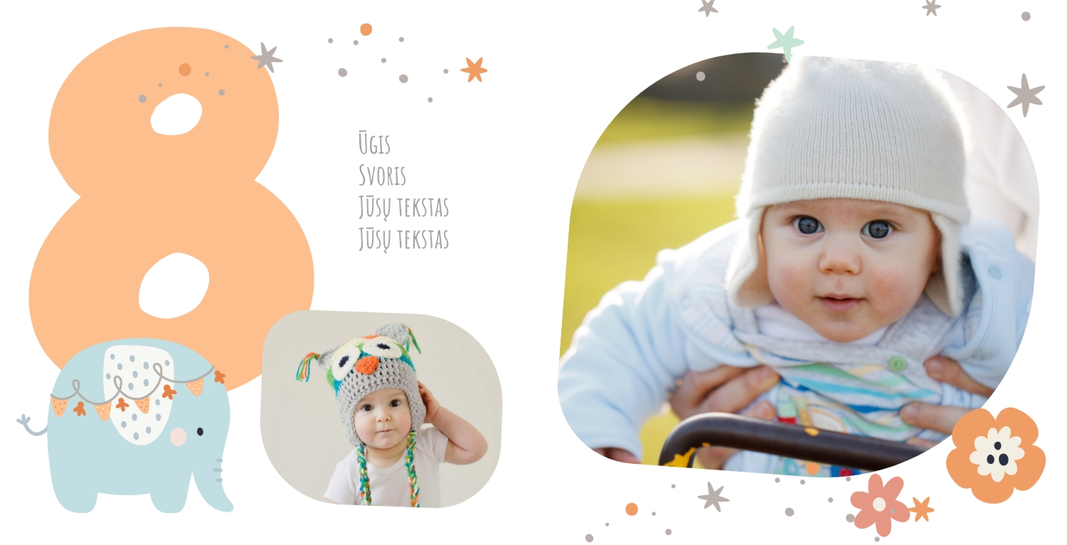 Nemokamas vaikų nuotraukų knygos šablonas nuo gimimo iki metų. Sukurkite išdėstymą su savo rankomis internetinėje nuotraukų knygų dizaineriu.