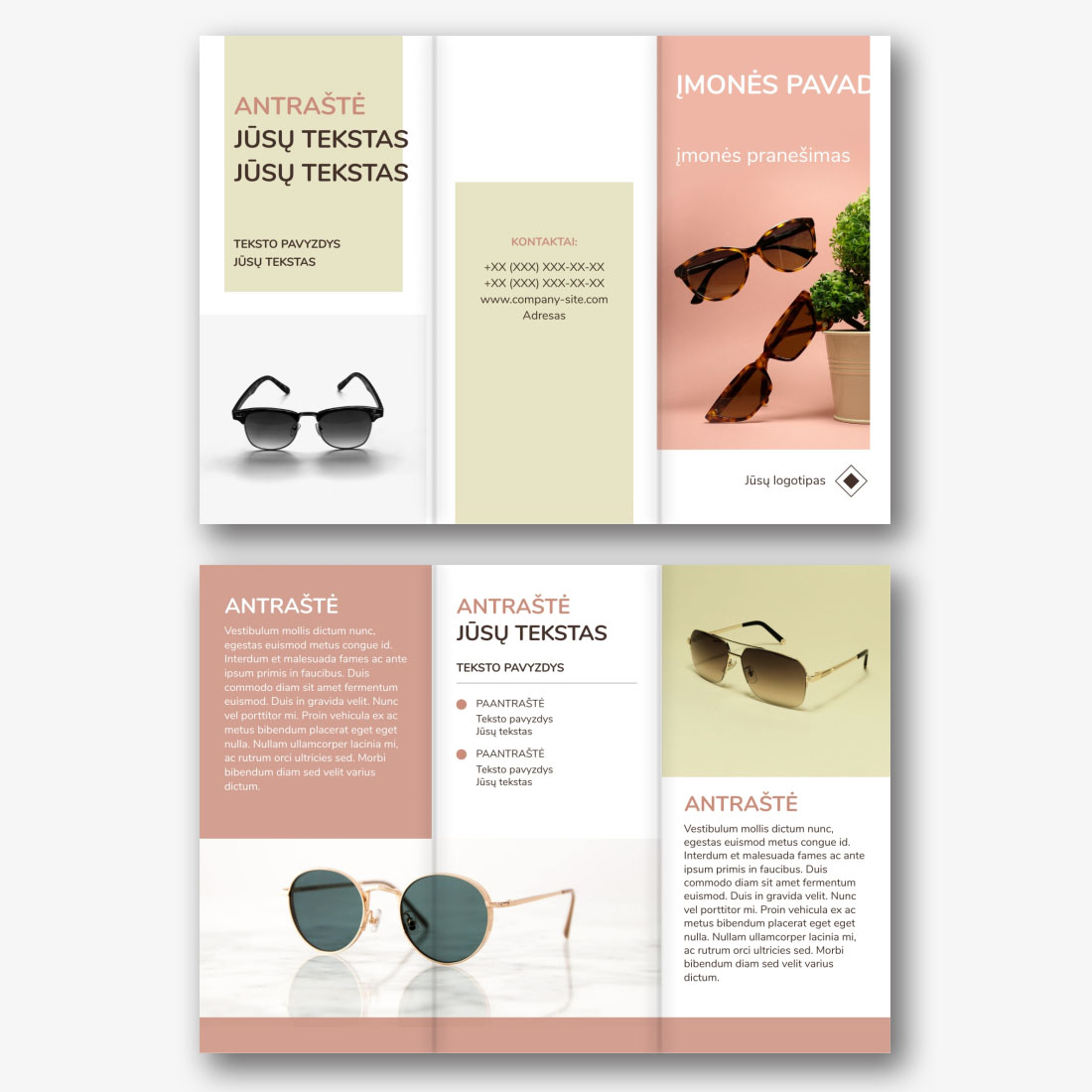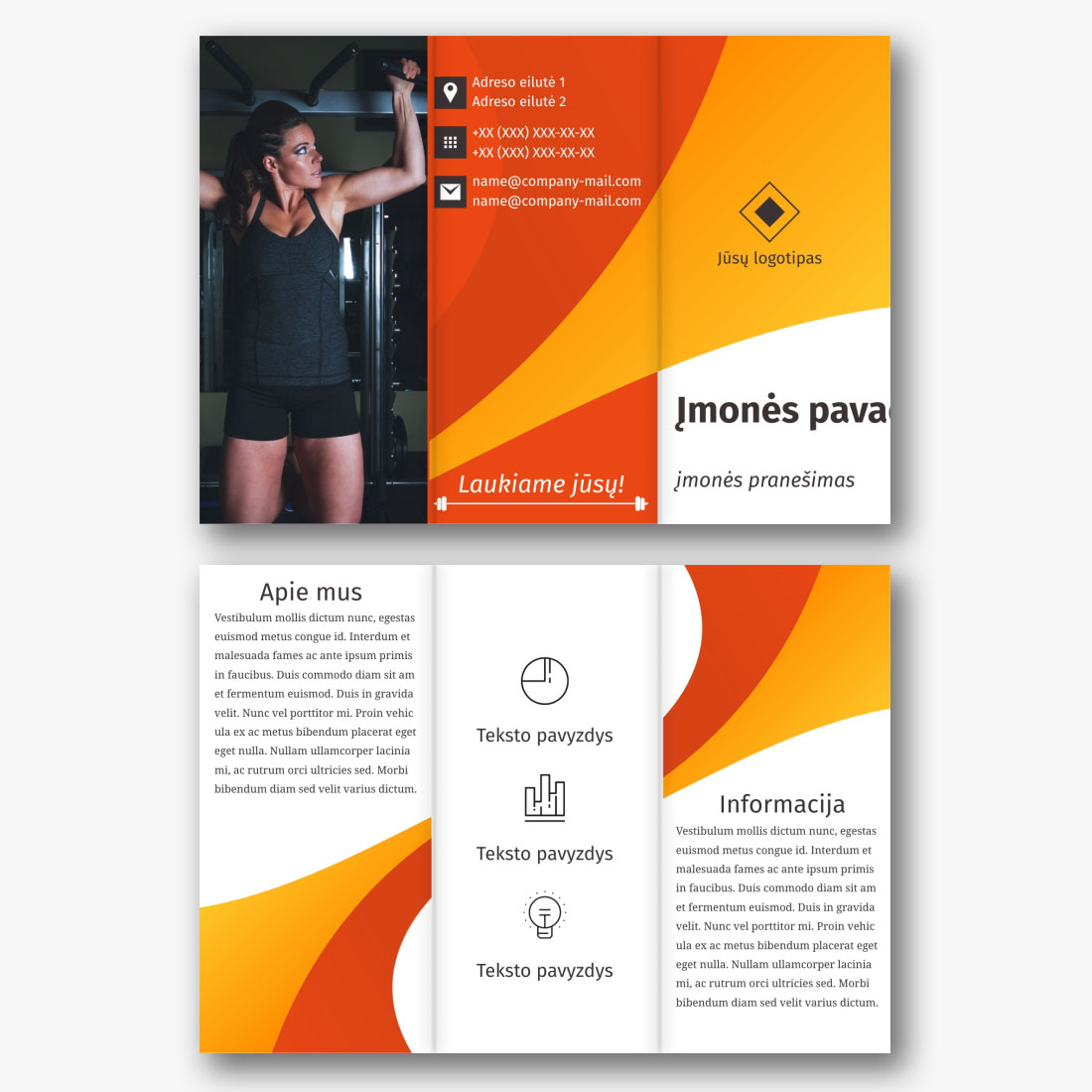 Nemokamas informacinės brošiūros šablonas internetinei sportinių batų parduotuvei, batų gamintojui. Sukurkite brošiūros išdėstymą su savo rankomis internetiniame dizaineryje.