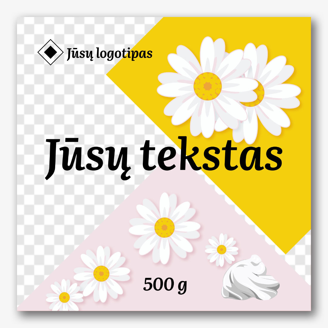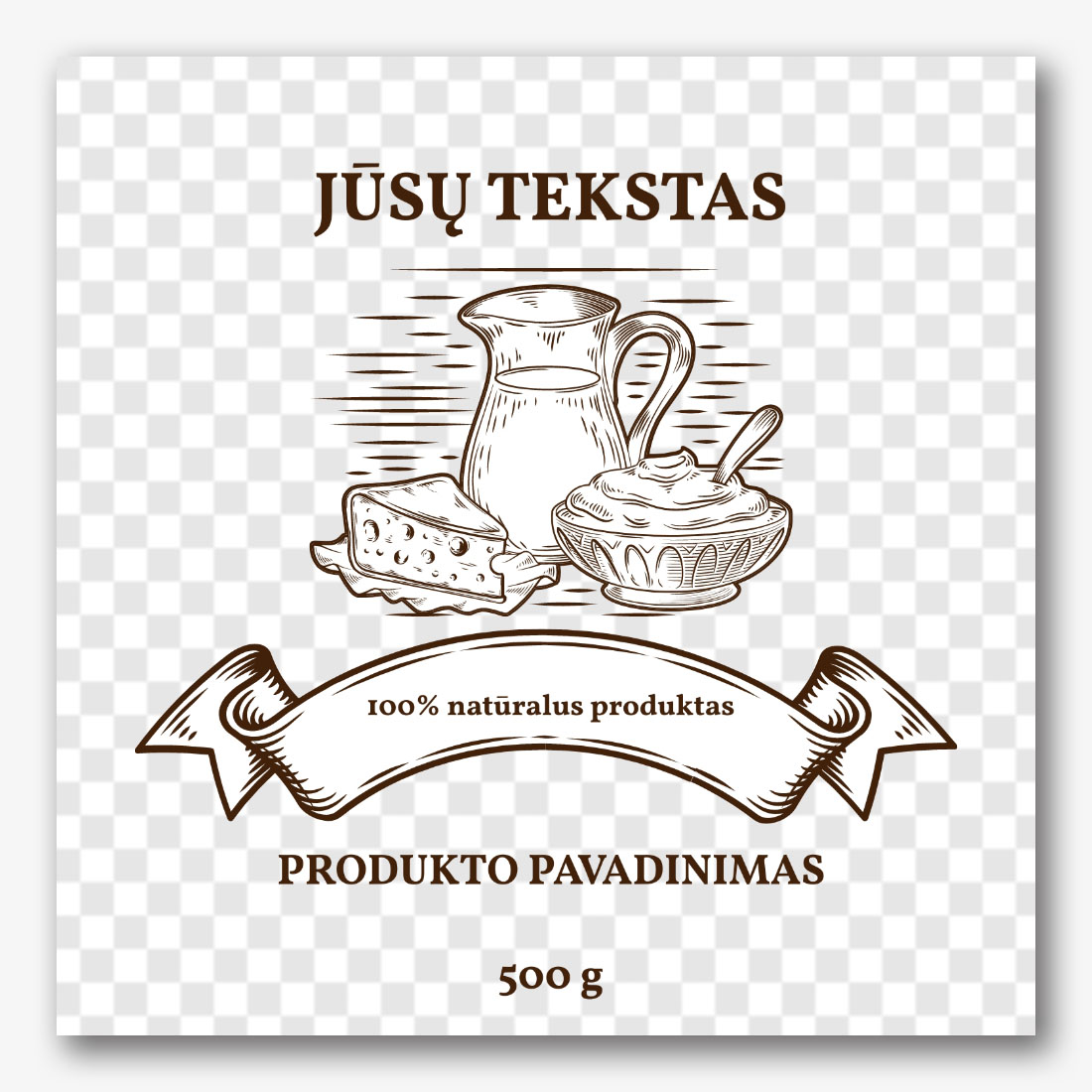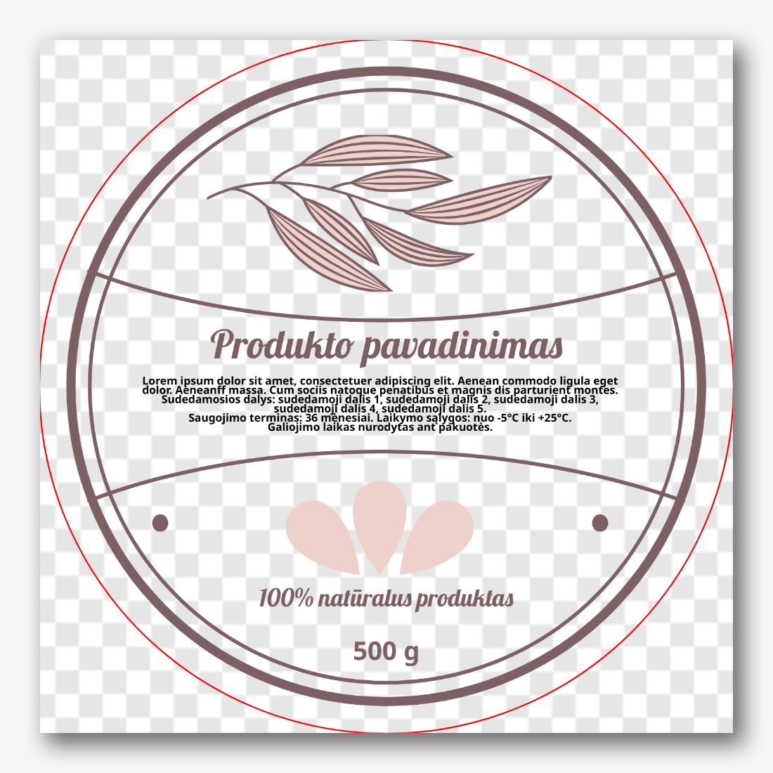 Nemokamas internetinis reklamos etiketės šablonas konservų gamintojui. Sukurkite išdėstymą su savo rankomis internetiniame etiketės dizaineryje.
