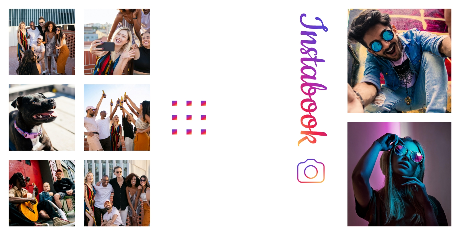 Nemokamai instakniga aikštė šablonas. Sukurkite išdėstymą su savo rankomis internetinėje nuotraukų knygų dizaineriu.