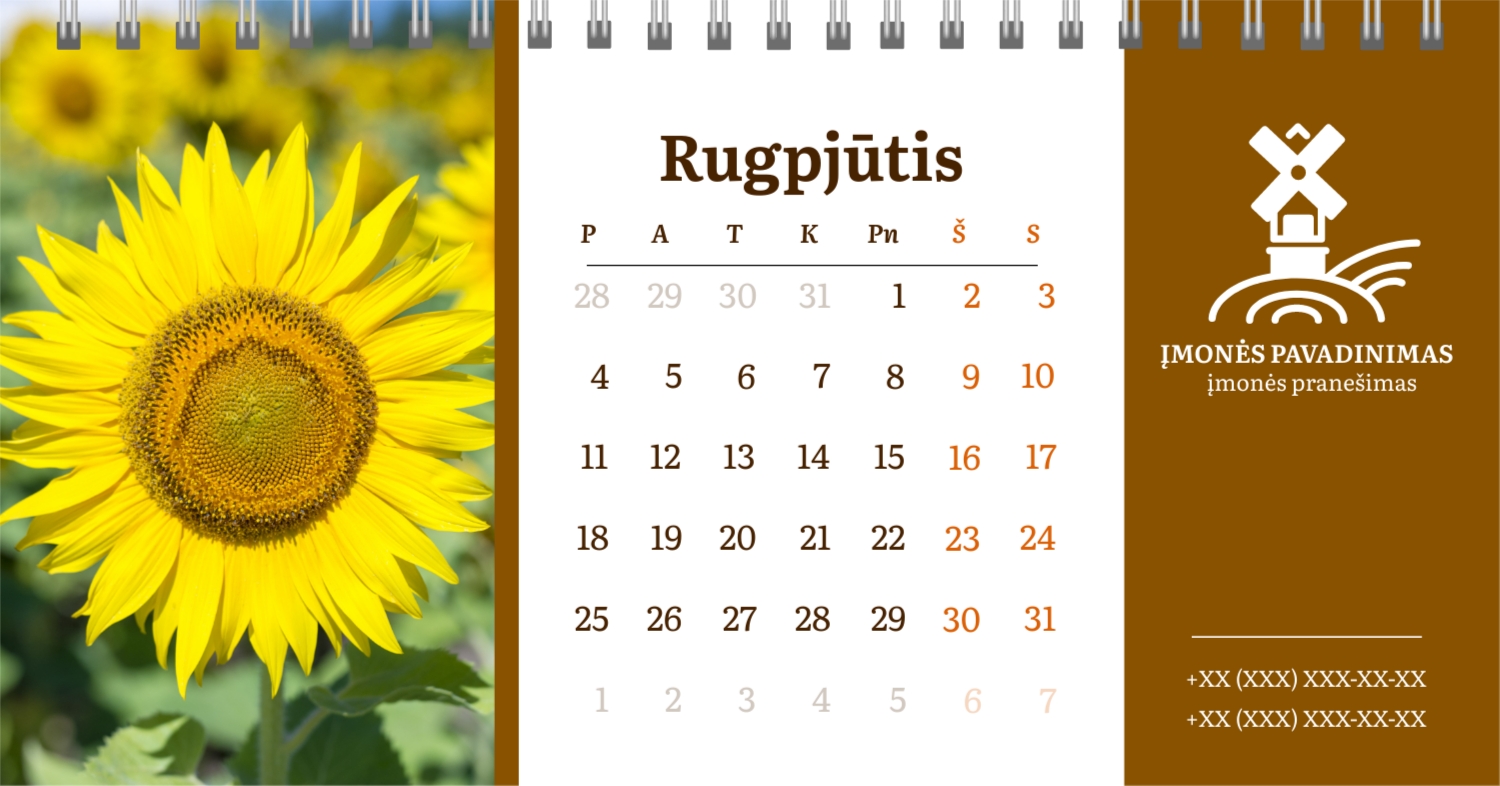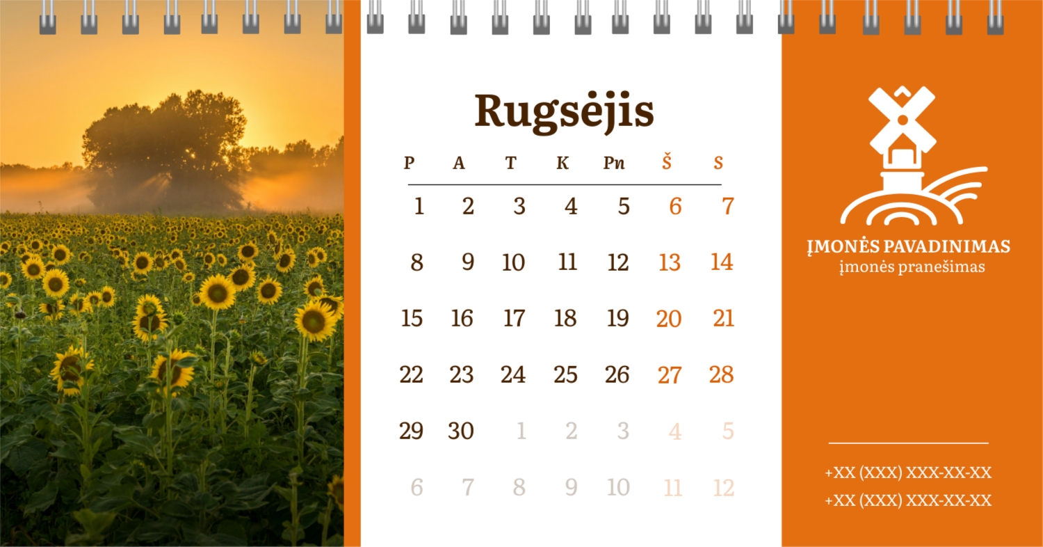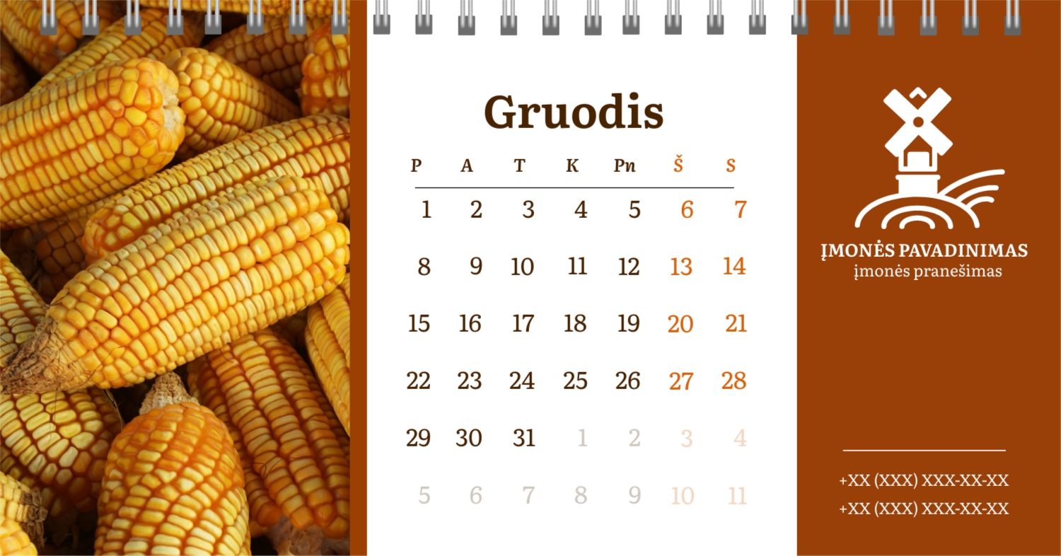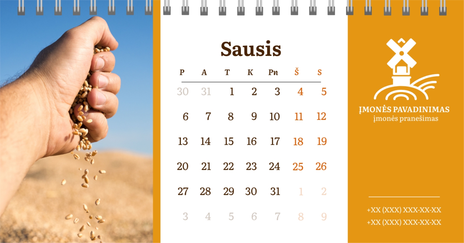 Nemokamas internetinis verslo kalendoriaus šablonas jūsų įmonei ir paslaugoms. Sukurkite išdėstymą su savo rankomis internetiniame kalendoriaus dizaineryje.