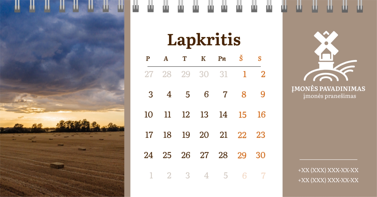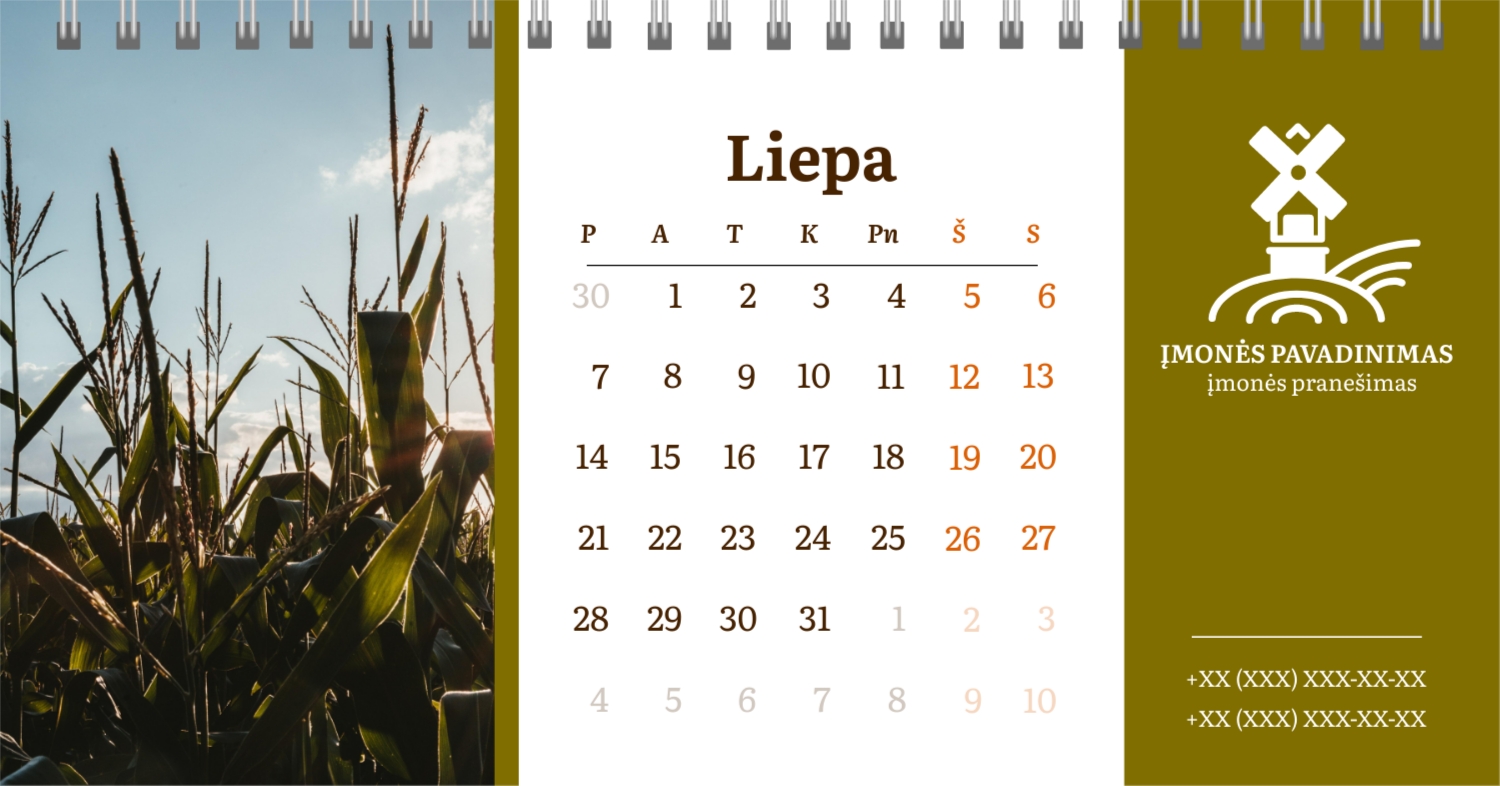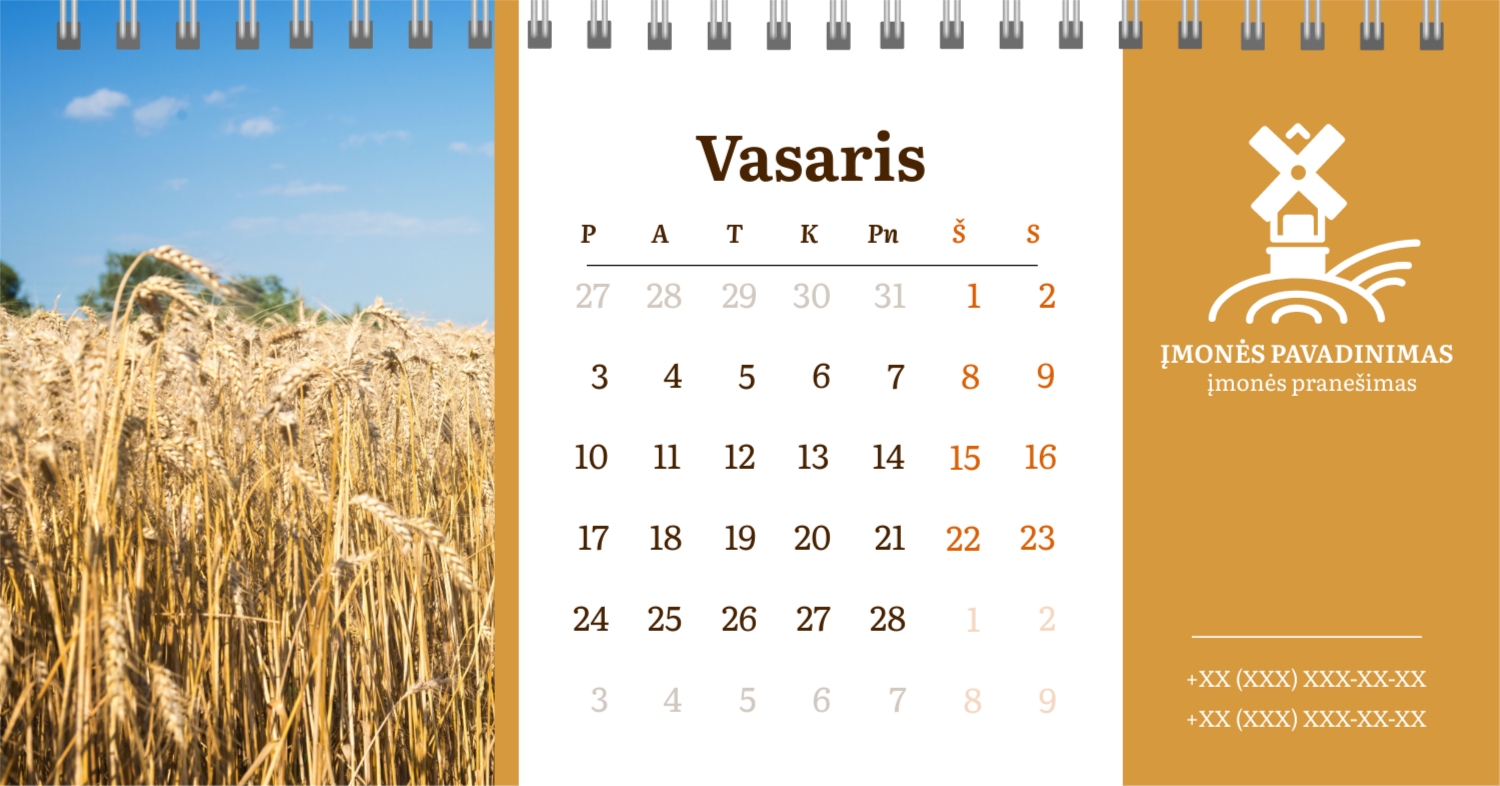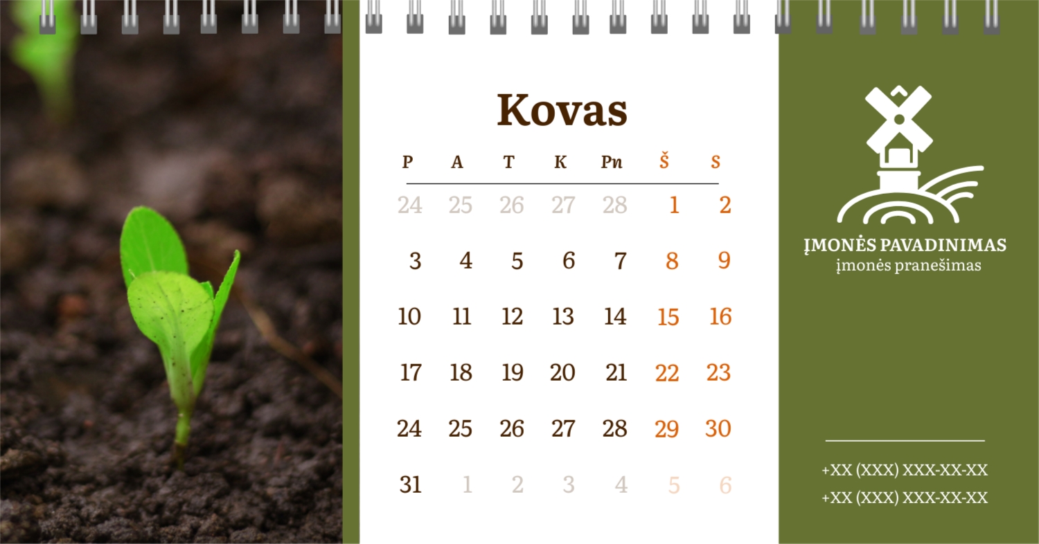 Nemokamas internetinis verslo kalendoriaus šablonas jūsų įmonei ir paslaugoms. Sukurkite išdėstymą su savo rankomis internetiniame kalendoriaus dizaineryje.