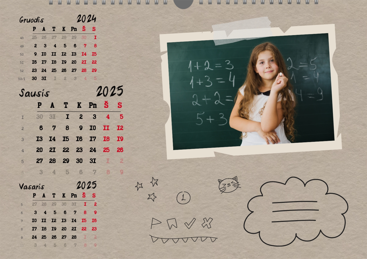 Nemokamas internetinis sieninės reklamos kalendoriaus šablonas vaikų baleto mokyklai. Sukurkite išdėstymą su savo rankomis internetiniame kalendoriaus dizaineryje.