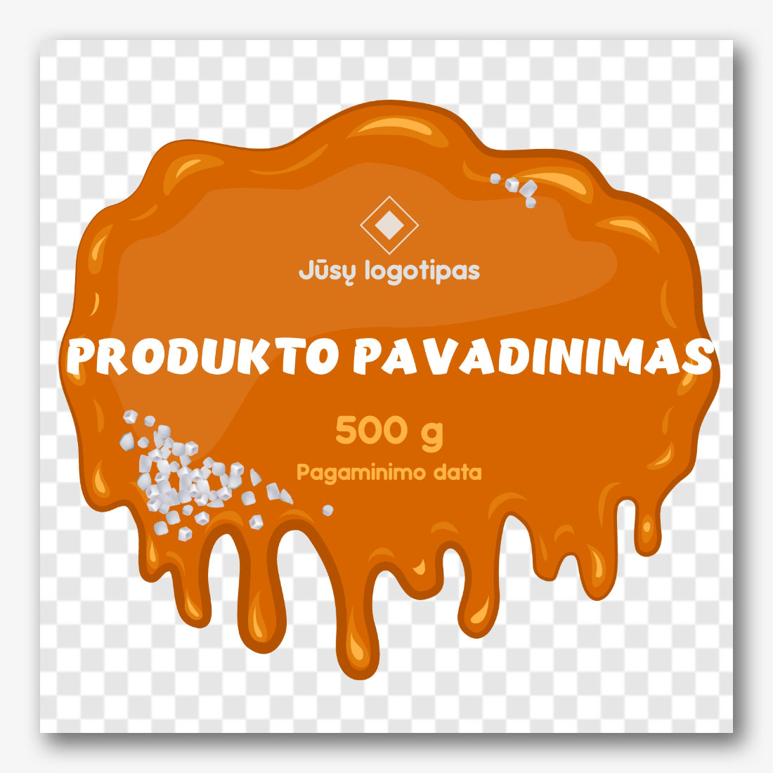 Nemokamas internetinis reklamos etiketės šablonas žemės riešutų pastos gamintojui. Sukurkite išdėstymą su savo rankomis internetiniame etiketės dizaineryje.