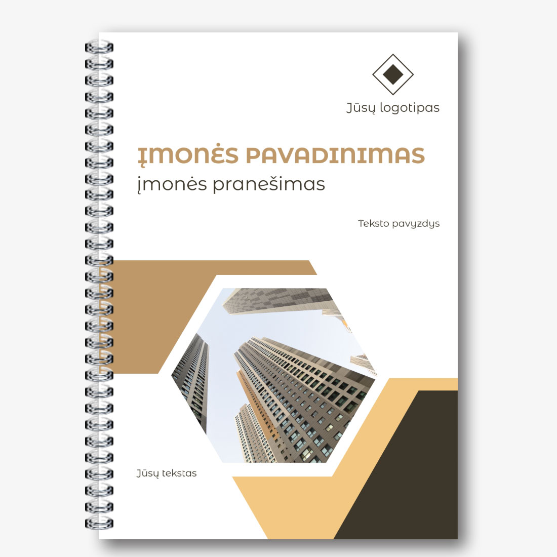 Nemokamas internetinis Užrašų šablonas, skirtas reklamuoti nekilnojamojo turto agentūrą. Sukurkite išdėstymą su savo rankomis notepad dizaineriu.