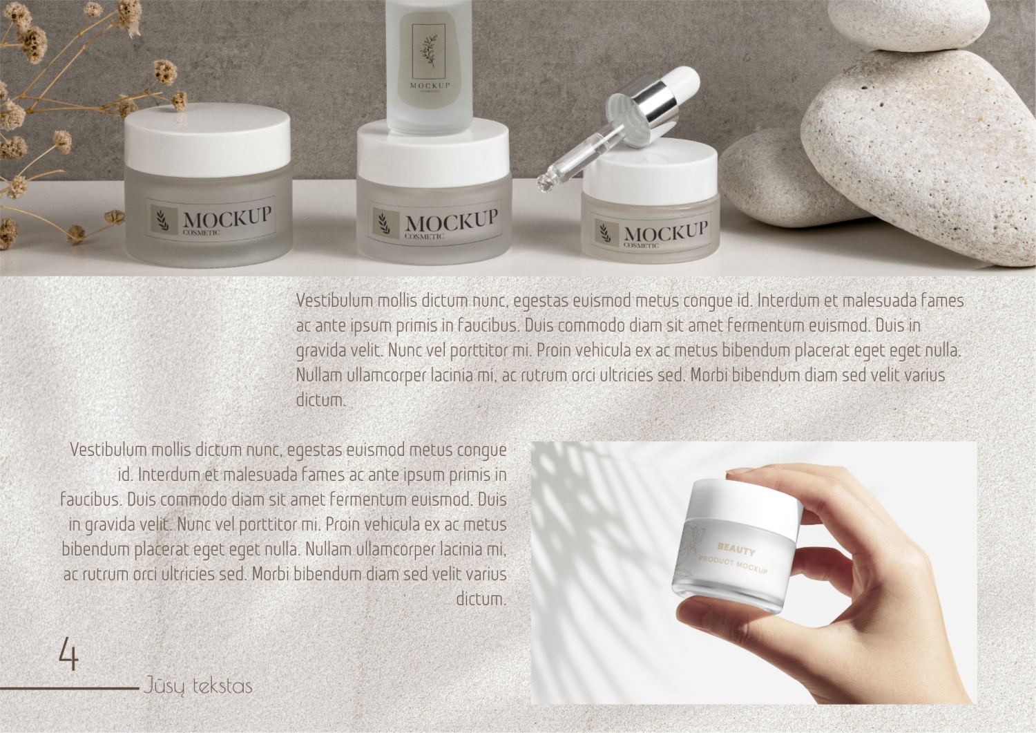 Nemokamas kosmetikos reklamos katalogo šablonas. Sukurkite išdėstymą su savo rankomis internetiniame kataloge statybininkas.
