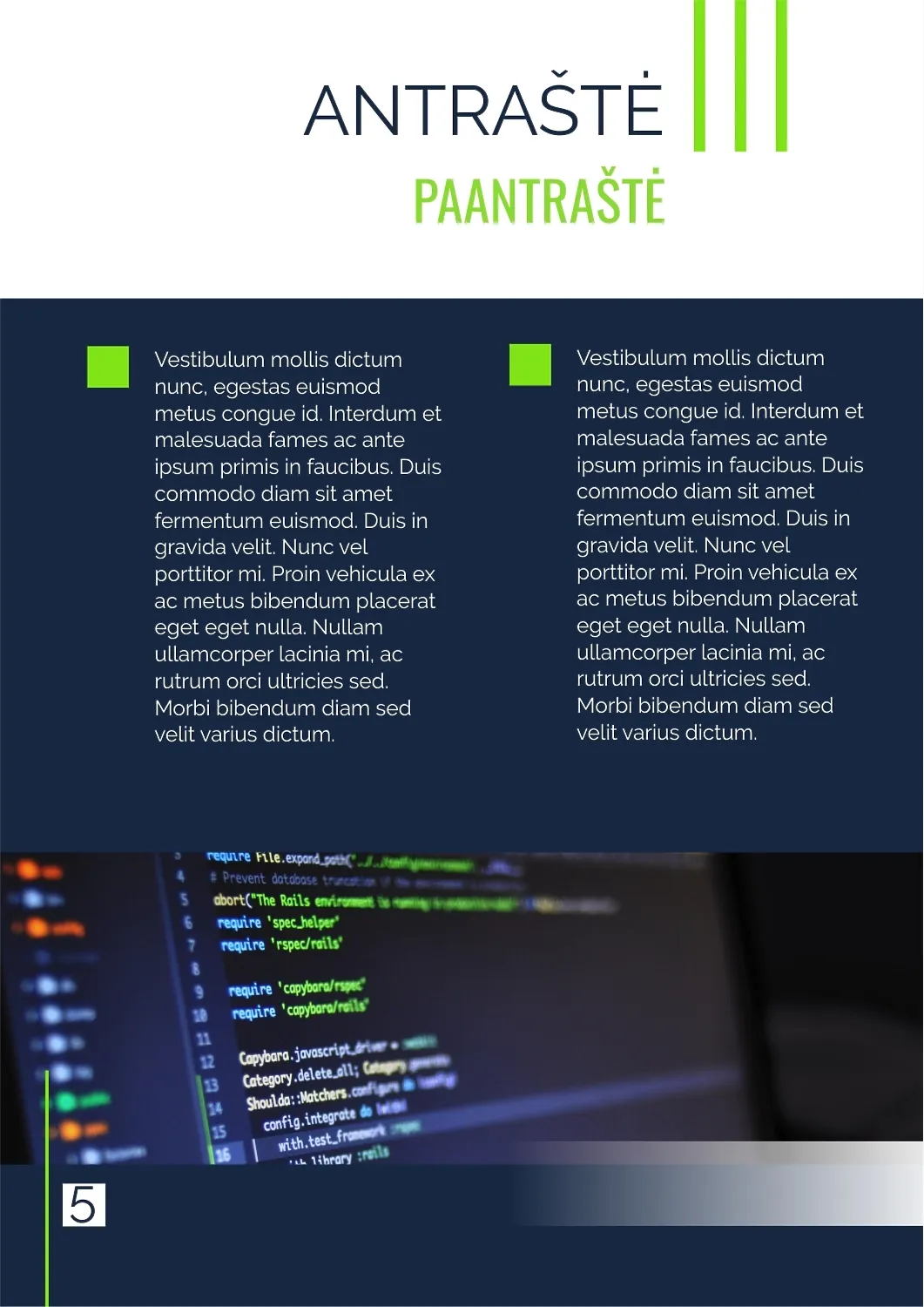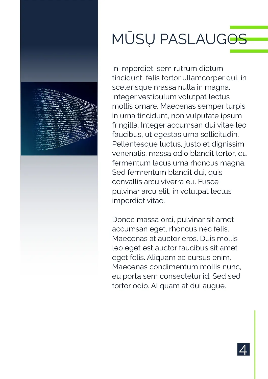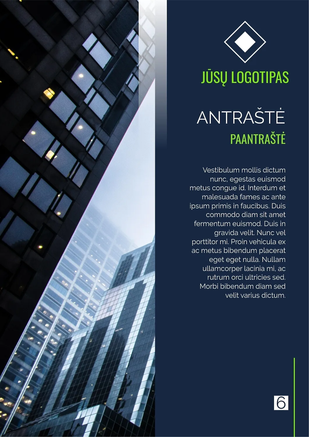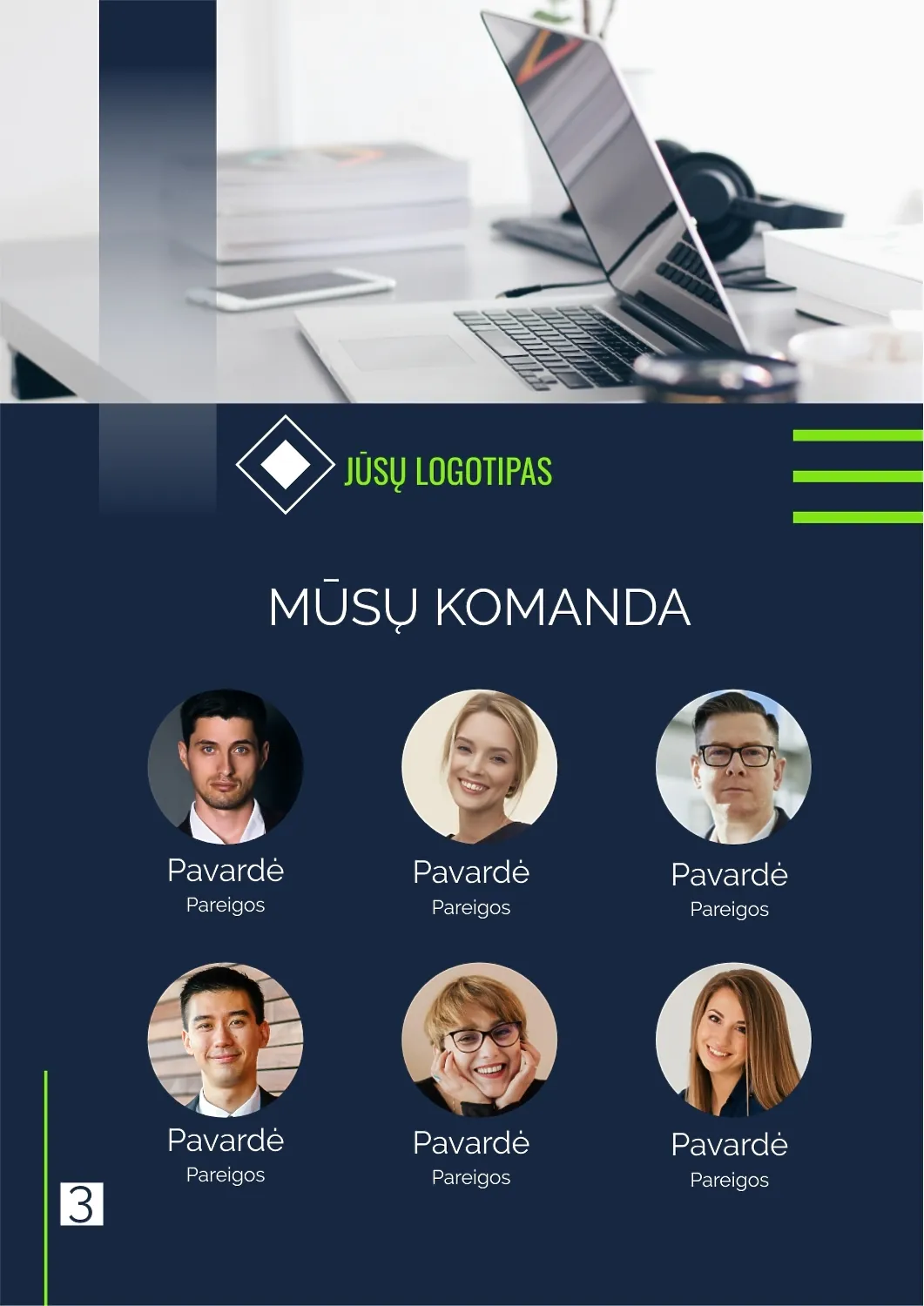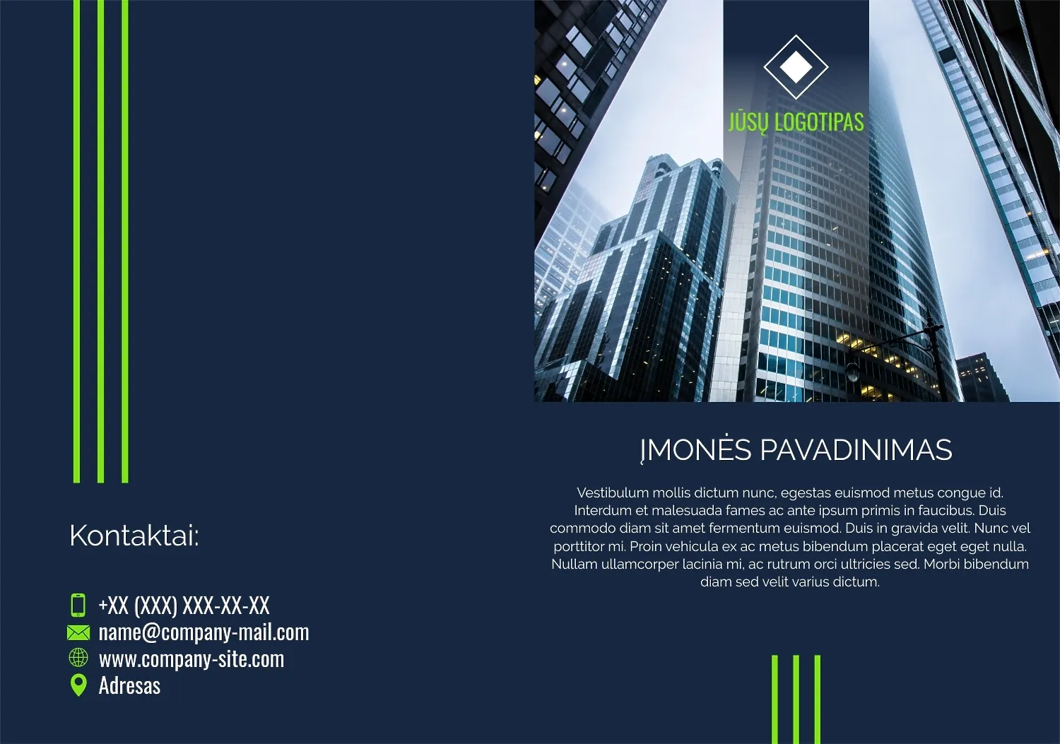 Nemokamas verslo įmonės brošiūros šablonas. Sukurkite išdėstymą su savo rankomis internetiniame brošiūros dizaineryje.