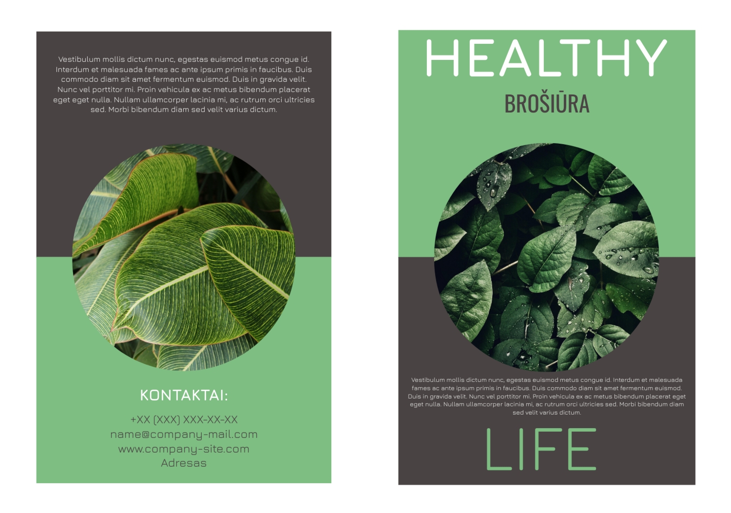 Nemokamas informacinės brošiūros apie sveiką gyvenimo būdą šablonas. Sukurkite išdėstymą su savo rankomis internetiniame brošiūros dizaineryje.