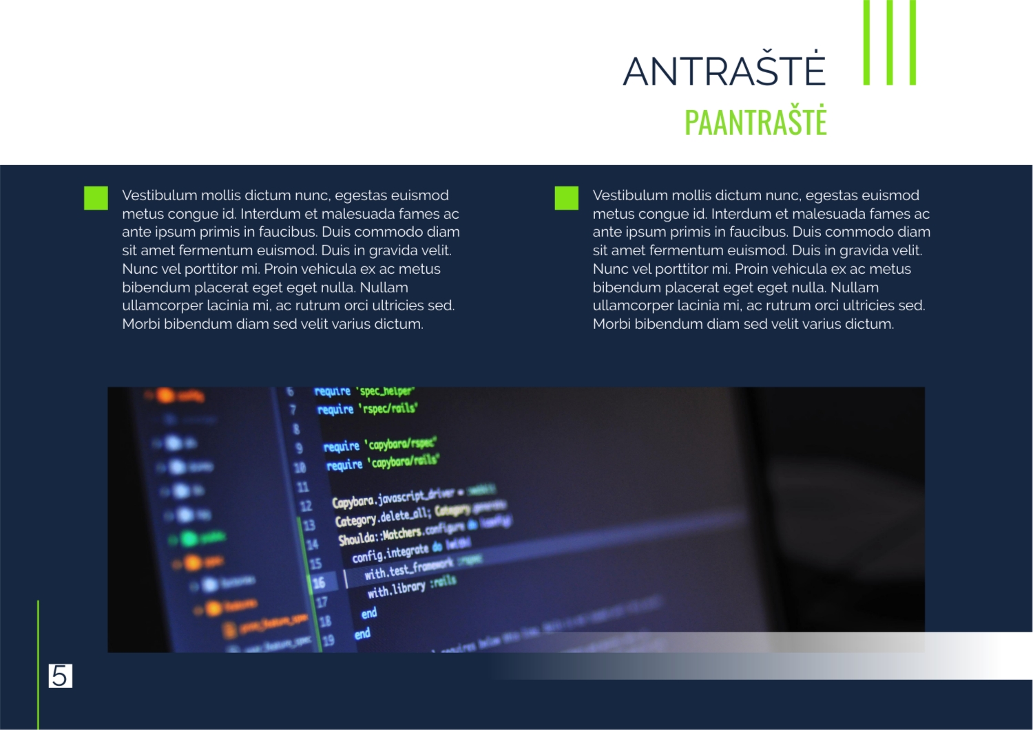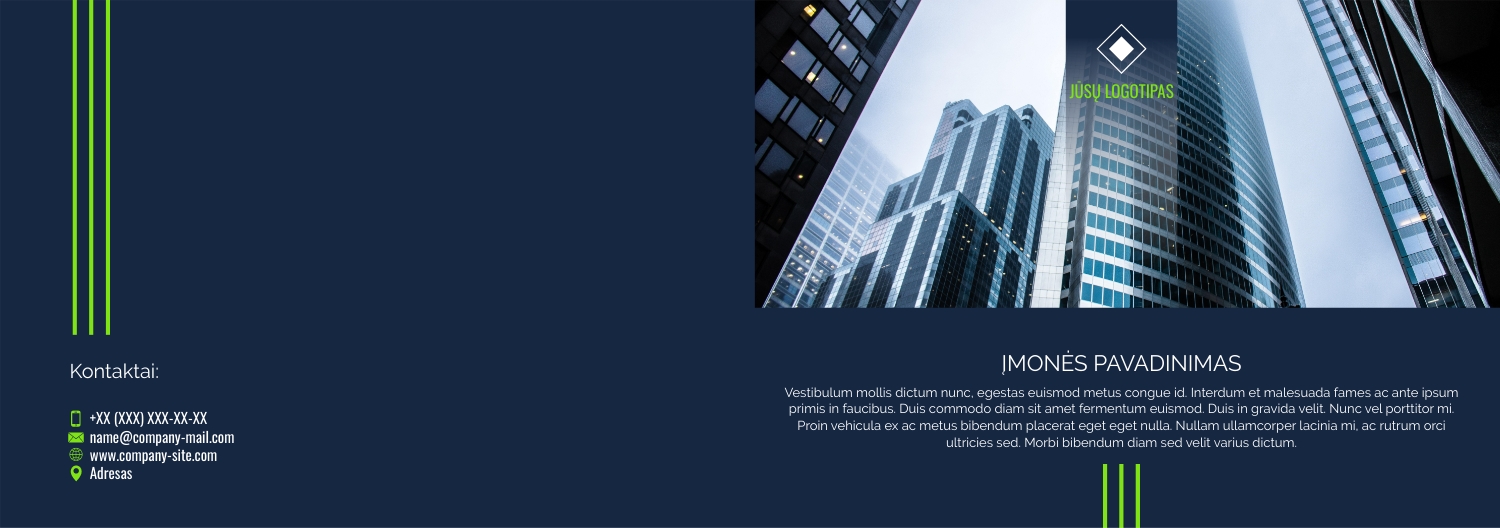 Nemokamas verslo įmonės brošiūros šablonas. Sukurkite išdėstymą su savo rankomis internetiniame brošiūros dizaineryje.
