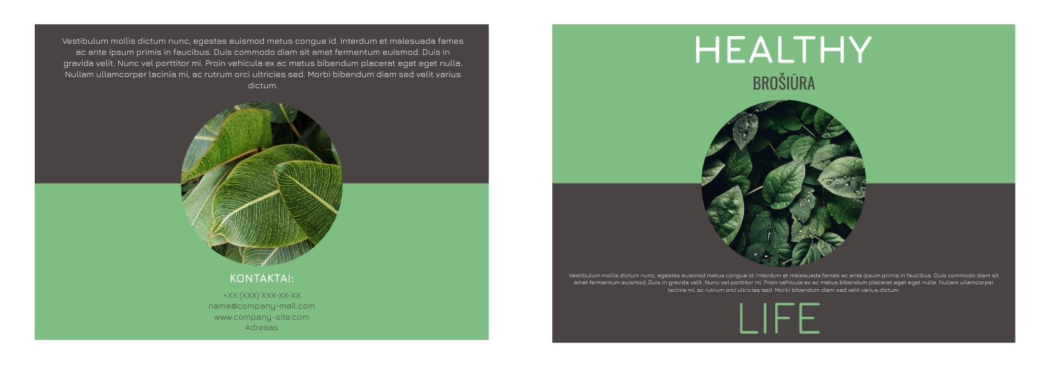 Nemokamas informacinės brošiūros apie sveiką gyvenimo būdą šablonas. Sukurkite išdėstymą su savo rankomis internetiniame brošiūros dizaineryje.