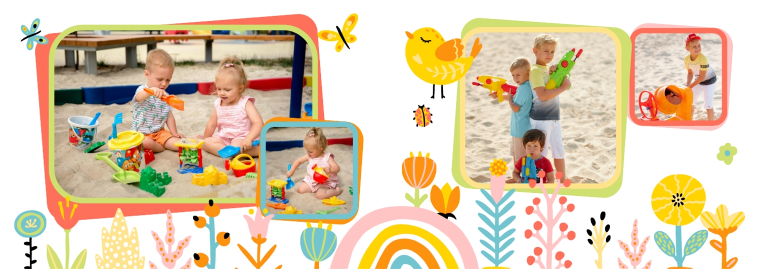 Nemokamas nuotraukų knygos šablonas vasaros atostogoms su vaikais. Sukurkite išdėstymą su savo rankomis internetinėje nuotraukų knygų dizaineriu.